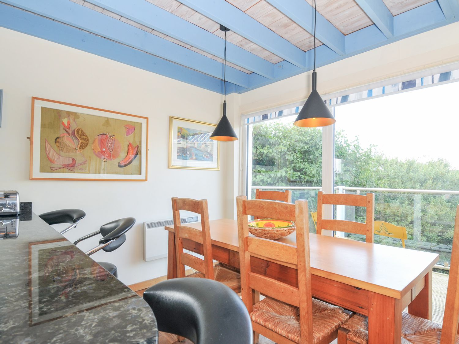 "Reverse-level. Three bedrooms: 1 x ground-floor double, 1 x ground-floor twin, 1 x ground-floor single. 2 x ground-floor shower rooms with walk-in showers, basins and WCs. First-floor cloakroom with WC. First-floor open-plan kitchen, dining area and sitting area with balcony"