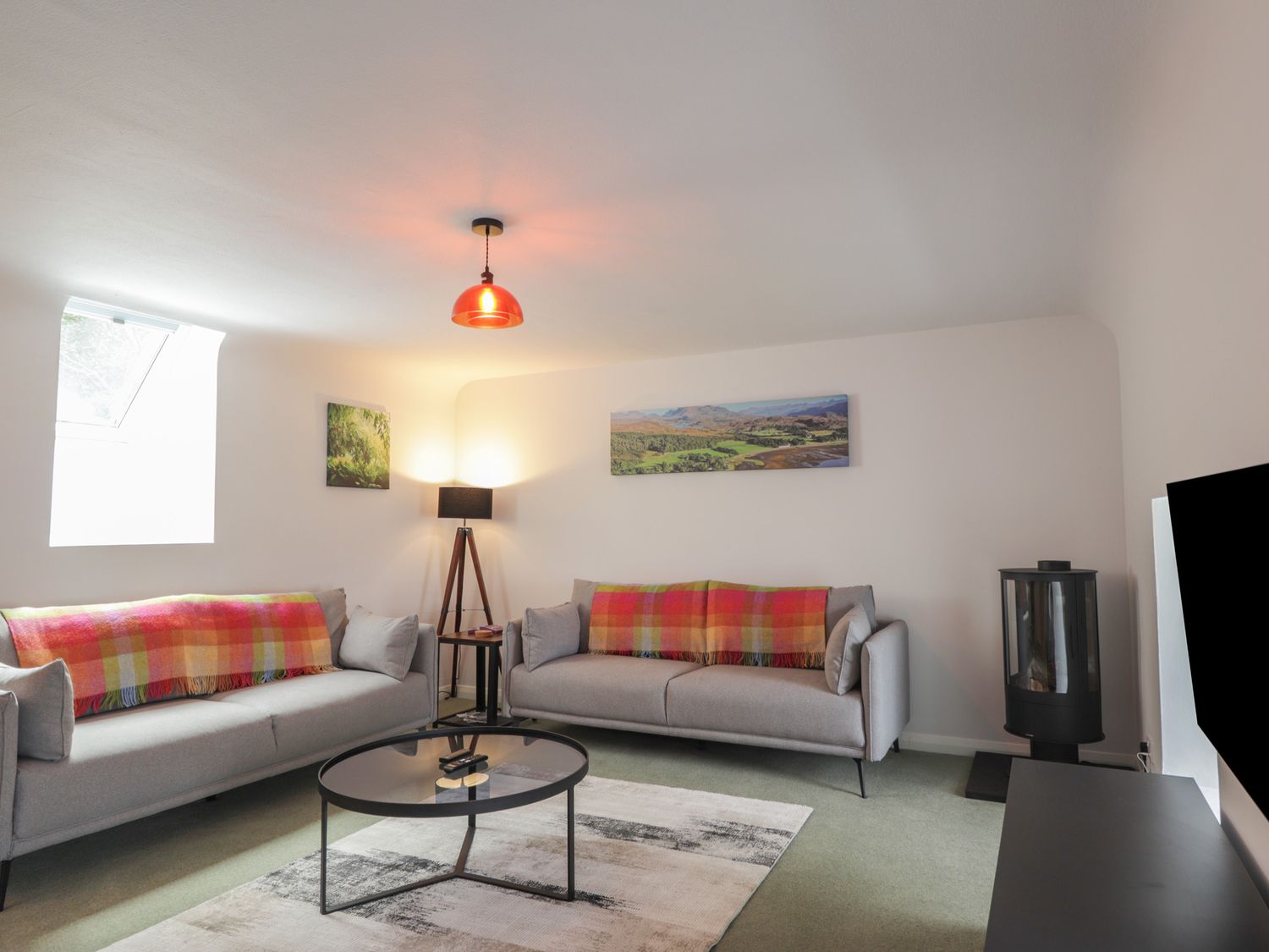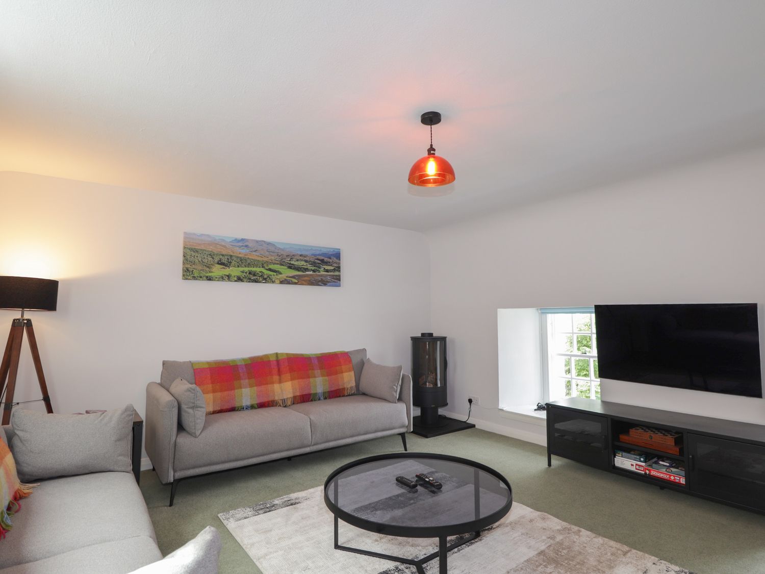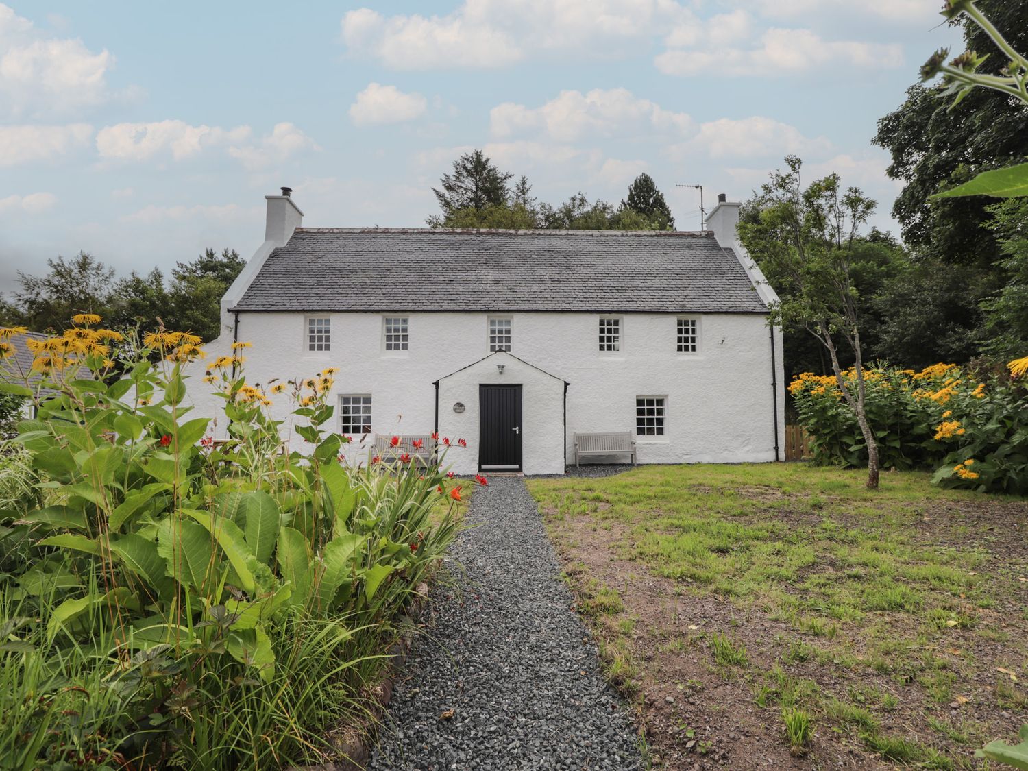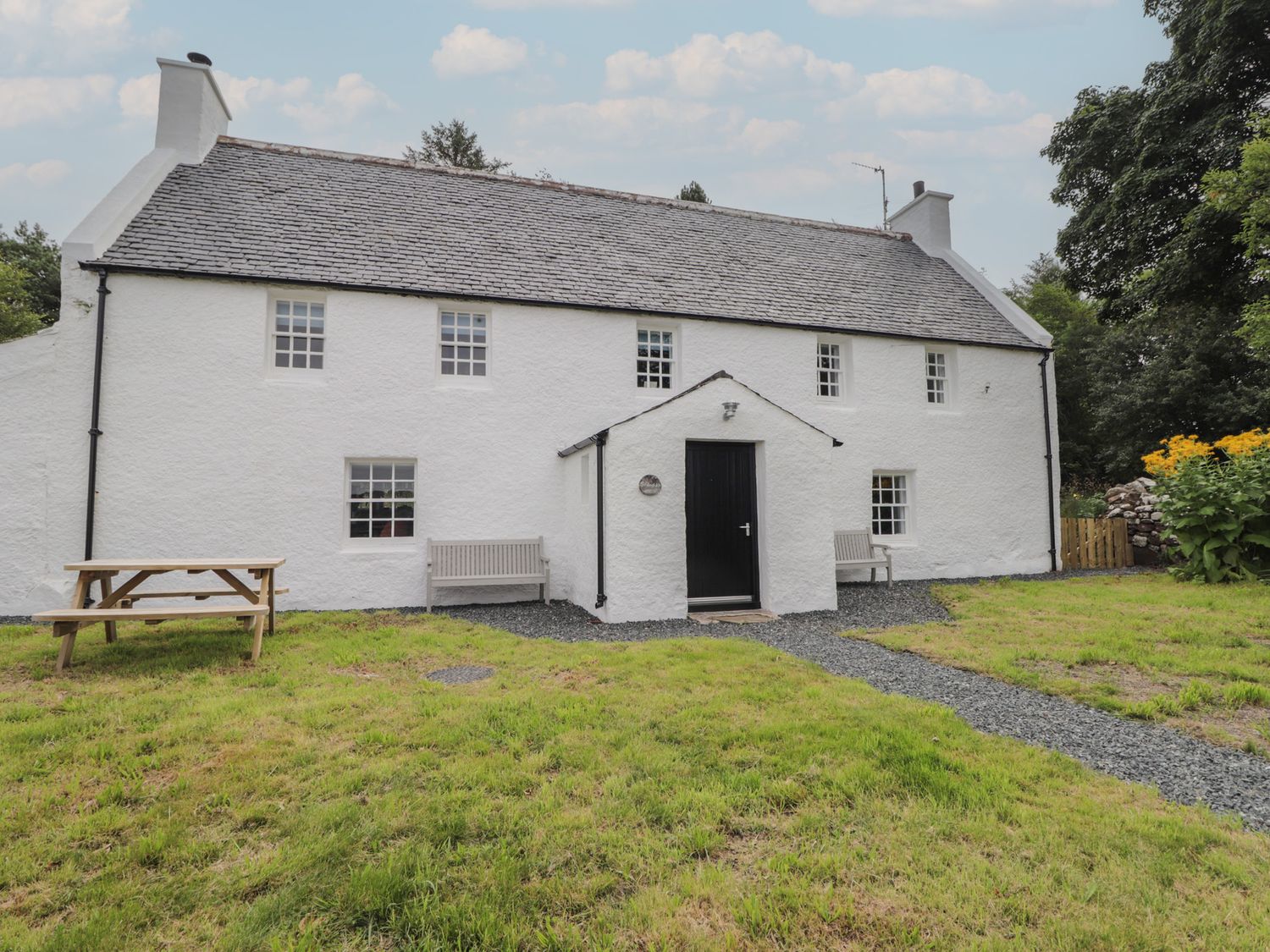 "Srondubh consists of a kitchen/diner with woodburning stove, electric oven, ceramic hob, fridge/freezer, microwave, dishwasher, kettle, toaster, and seating for four guests, a utility with washing machine, and a first-floor sitting room with electric fire and Smart TV, and WiFi. The bedrooms consists of a a super-king (zip/link), and a ground-floor twin serviced by a ground-floor shower room with walk-in shower, basin, heated towel rail and WC and a bathroom with freestanding bath, walk-in shower, basin, and WC. Outside there is enclosed front garden with lawn, gravel, furniture and off-road parking for 2 cars. Within 0.7 miles, you will find a shop, within 6.6 , a pub, and within 0.1 miles a loch. Please note that this is a non-smoking property. Two well-behaved pets welcome. Fuel, power, bed linen and towels are all included in the price. Enjoy the tranquil loch views at Srondubh."