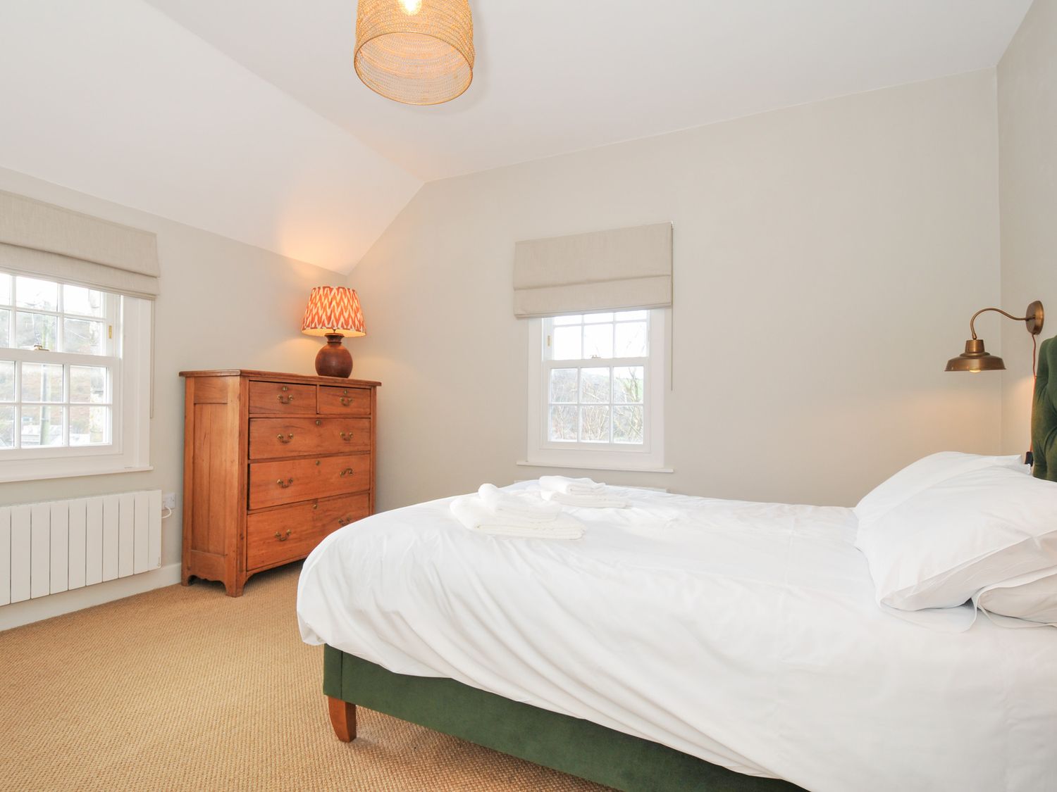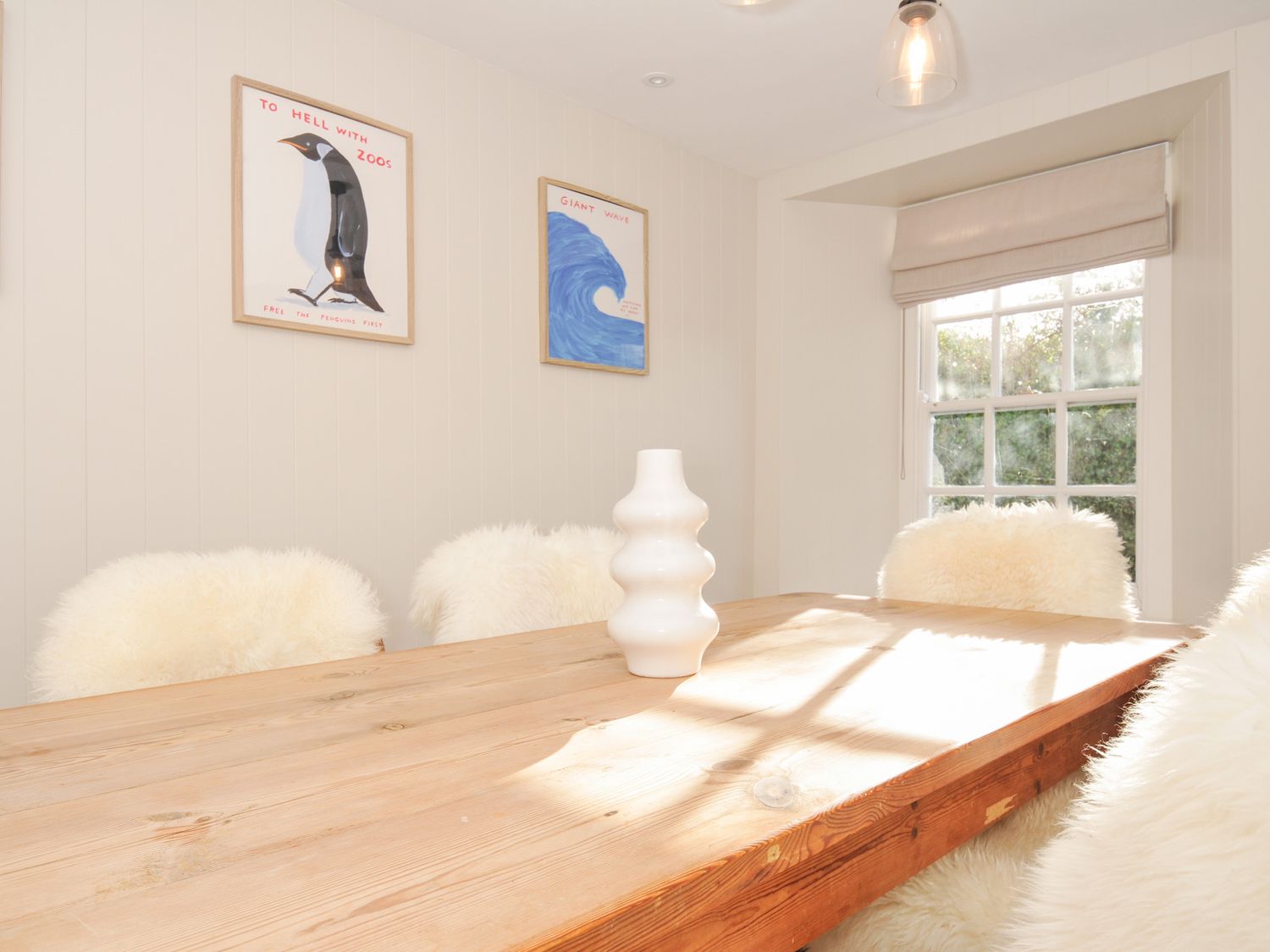 "This stylish cottage has three bedrooms including a king-size, a double and a bunk, along with a shower room and a cloakroom. The living areas consist of a kitchen, a dining room, a sitting room with a woodburning stove and a snug with a woodburning stove. Appliances include an electric oven, induction hob, microwave, fridge/freezer and washing machine, and for entertainment there is a TV with Freeview, a DVD player, and WiFi. Outside, there is an enclosed patio with picnic bench furniture, and nearby parking for one car. Sorry, this is a pet-free, smoke-free property. Fuel, power, a starter pack for woodburning stove, bed linen and towels are all included in the rent. You can find a shop, pub and beach within 0.1 miles. Mermaid Cottage is a lovely base for a Cornish holiday. Note: Check-in from 4pm and check-out by 9:30am."