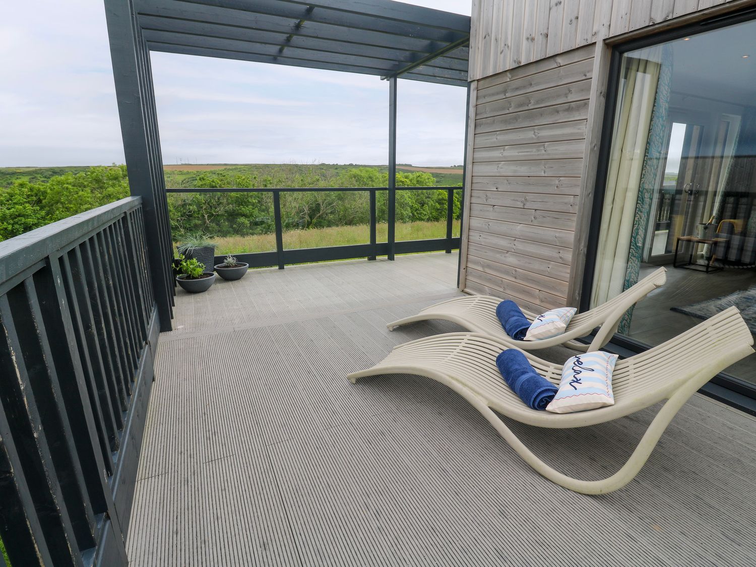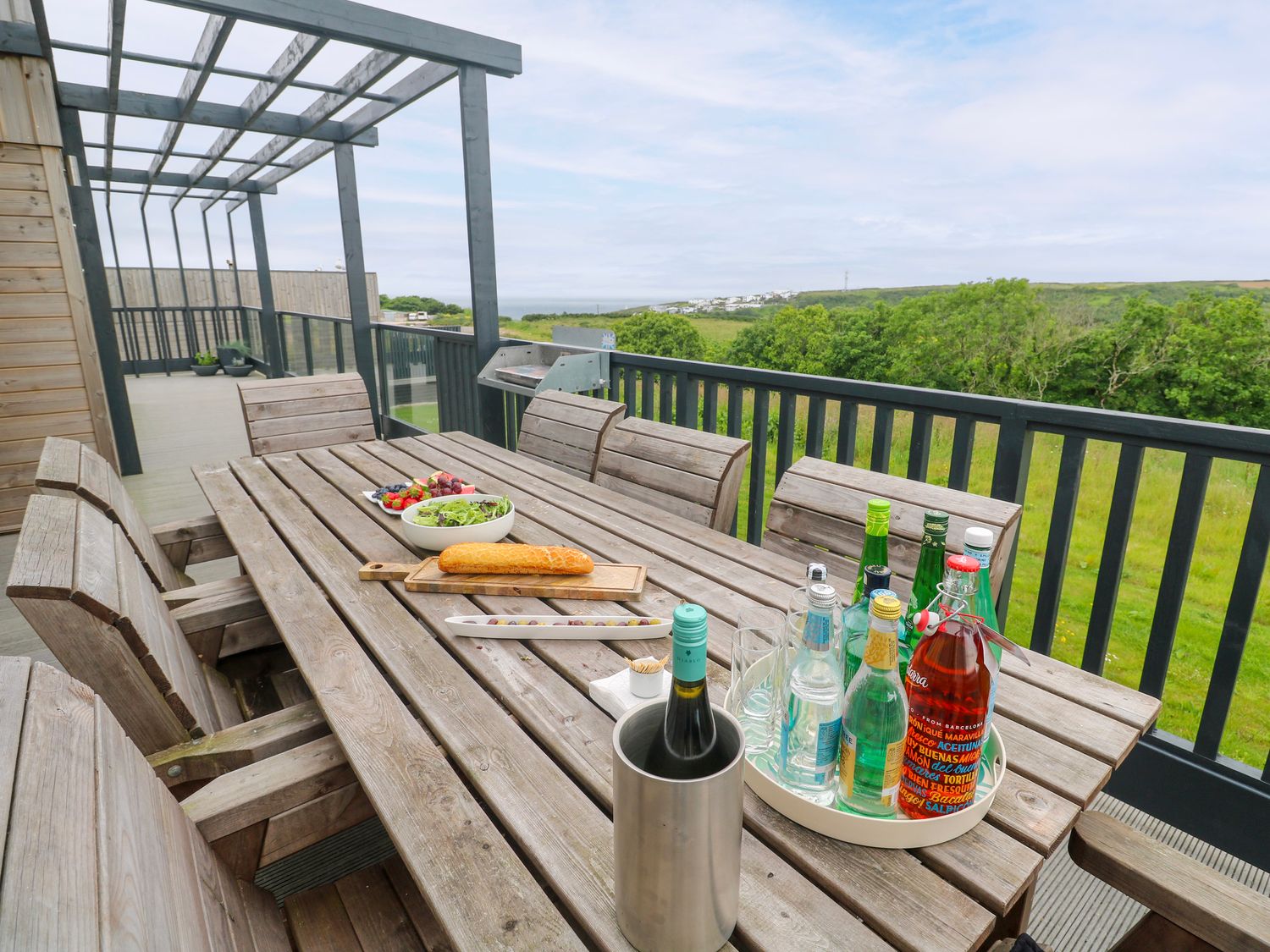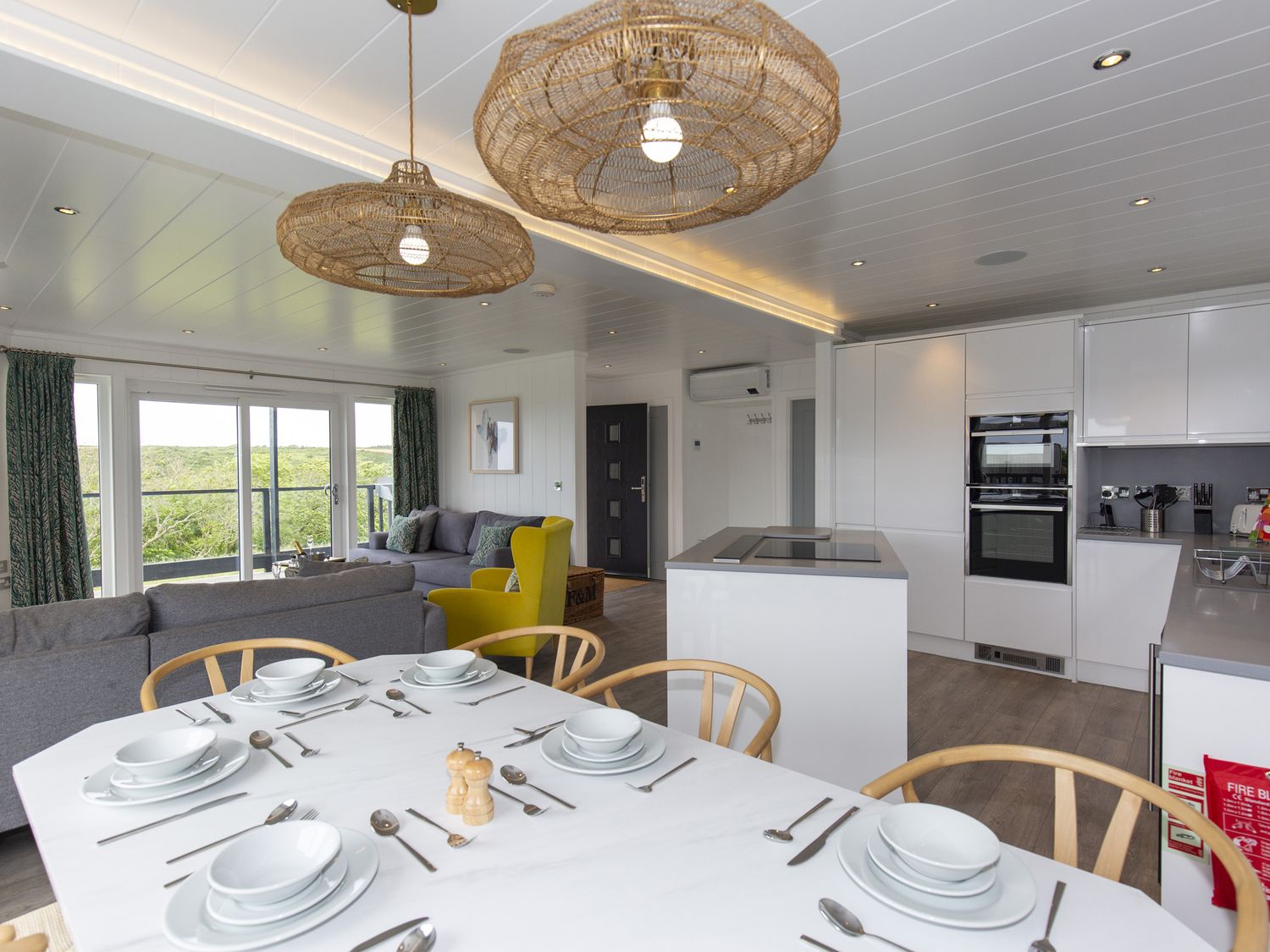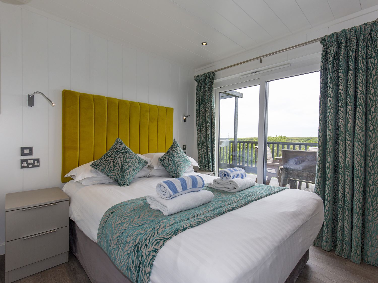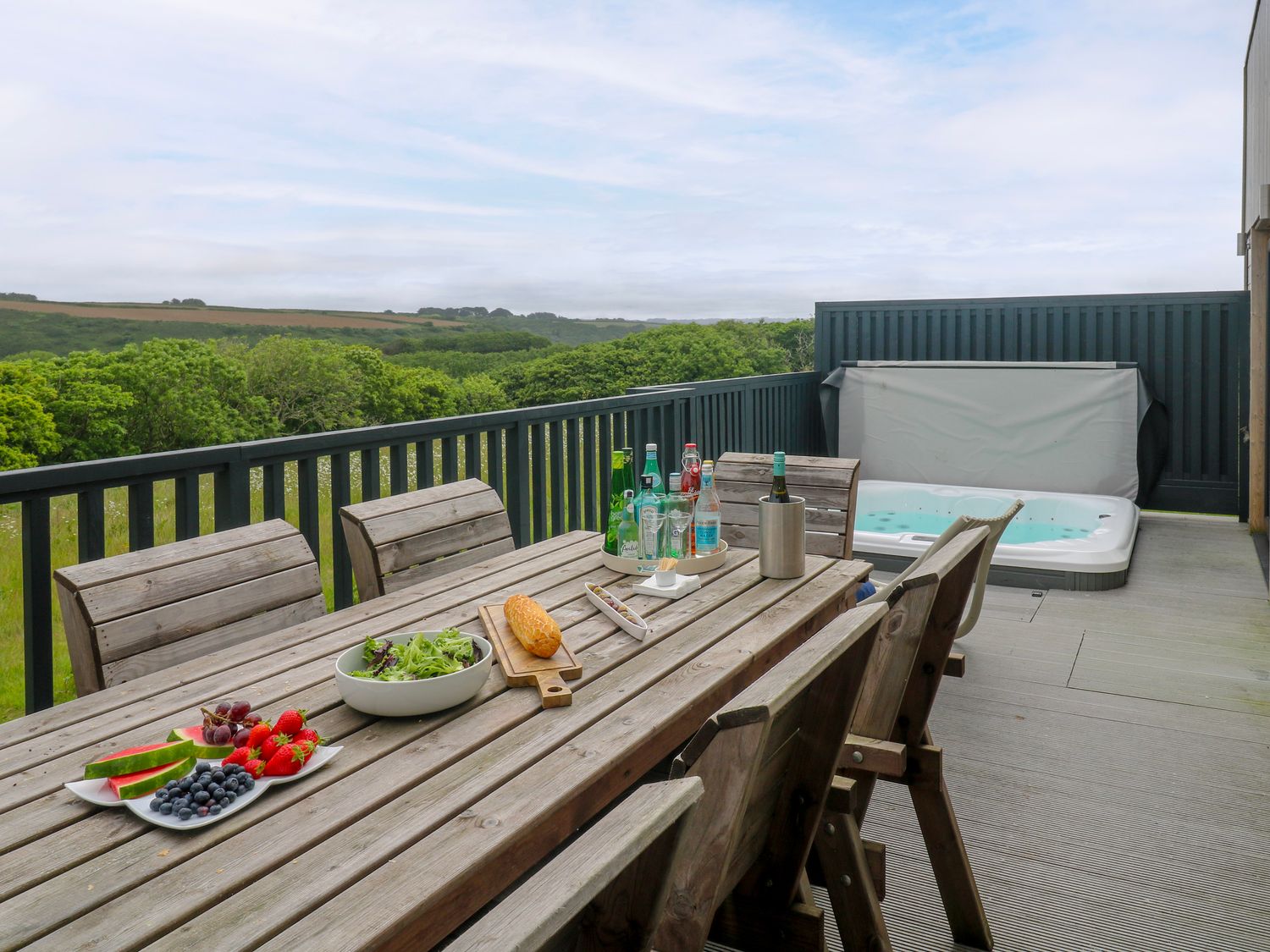 "Dahlia, consists of an open-plan living area with a double electric oven, induction hob, microwave, fridge/freezer, washer/dryer, dishwasher, woodburning stove.The bedrooms consist of a king-size with en-suite, double with en-suite, and two twins. There is a bathroom with a built-in TV. WiFi, fuel, power, bed linen, and towels are included in the rent. Outside, there is an enclosed garden decking with furniture and hot tub, and off-road parking for two cars. Sorry, no pets and no smoking. Whatever the weather, a wonderful stay awaits at Dahlia. Note: Guests can enjoy onsite facilities: swimming pool, golf, restaurant, and more. Note: The property is not suitable for anyone who may be in a wheelchair. There are four steps to access the lodge plus the decked area. Note: The hot tub is fully drained, cleaned, and refilled on every changeover prior to your arrival. As a result, it may take some time to reach its optimal temperature and not be ready for immediate use on your arrival day."