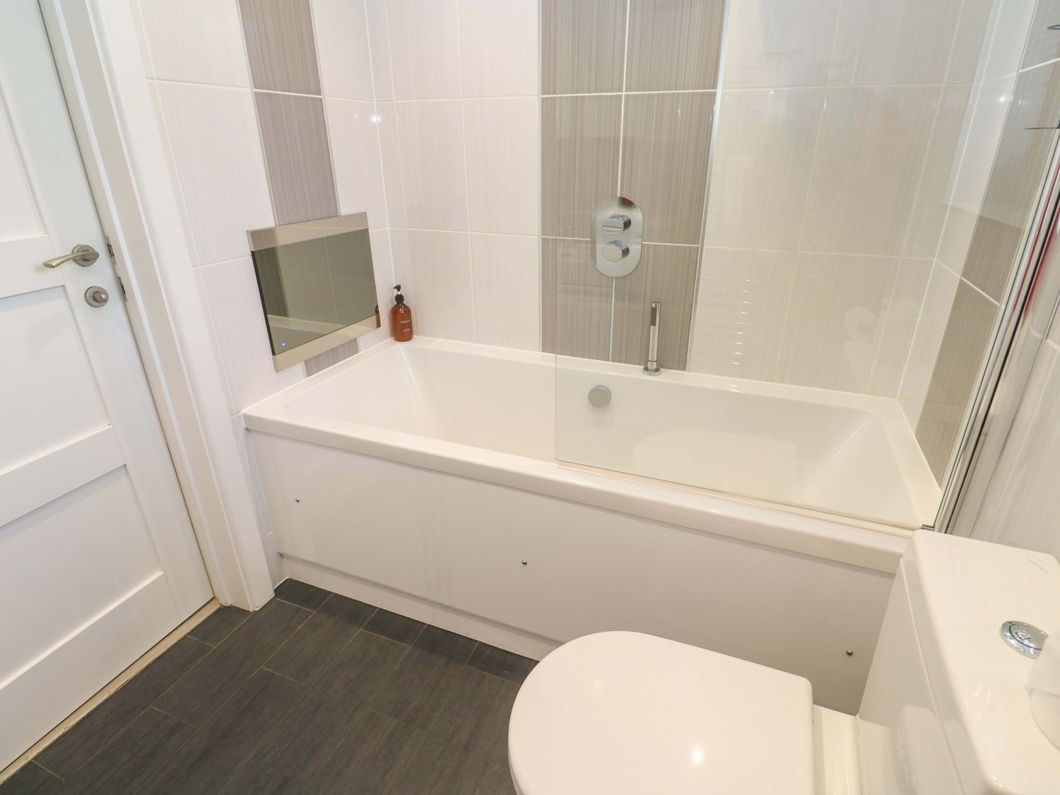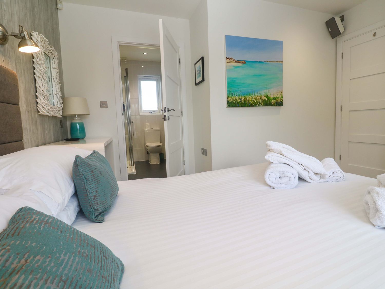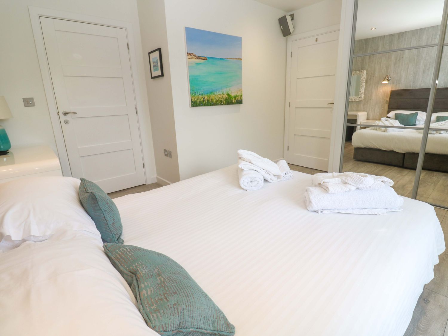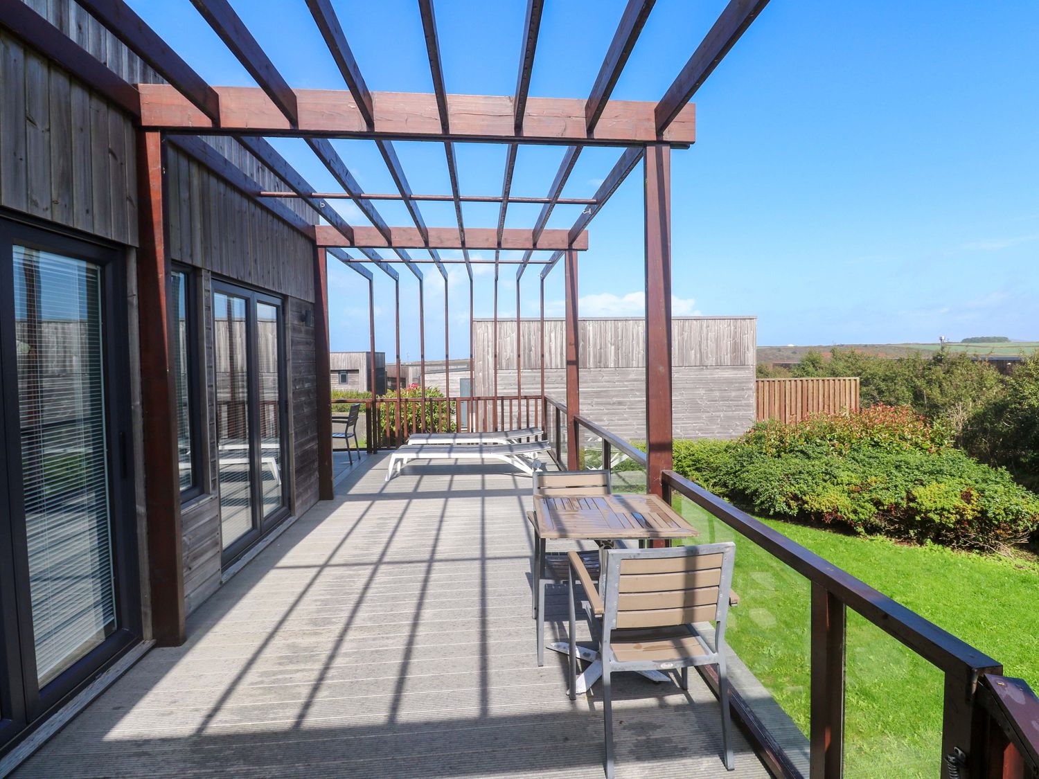 "Lodge 83, Gwel an Mor, a single-storey charming holiday lodge consists of a kitchen with microwave, electric oven and hob, dishwasher, fridge/freezer, and washing machine, a dining room with dining seating, and a sitting room with Smart TV and woodburning stove. The bedrooms consist of a super-king-size, super-king-size with en-suite, and twin. There is a bathroom with bath, shower over, basin, heated towel rail, and WC and integrated TV. WiFi, fuel, power, bed linen, and towels included in the rent. Outside, there is a lawn area with sun loungers. Enclosed decking with furniture and hot tub and designated parking for two cars. Sorry, no pets and no smoking. Whatever the weather, a wonderful stay awaits at Lodge 83, Gwel an Mor. Note: On-site facilities available. Note: This property has a Good Housekeeping Bond of 350GBP"