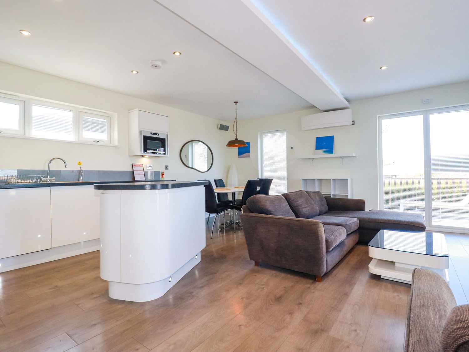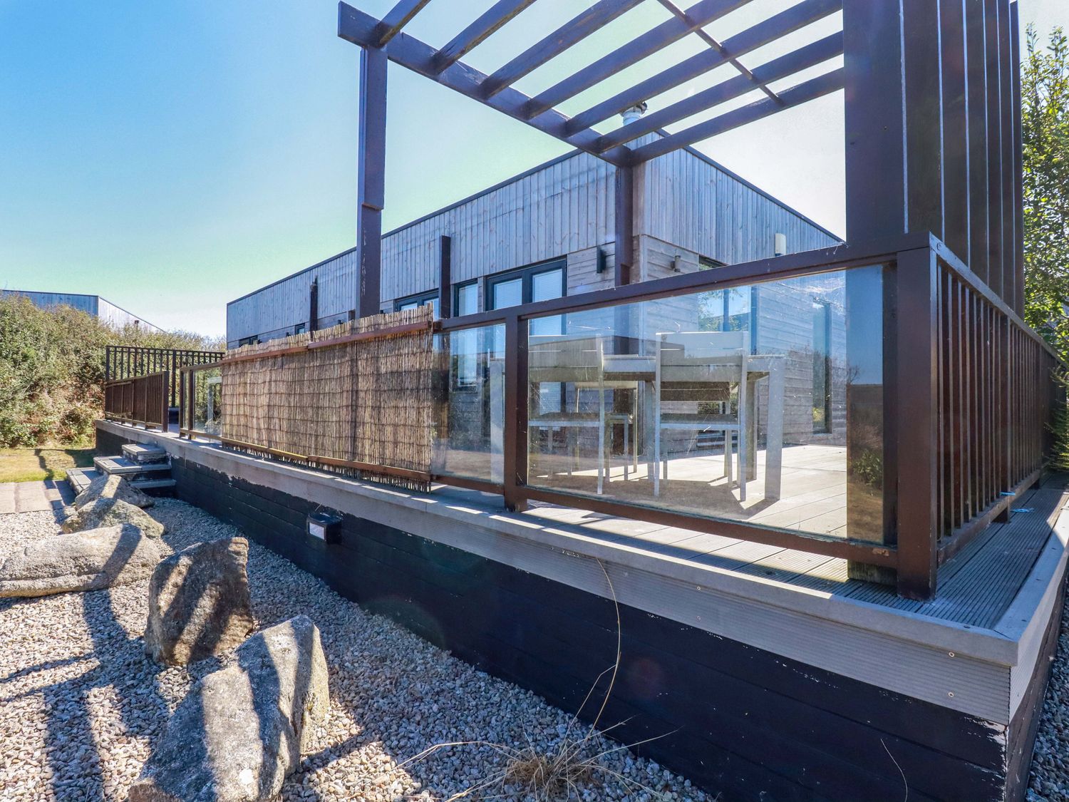 "Gwel An Mor, consists of a open-plan living space with kitchen with microwave, kettle, and toaster, a dining area seating six guets and sitting area with woodburning stove and TV. The bedrooms consist of a king-size (zip/link, can be twin on request), a double with TV, and a twin serviced by a bathroom with bath, shower over, basin and WC and shower room with walk-in shower, basin and WC. Outside there is decking with furniture, hot tub and designated parking space for 1 car. Within 1.1 miles, you will find a shop, within 1.2, a pub, and within 0.9 miles a beach. Please note that this is a non-smoking property. No pets allowed. WiFi, fuel, power, bed linen and towels are all included in the price. After a day of exploring Cornwall, head back to Gwel An Mor and unwind in the hot tub. Note: There are steps up to the property. Note: This property has a Good Housekeeping Bond of 250GBP"