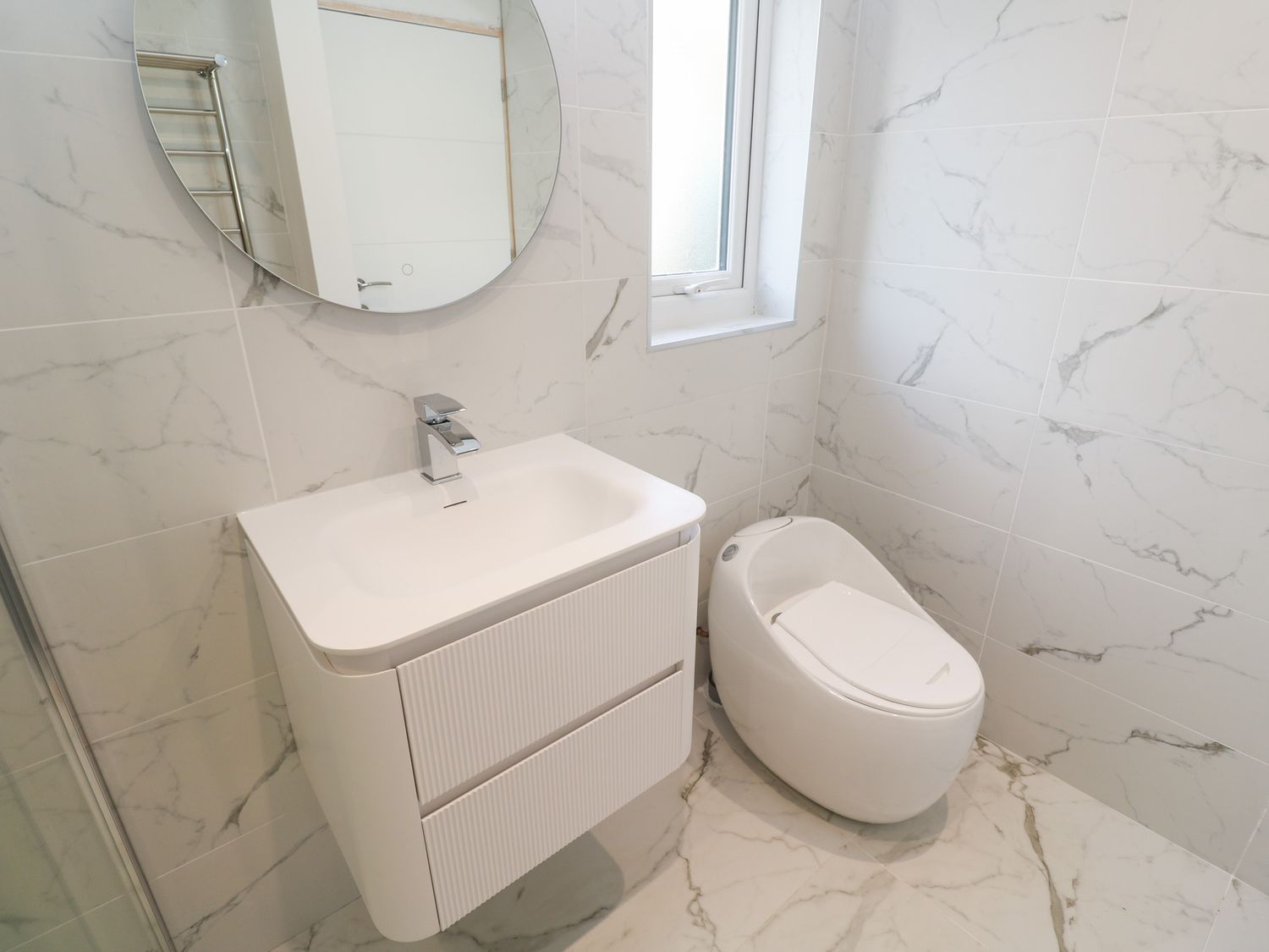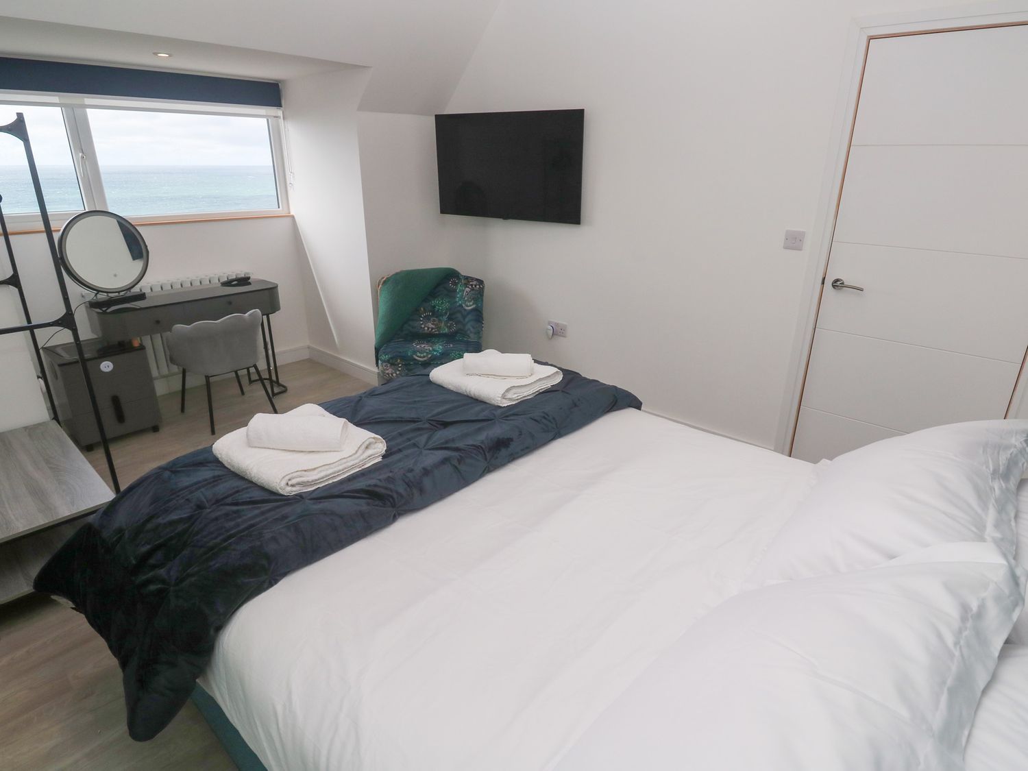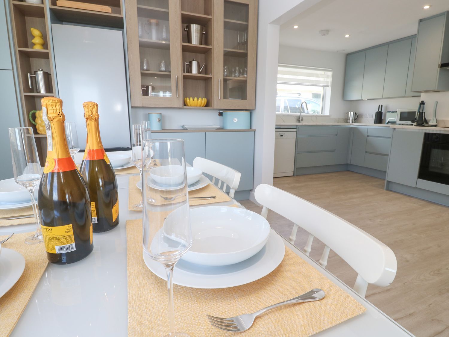 "Shearwater, a house consists of a kitchen/diner with oven, hob, fridge/freezer, microwave, washing machine, dishwasher, kettle, toaster, and seating for eight guests, and a sitting room with TV and woodburning stove. The bedrooms consist of a ground-floor super-king-size (zip/link,can be twin on request) with TV, a ground-floor king-size, a king-size with TV and a king-size with TV and en-suite shower rooms serviced by a ground-floor shower room with walk-in shower, basin, heated towel rail, and WC. WiFi, fuel, power, bed linen, and towels included in the rent. Outside, there is a front garden with lawn and furniture, rear terrace garden, and off-road parking for three cars to the rear, with an additional dedicated space for 1 car at the bottom of the driveway. Sorry, no smoking. Two well-behaved pets allowed. Within 1.2 miles you will find a shop, 0.4 miles a pub and within 0.2 miles a beach. Your stay at Shearwater is sure to be a memorable one. There is a Good Housekeeping Bond of 450 GBP"