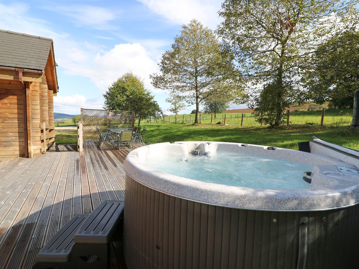 "Dan Y Coed is a fantastic family-friendly lodge resting in Beggar's Bush near Presteigne, Wales. There are four bedrooms in the property sleeping eight guests, made up of a double with an en-suite bathroom, a ground-floor double, a twin with an en-suite basin and WC and a ground-floor bunk room, served by a ground-floor bathroom. There is also a kitchen/diner, utility, sitting room and a snug. Outside you will find off-road parking for four cars, a front lawn and veranda with furniture and a side patio with a hot tub. Dan Y Coed is the perfect family holiday home from which to explore Mid Wales. Note: This property has a Good Housekeeping Bond of 450GBP."
