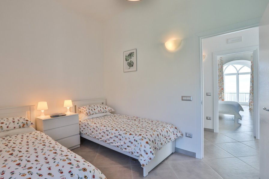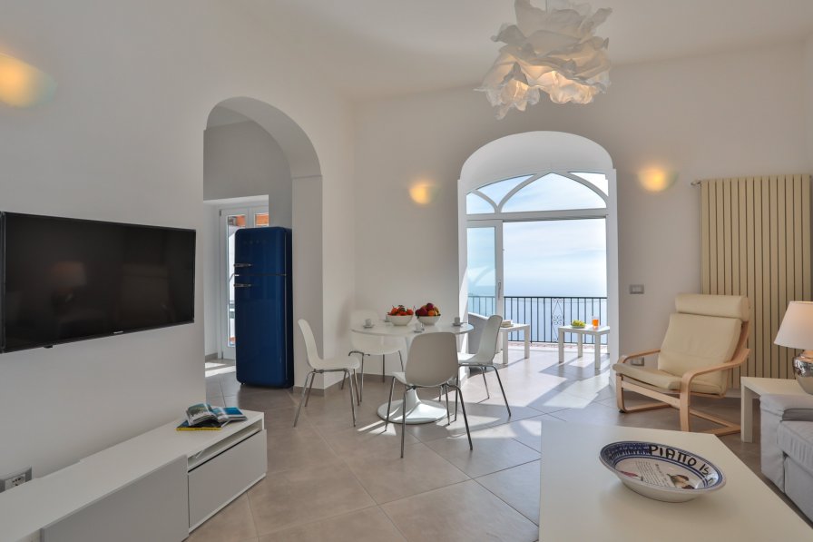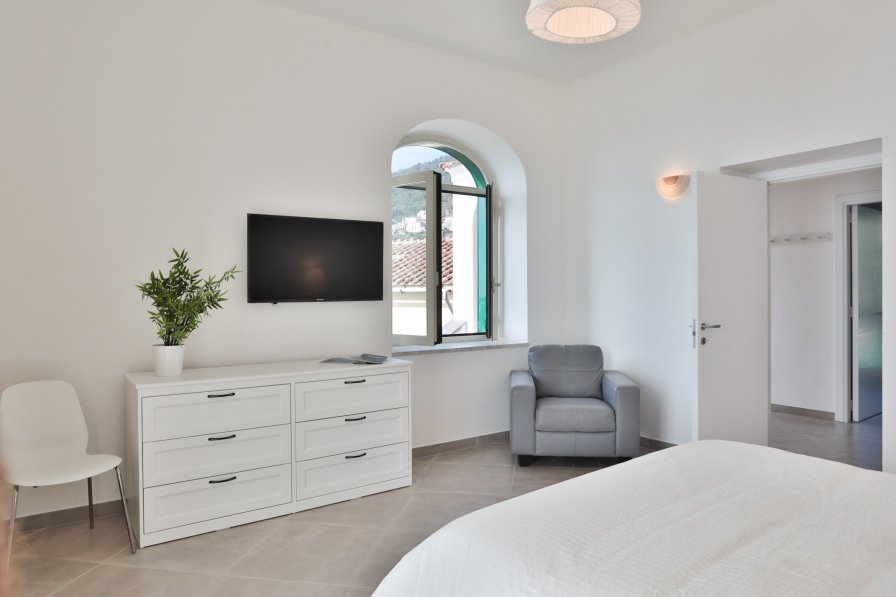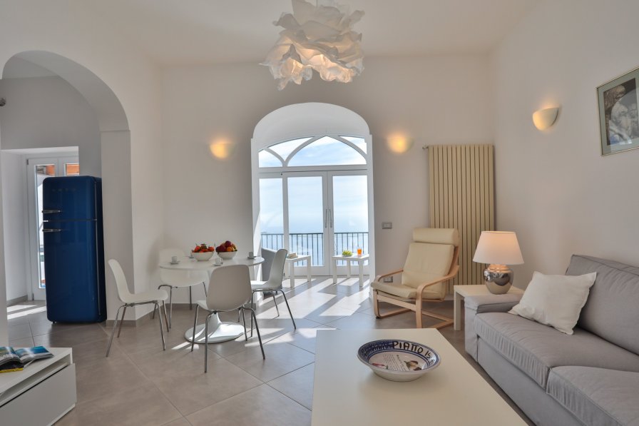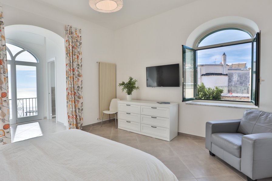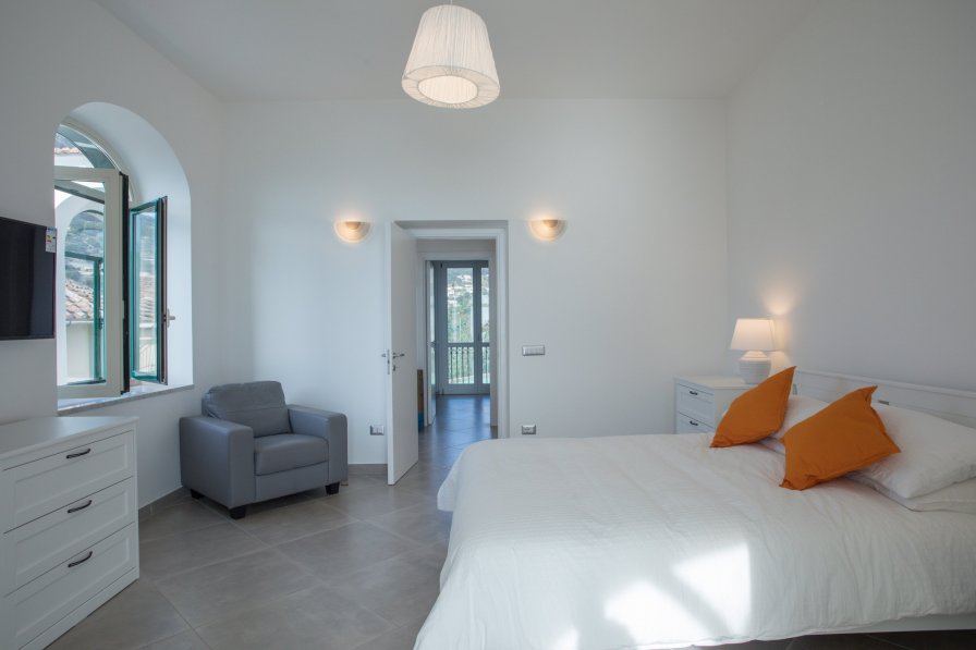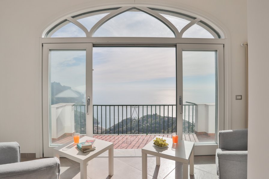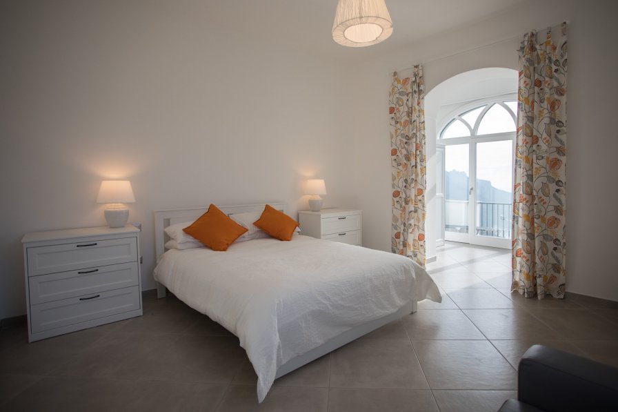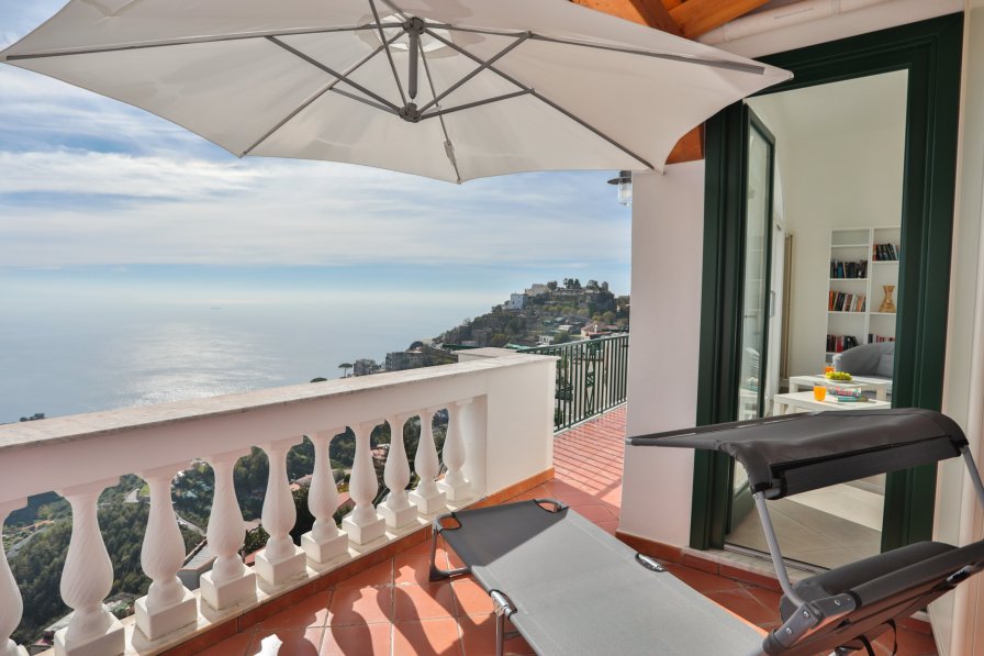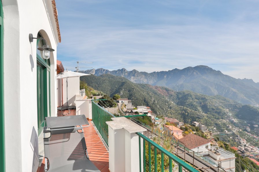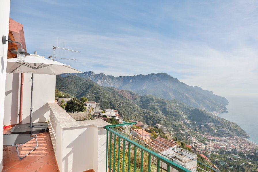 The house has been restored in the 2018 adding all modern comforts to include WI-Fi Internet access, portable A/C units, dryer, washing machine , satellite TV, winter heating, new kitchen equipments and utensils. The holiday accommodation has been tastefully furnished with modern tiles and furniture in the white colour; spacious rooms and large French doors enrich the beauty of the apartment making it extremely bright and airy. A L-shaped balcony, partially shaded by a wooden porch, runs the length of the apartment, offering views over the sea and the towns of Minori, Maiori and the cozy hamlet of Torello on a hillside below Ravello. The terrace is furnished with outdoor dining furniture and sun lounging chairs. Serene and peaceful, Casa Irma is perfect for a romantic couple's getaway or a small group seeking a place to relax and enjoy the beautiful scenery of the Amalfi Coast. There are nature paths next to the house's door, which allow guests to reach Scala, Amalfi or Minori on foot, starting from a point high up in the hills, suspended between the sky and the sea where Ravello is situated. If you like walking, these are walks not to be missed: at every step brief glimpses of breathtaking views open up in front of your eyes and these will become unforgettable memories that will stay in your heart after your holiday has ended. A car is not necessary here , the local bus service is a cheap and a great way to get around the area if you don't want to drive. The SITA bus stop with a regular service to Amalfi is 10 minutes away from the house . A car is useful for those keen on going a little further afield to Pompeii , Naples, Sorrento, etc And if you do have a car , a parking space for medium sized cars, can be reserved in a private area right below the apartment. Accommodation: From the main gate, you need to walk up 32 steps to reach the entrance door of the house. Entering the door, a spacious corridor, gives access to the rooms of the apartment. The larger bedroom has a matrimonial bed ( 160x180) . It has direct access onto the balcony troughout an arched French door . The double bedroom features en suite bathroom which is equipped with a washbasin, a toilet , a shower and a window. The second bedroom has twin beds ( on request , they can be converted in a double bed), a beautiful open marble fireplace ( for decorative purposes only ) and French doors opening onto a balcony overlooking the Medieval town of Scala, situated in the hearth of the Lattari mountains and the winding Dragon Valley which separates Ravello from Scala. The living/dining room is roomy and airy . It is elegantly furnished with modern lamps, a large sofa and an armchair around a coffee table, a large flat-screen television, a round dining table with chairs which can accommodate up to six guests . An open arch, gives access to a second living area with 2 armchairs and a library. It features a French door opening onto the terrace with spectacular views. The terrace is equipped with 4 sun loungers. The kitchen can be reached from the living room . The kitchen area is fully equipped with 4 gas rings, dishwasher, microwave, electric oven, fridge, freezer and a French doors opening onto the porch, perfect location for outdoor meals while enjoying sea views . The porch is equipped with a wooden dining table table shaded by a sun umbrella. The second bathroom is set at the end of the corridor. This bathroom is equipped with a washbasin, a toilet and a bathtub with shower stall. Annex to the full bathroom , is a guest bathroom. It is equipped with a toilet and a washbasin Along the corridor you will find also the laundry area equipped with a washing machine, a dryer as well as ironing facilities. The small Piazza Fontana which houses a bar , two good restaurants , a grocery shop for immediate provisions is within an easy 5 minutes walk. The main square Piazza Vescovado is 800 mts away . Other shops for every purpose, restaurants and pizzerias , are all around the main square . Amalfi and the beaches are a 20 min bus-ride away. The blue SITA buses leaving every hour stops at about 800 mts far from this accommodation Amalfi 5 Km , Minori 7 Km, Positano 24 Km , Salerno train station 30 Km, Sorrento 39 Km From Amalfi there are ferries and hydrofoils to Positano (20 min.) , to Naples ( 2 h.) and Sorrento ( 1 ½ h) as well as to the Islands of Capri ( 1 h.) and Ischia ( 2 h.) and also rent boats to explore the surrounding coastline, and visit the many small grottoes along the coast. The services to Napoli and Ischia operate only during the spinning Summer season. Airports : Naples ( Capodichino) 65 Km, Rome ( Fiumicino) 320 Km