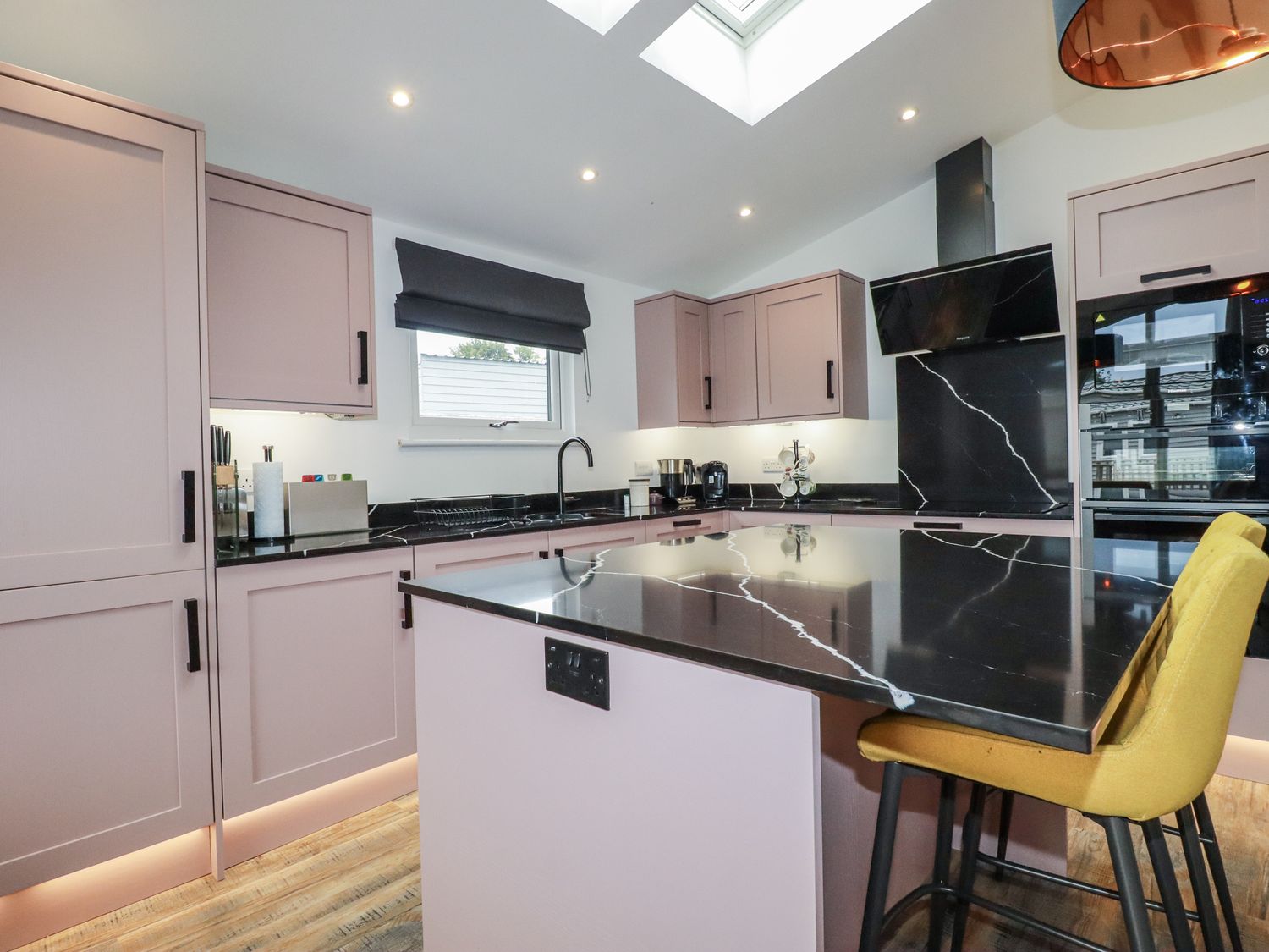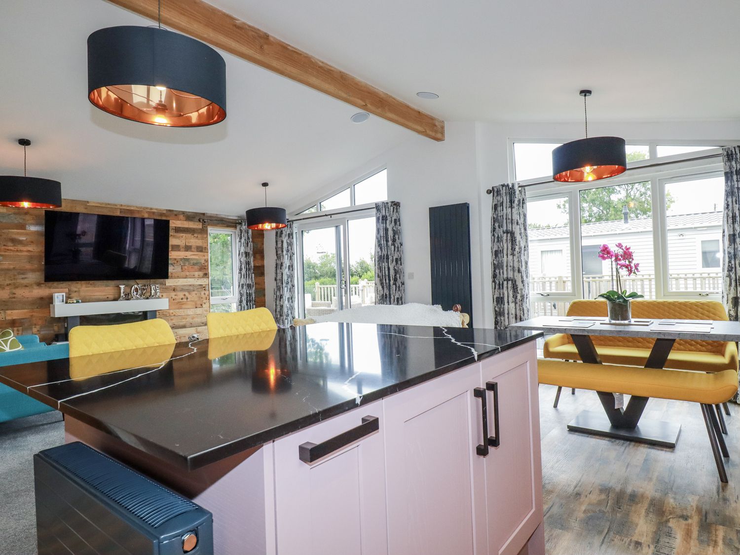 "Single-storey. Two bedrooms: 1 x double with TV and en-suite with walk-in shower and basin and WC, 1 x family room with TV. Shower room with walk-in shower, basin, WC. Open-plan living space with kitchen/diner and sitting area with electric fire"