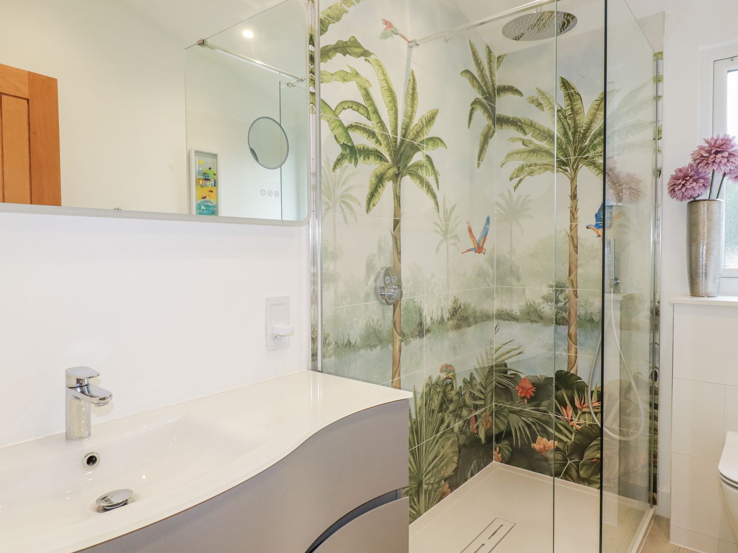 "Minack Lodge, a single-storey lodge, consists of a kitchen/diner with electric double oven, electric hob, microwave, fridge/freezer, kettle, toaster, breakfast bar, and dining seating for four, and a sitting room with Smart TV, two sofas, and an electric fire. The bedrooms consist of a double with en-suite and a family room. There is a shower room with walk-in shower with jungle decoration, basin, and WC. WiFi, fuel, power, bed linen, and towels are included in the rent. Outside, there is an enclosed rear garden terrace with hot tub, sofa, garden table, and chairs, and private off-road parking for two cars. Sorry, no pets and no smoking. Minack Lodge offers a splendid retreat, whatever time of year. Note: Steps leading up to entrance, please take care."