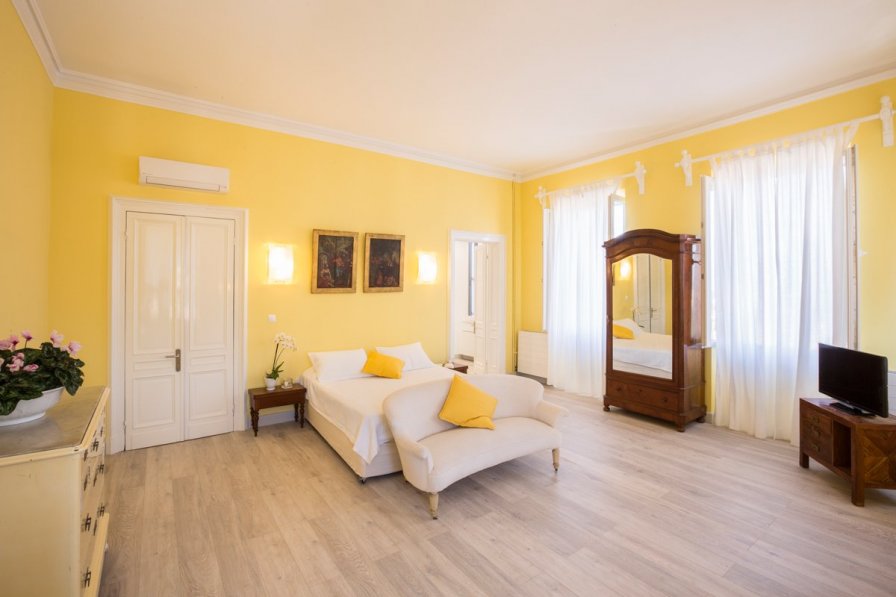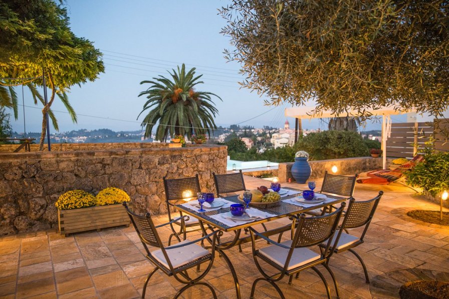 As you approach this spectacular property, there are constant hints to the magic available inside. Blending neoclassical architecture with contemporary interior design, every corner of the villa has been thought about. As you step inside the living spaces, offer an eclectic mix of styles, from romantic flowers and wall paintings, to opulent furnishings and contemporary features, all merging together to create a unique and stunning property. Mouseio Mansion is located between the centre of Corfu and the west coast with breath-taking views of the nearby Old Town and the beautiful sea. With local eateries and shops a short walk away, as well as the town centre and beaches within a short drive, the location is ideal for exploring this magical island. On the ground floor, the layout leads you from room to room, soaking in the unique styles and mystical features, all drawn together by beautiful views out to the pool and sea beyond. The kitchen has a relaxed, laid-back atmosphere, with the traditional features whitewashed and paired with modern appliances, a comforting wooden table and a modern dining space. The main living room adopts a similar style yet draws in brighter and more playful colours as well as some antique furnishings that hint to the history of the property. With a bright yellow feature wall and large yellow sofas, as well as a pool table, piano, various green plants and elegant doors out to the terrace, this bright and airy space needs to be shared, encouraging all the guests to gather in one room, sharing laughter and conversation whilst enjoying the magnificent features within this space. The dining room has a more traditional feel, with an antique hand-painted ceiling and furniture as well as a darker colour palette that makes the room feel intimate and warm, perfect for dinner parties and celebrations with your loved ones. Through the house, there are five beautiful bedrooms and four contemporary bathrooms. Each of the rooms has its own style and colours, allowing you to pick your own space and make it feel like yours, as you unpack your belongings and settle in. On the ground floor, there is a double bedroom, with the remaining rooms upstairs. These include a master suite, a twin room and two single rooms. Outside, the villa opens out onto bright terraces, with space to dine outdoors under the star-lit sky and to swim in the private pool, listening to the water cascade down over the infinity edge, whilst gazing to the sea on the horizon. Everything element of Mouseio Mansion feels relaxing, with luxury features that make a holiday here feel like a real treat – unforgettable memories are guaranteed! #### Features The Villa Mouseio Mansion is located in the historic centre of Corfu town. With 3 bedrooms and 3 bathrooms, it hosts up to 6 people. Ground Floor - Kitchen - Living Room of 150m2 with TV area and fireplace - Dining Room with table for 12 persons, antique hand-painted ceiling and furniture - Double bedroom - Bathroom with bath and shower - Utility Room - Cloakroom with WC First Floor - Master double bedroom with en suite bathroom with bath, shower, WC and walk-in closet - Twin bedroom - Single bedroom with sofa-bed - Single bedroom - Two bathrooms with shower and WC Exterior Grounds - Infinity swimming pool with cascade (50m2) - Sundeck with umbrella and sunbeds - Outdoor dining area - Private parking Additional Facilities - Air-conditioning in all bedrooms - Two fireplaces - Iron and ironing board - Washing machine - Tumble dryer - Pool table #### Location Mouseio Mansion is located between the centre of Corfu and the west coast with breath-taking views of the nearby Old Town and the beautiful sea beyond. With local eateries and shops a short walk away, as well as the town centre and beaches within a few minutes' drive, the location is ideal for exploring this magical island. The central location allows you to divide your time between sightseeing in the town, basking in the sun on some of Corfu's most beautiful beaches as well as having the west coast within a 20-minute drive. Corfu has long been one of the most famous Greek islands, and for a good reason! The island is flooded with naturally beautiful, breath-taking beaches and a vivid nightlife, as well as areas of complete tranquillity. Whether you are visiting for a week, two or even a month there is no end to the beauty and entertainment on offer. A few minutes' drive from your door you will find yourself ambling the majestic streets of Corfu Town, a UNESCO world heritage sight and the capital of this stunning island. You can meander the Venetian fortress and English Palace, losing yourself in the enchanting history of this town, before winding your way through the cobbled streets, overflowing with lively restaurants, coffee shops, bars and boutiques, all enclosed within pastel-coloured architecture. Those who want to explore the world beneath the water will know Corfu is famous for its diving. Known as one of the best places in Greece to dive, you can have a go for the first time, or set out on a deeper dive for the more experiences, seeing the secrets that hide below the waves. Some of the most popular dive sites are around Paleokastritsa, Othoni and the Paxi islets. You can explore the beautiful bays of Paleokastritsa with sea caves, a scenic canyon and schooling barracuda. There are also ample opportunities for water sports, snorkelling and sea kayaking, as well as simply enjoying swimming in the beautiful water and strolling barefoot down sandy beaches!