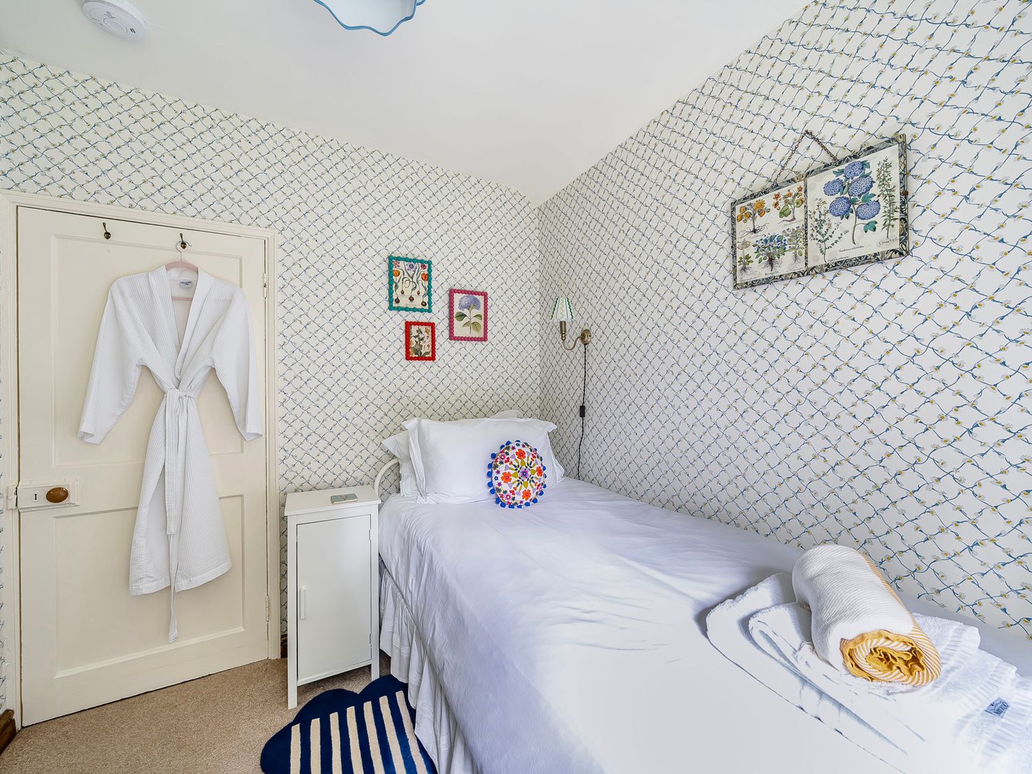 "Single-storey. Three bedrooms: 1 x king-size, 1 x double,1 x single with TV. Bathroom with p-shaped bath, shower over, basin, and WC. Kitchen. Living/ dining room with woodburning stove. Utility"