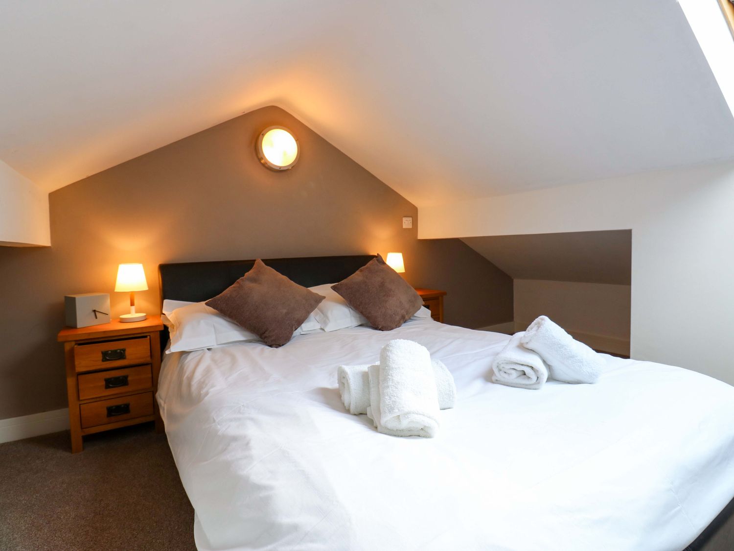 "Two bedrooms: 1 x ground-floor double, 1 x mezzanine-level double accessible by spiral staircase. Ground-floor shower room with walk-in shower, basin, heated towel rail and WC. Open-plan living space with kitchen, dining area and sitting area with electric fire"