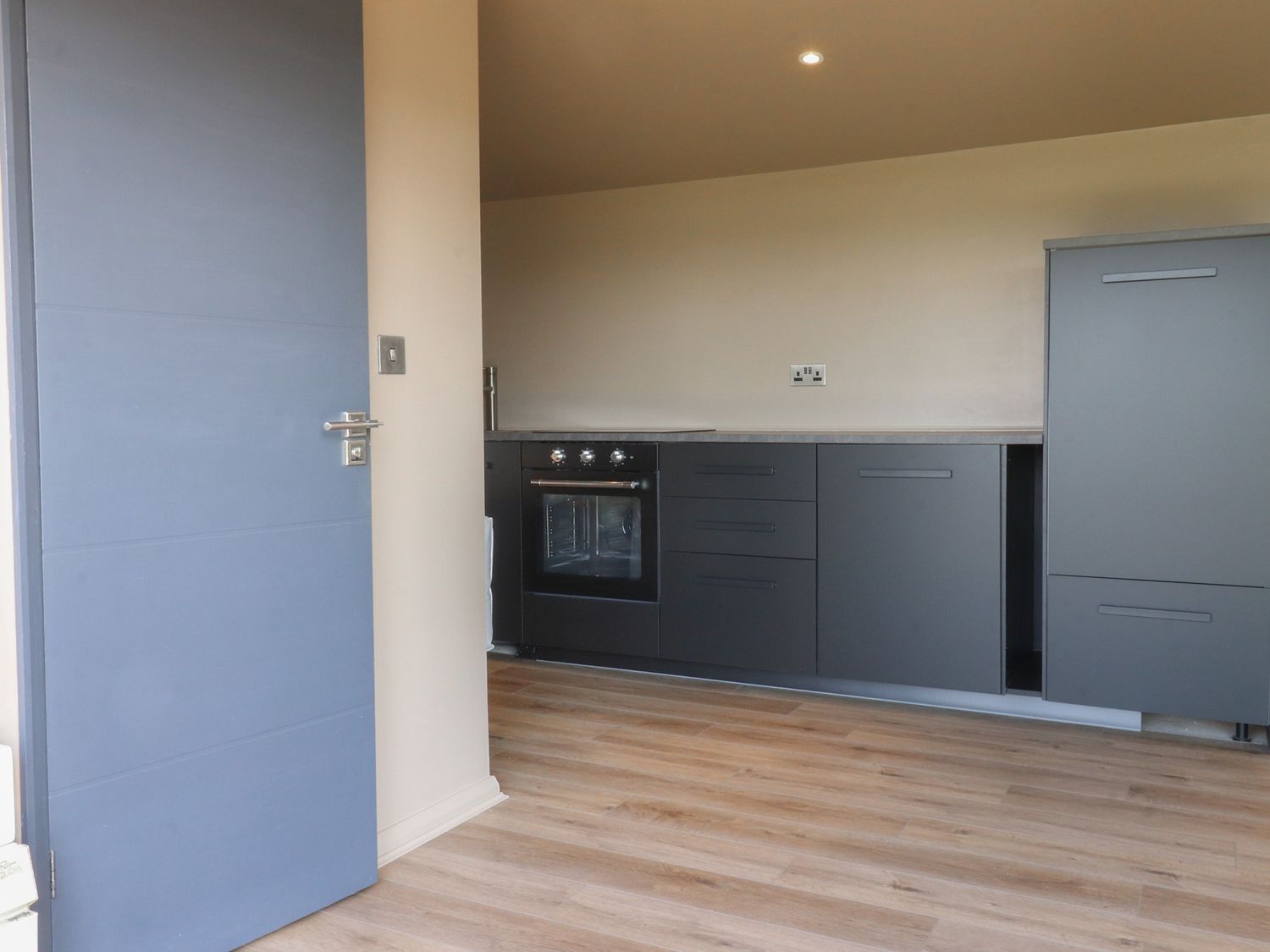 "Single-storey. Studio-style living space with a king-size bed, kitchen, dining and sitting area. Shower room with walk-in shower, basin, heated towel rail and WC"