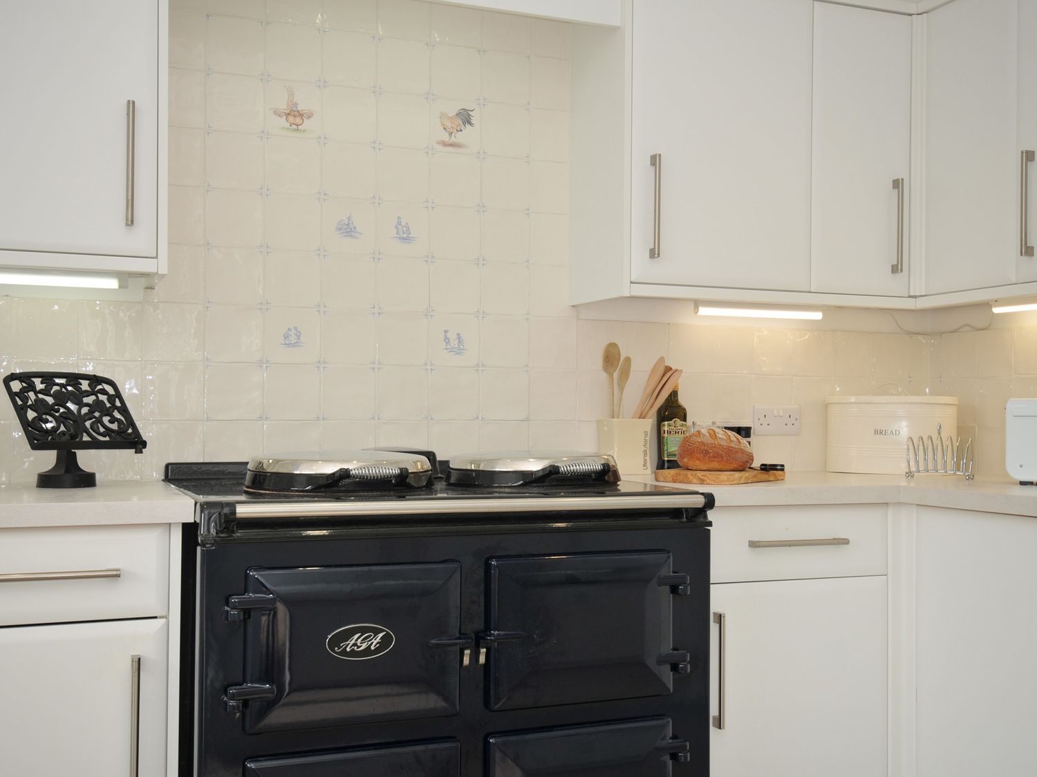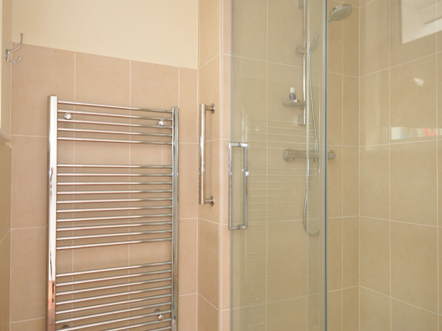 "Single-storey. Two bedrooms: 1 x king-size, 1 x twin (zip/link can be superking on request). Bathroom with bath, shower over, basin, heated towel rail and WC. Shower-room with walk-in shower and heated towel rail. Cloakroom, with basin, heated towel rail and WC. Kitchen with Aga. Utility with sink, washing machine and tumble dryer. Space to hang wet suits. Living/dining room."