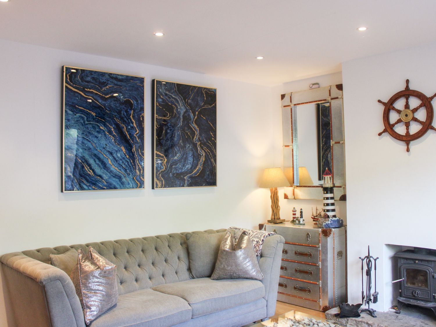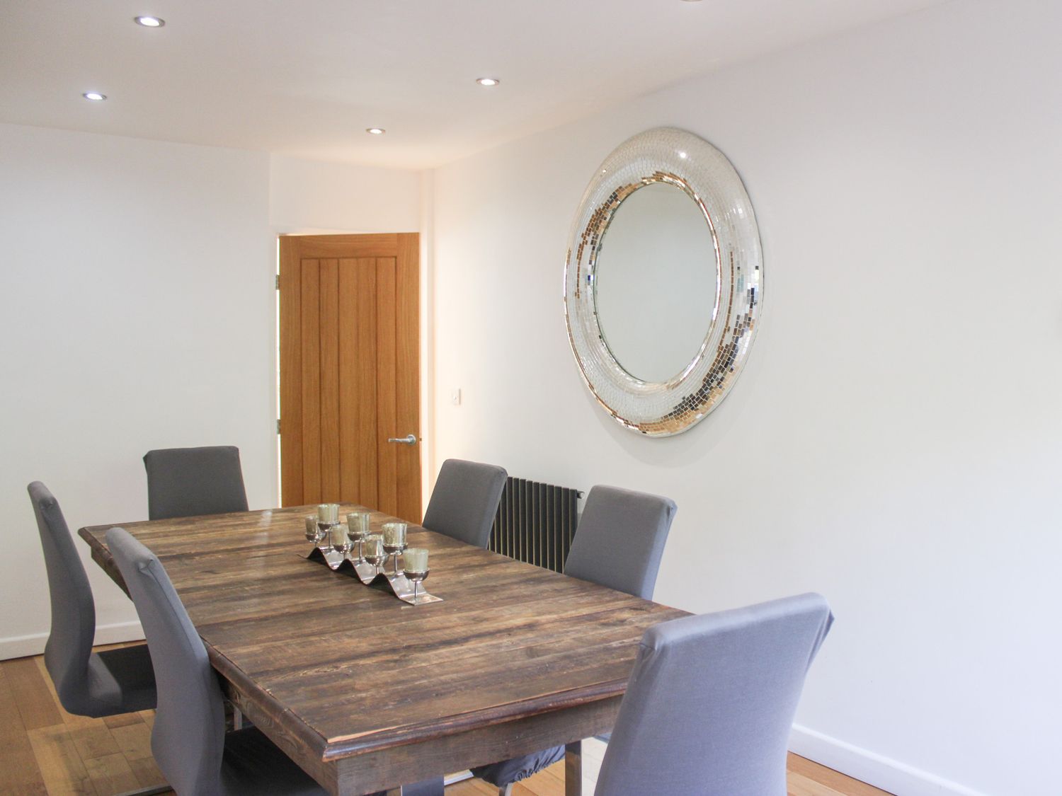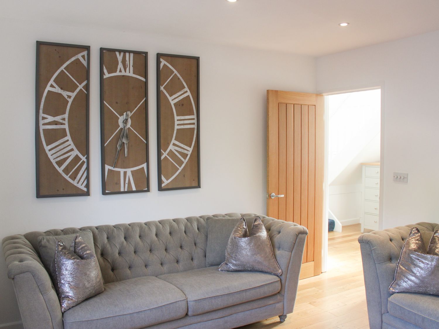 "Three bedrooms: 1 x super-king-size with smart TV only and en-suite with walk-in shower, basin, and WC, 1 x twin (zip/link, can be super-king-size please request within 2 weeks.) with smart TV only, 1 x twin with smart TV only. Bathroom with bath, walk-in shower, basin, heated towel rail, and WC. Cloakroom with basin and WC. Kitchen. Dining room. Sitting room with woodburning stove"