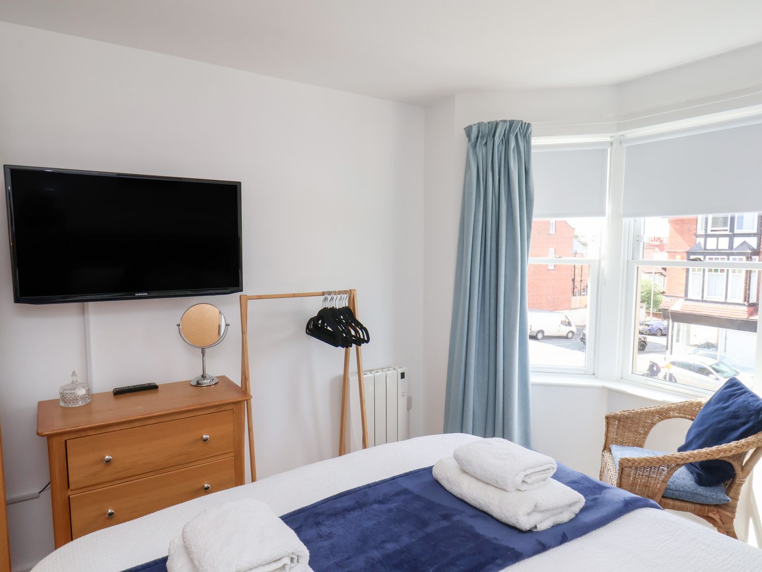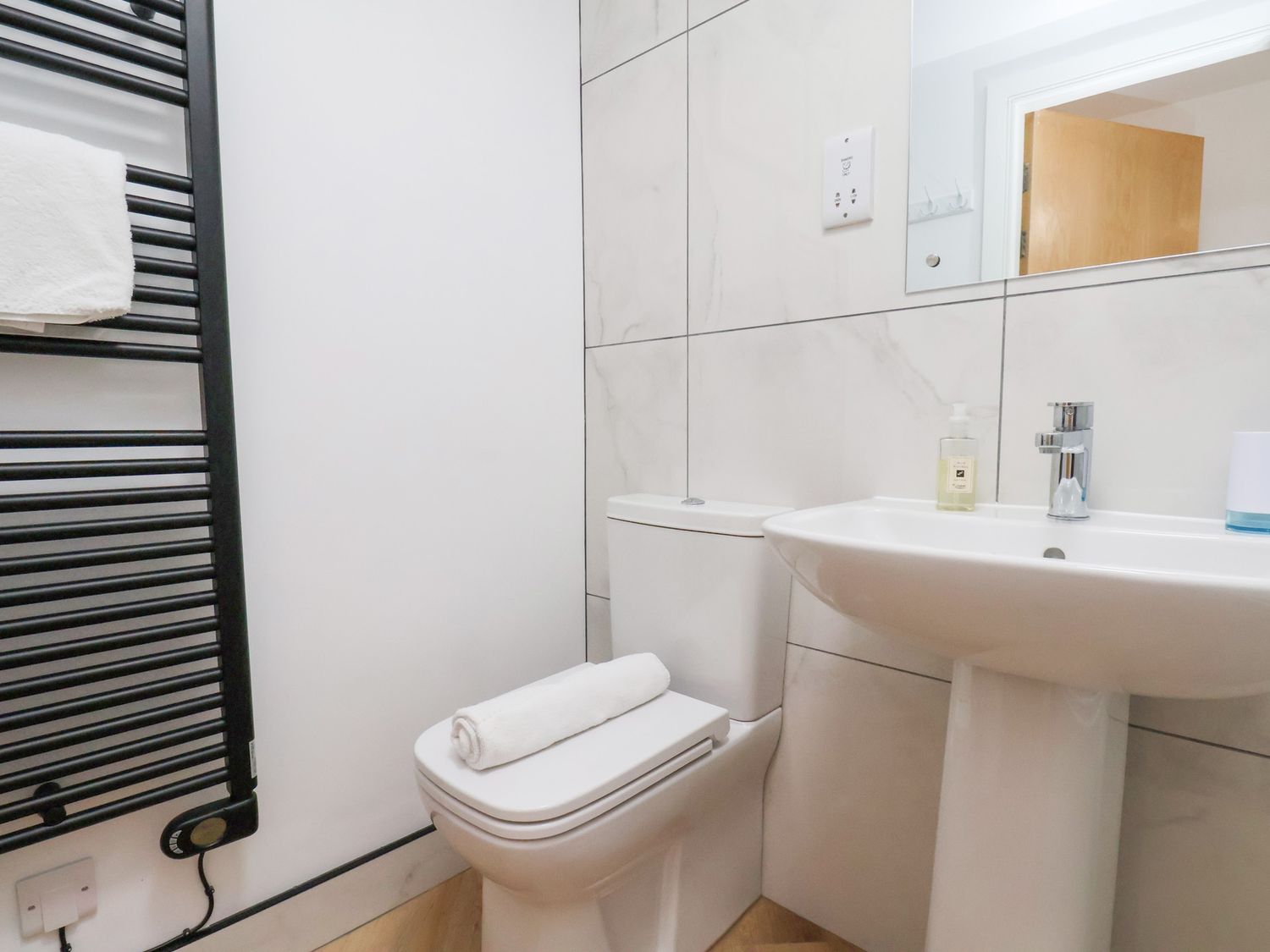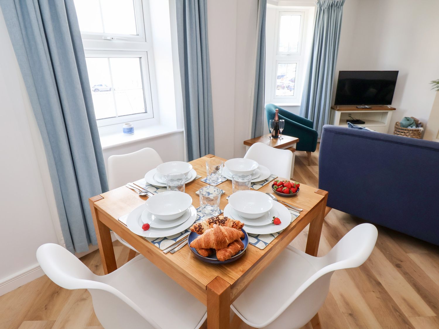 "Belle's View is a second-floor apartment that consists of a kitchen with an electric oven, induction hob, microwave, fridge/freezer, washing machine/dryer and dishwasher, a dining area with seating for four, and a sitting area with a Smart TV, books, and a pebble effect electric stove. The bedrooms consist of a king-size with a TV and en-suite walk-in shower, basin and WC, and a twin, along with a bathroom with a bath, shower over, basin and WC. Outside, there is off-road private parking for one car, an EV charging point, and additional roadside parking. Within 0.4 miles, you will find a shop, within 0.1 miles, a pub, and within 0.3 miles, a lake and beach, and please note that this is a non-smoking property. WiFi, fuel, power, bed linen and towels are all included in the price. One well-behaved pet is welcome. A highchair and travel cot are available on request. A seaside retreat awaits at Belle's View. Note: Lift access is available"