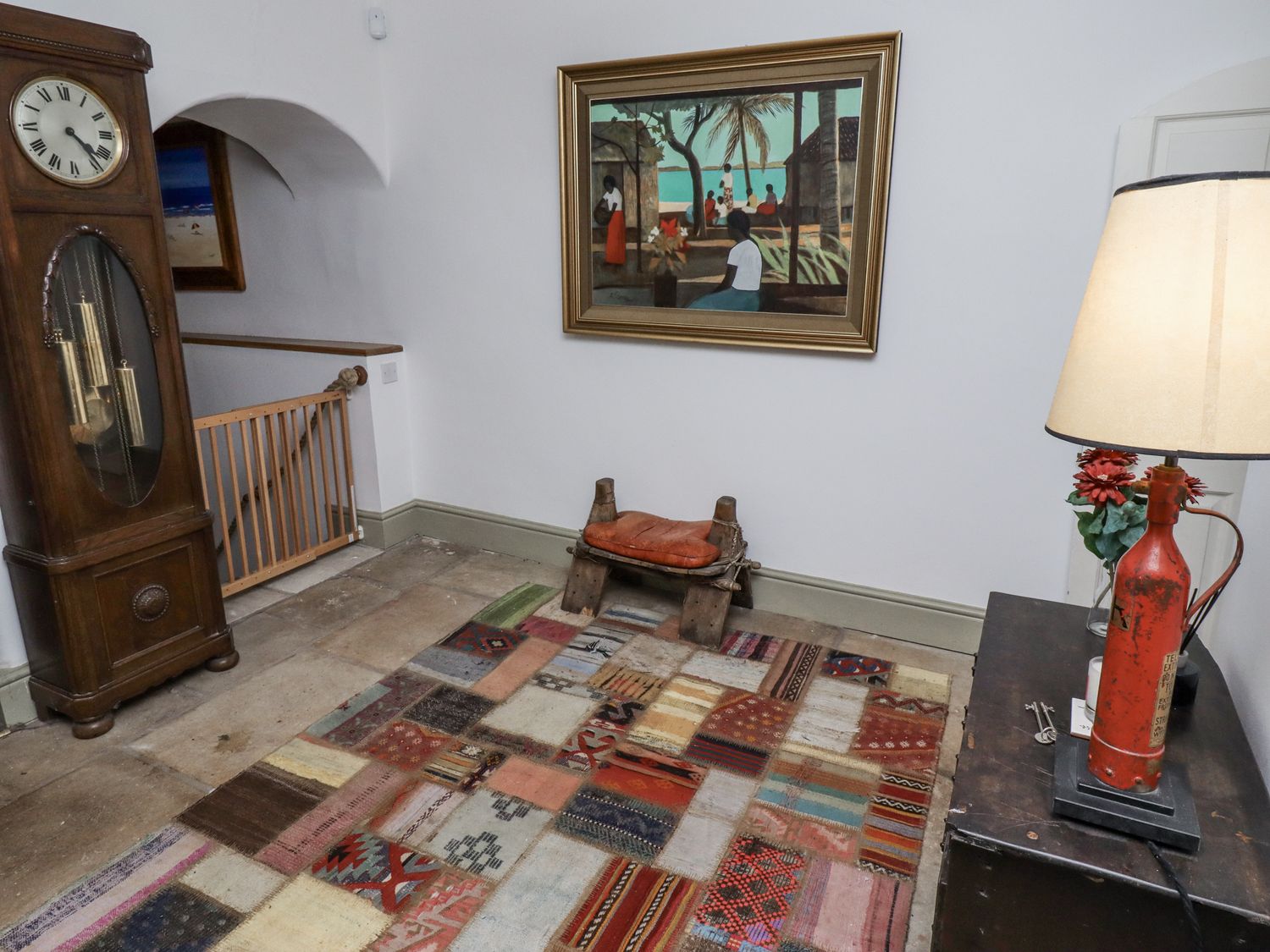 "Over three floors. Five bedrooms: 1 x super-king-size with balcony and en-suite freestanding bath, walk-in shower, basin and WC, 1 x king-size with en-suite bath, shower over, basin and WC, 1 x double with en-suite walk-in shower, basin and WC, 1 x king-size, 1 x double. Bathroom with bath, shower over, basin, heated towel rail and WC. Cloakroom with basin and WC. Farmhouse kitchen/diner. Utility. Dining room. Library with open fire. Sitting room with open fire. Snug. Sunroom. Lower-ground-floor games room with pool table and dart board"