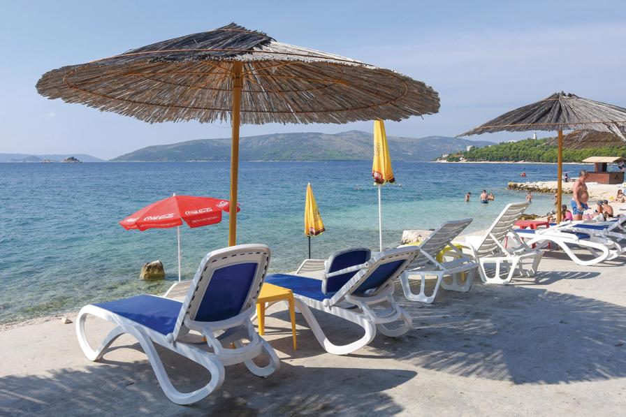 This simply decorated, two bedroom apartment, is located on the first floor of a family house. Even if it's situated in a quiet location, restaurant, shops and cafes are within walking distance, right next to the beach, which stretches for a full kilometre. There are many entertaining and sport facilities on the beach, as well as many boats that will take you to unforgettable excursions to the nearby islands. The town of Trogir, listed on UNESCO's list of cultural heritage, is only a ten-minute drive away. In its famous Old Town core, numerous cultural and entertainment events are held in the summer.