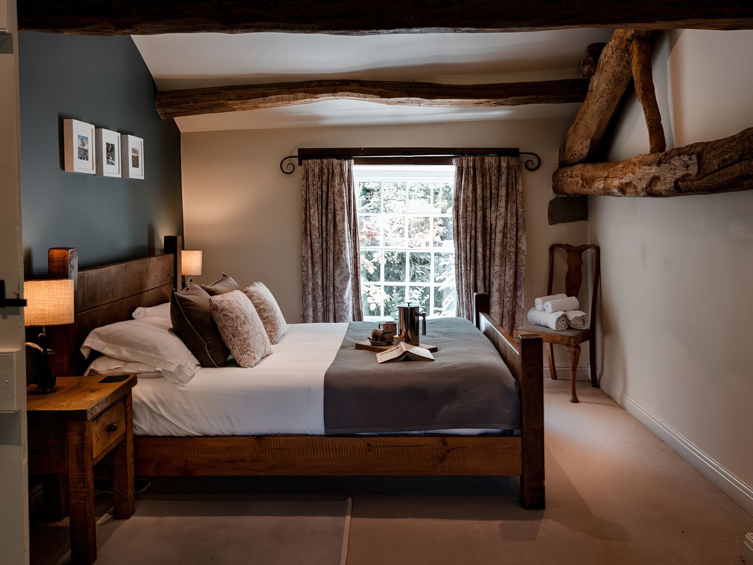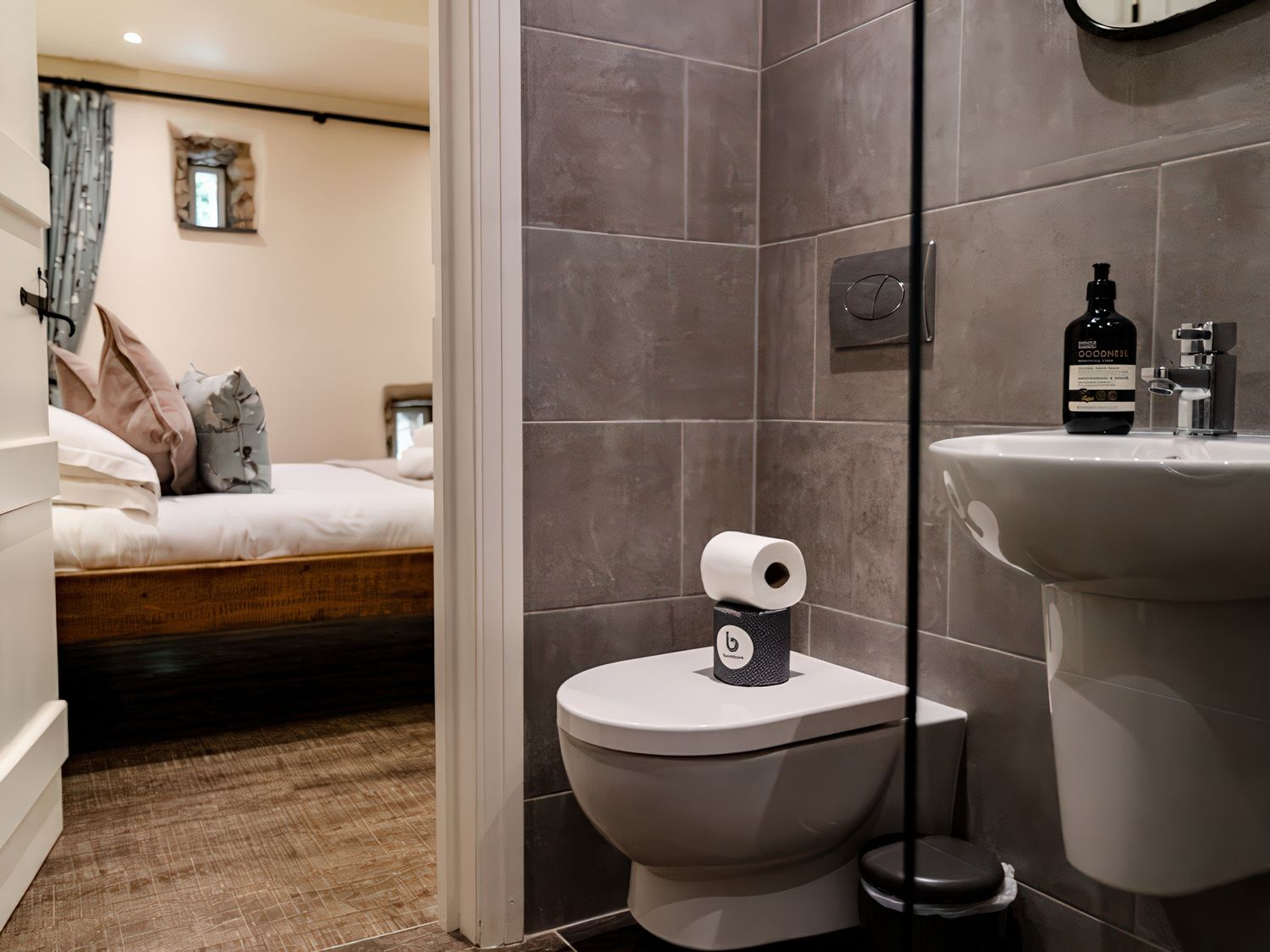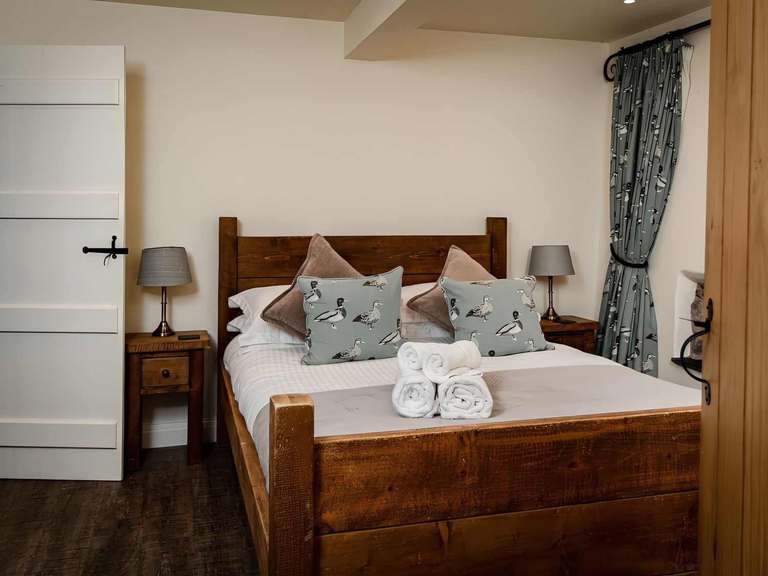 "Over two floors. Six bedrooms; 1 x king-size, 1 x king size, 1 x four poster king-size bed, 1 x ground-floor king-size with en-suite bathroom with waterfall shower, 1 x double with ensuite, 1 x twin. Bathroom with bath, separate walk-in shower, basin and WC. Ground-floor bathroom, with bath and shower over, basin and WC. Kitchen. Sitting room with woodburner. Dining room with woodburner. Snug. Utility. "