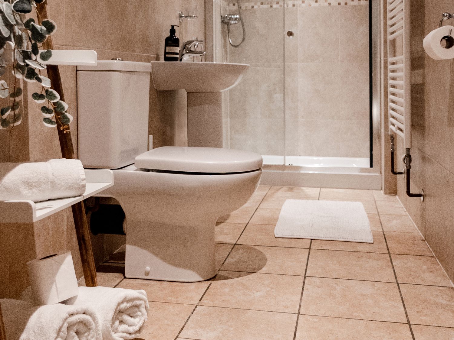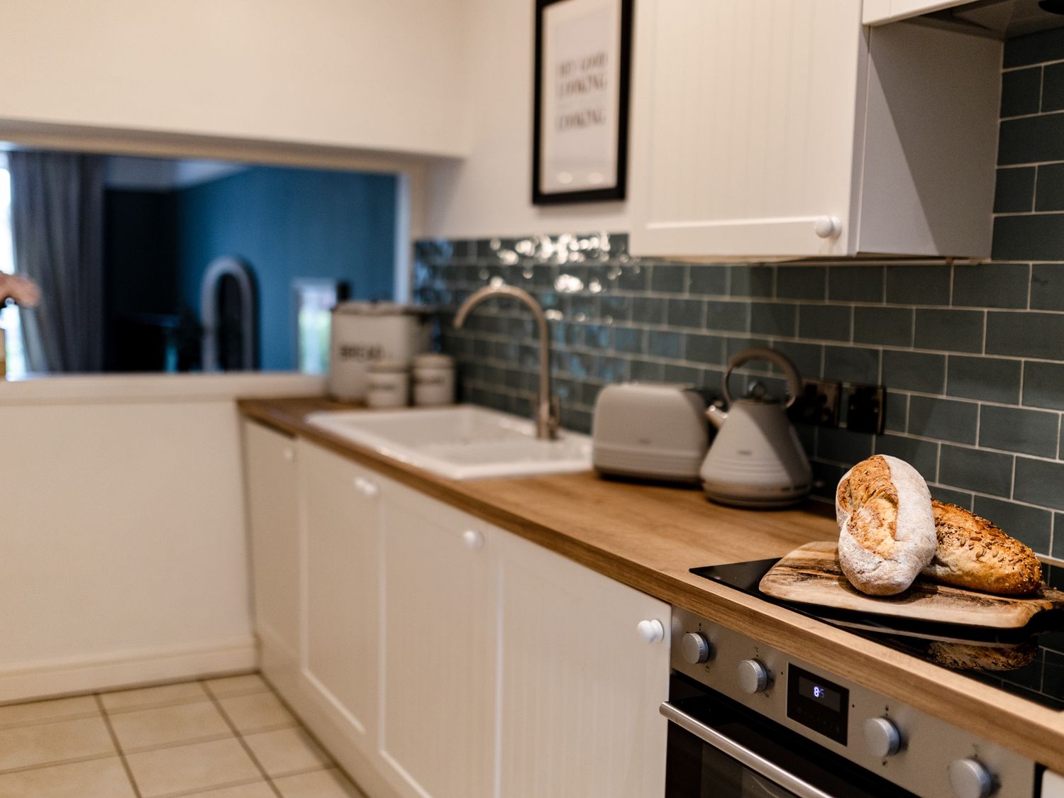"All-ground-floor. One super-king-size zip/link (can be 2 singles) bedroom with en-suite walk-in shower, basin, heated towel rail and WC. Kitchen. Living/dining room with woodburning stove."