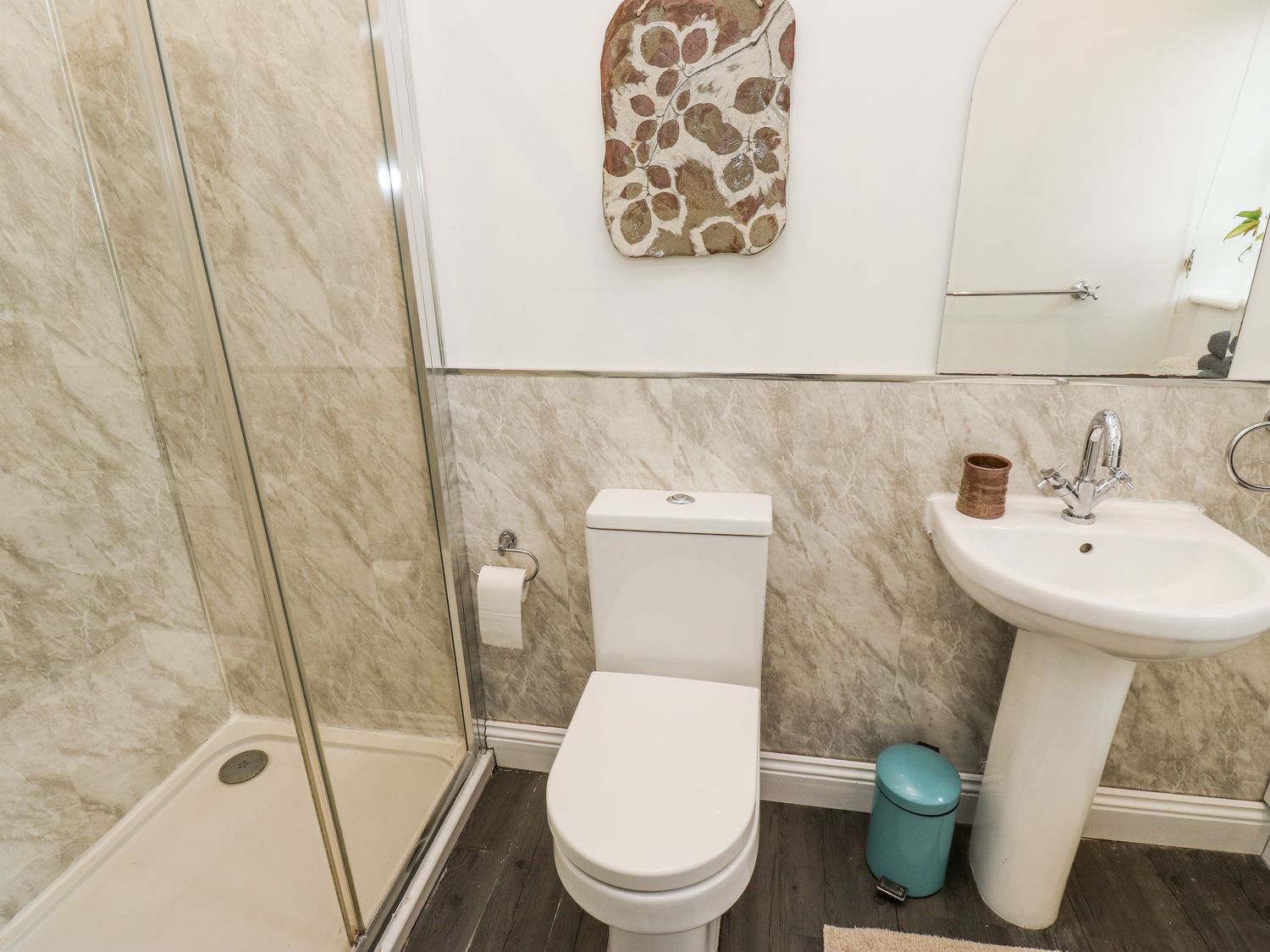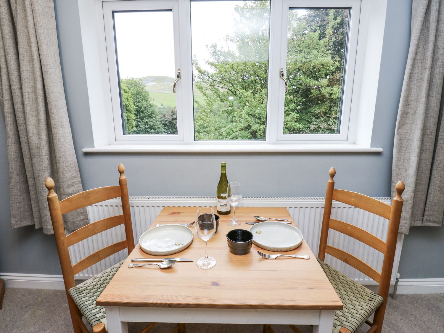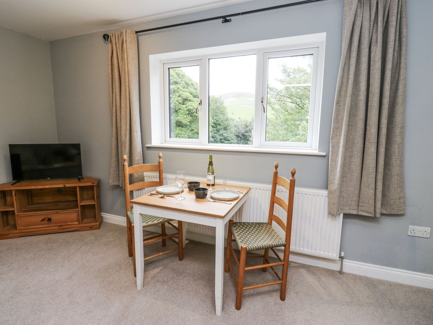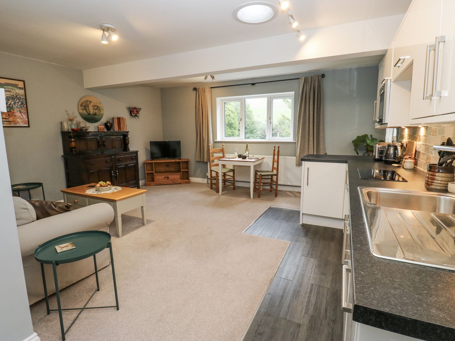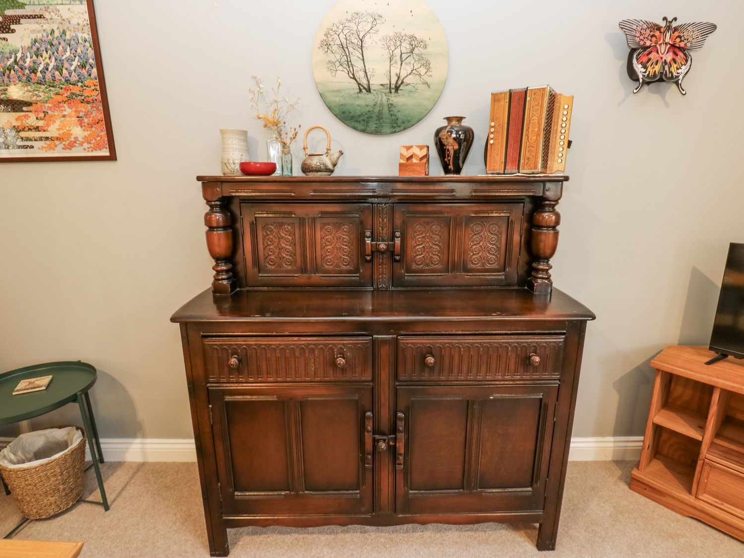 "The Treetop, a first-floor apartment consists of a kitchen with dishwasher, microwave, kettle, toaster, 2-ring electric hob, Air fryer and fridge, a dining room with dining seating, and a sitting room with Smart TV. The bedroom is a double. There is a shower room with walk-in shower and basin and WC. WiFi, fuel, power, bed linen, and towels included in the rent. Outside, there is an enclosed front lawned area with furniture and private driveway parking for one car.
