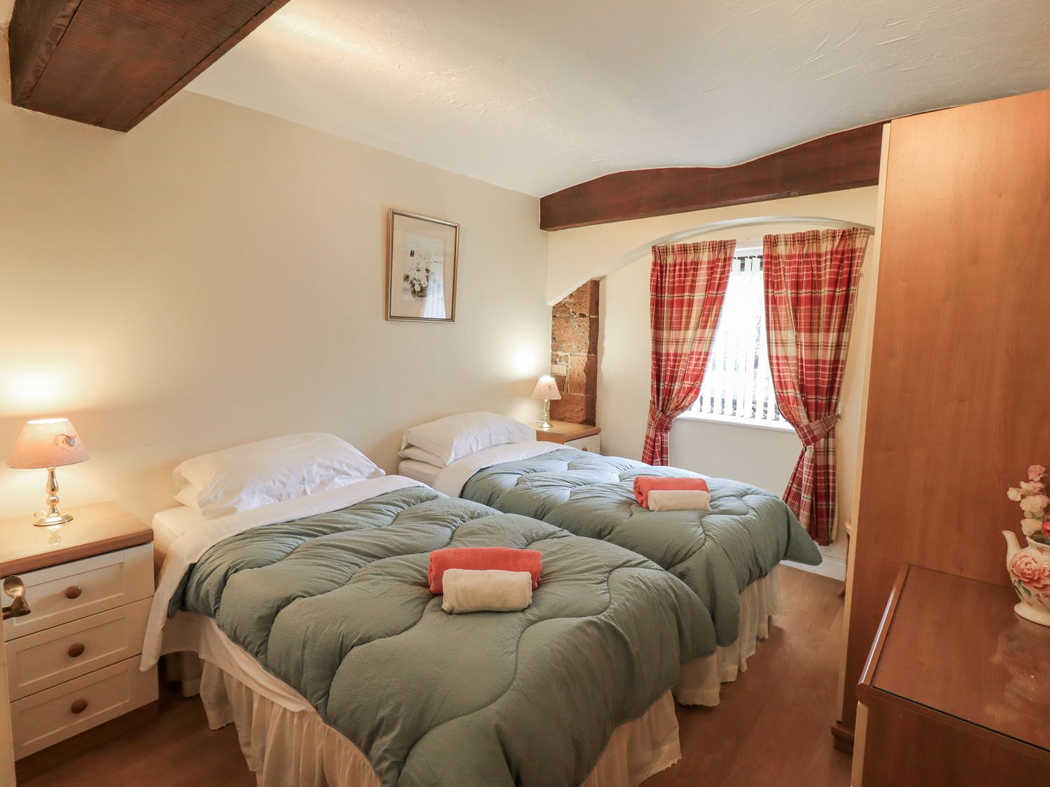 "The Coach House, a single-storey cottage, consists of a kitchen with electric oven and hob, fridge/freezer, microwave, kettle, and toaster, and a living/dining room with electric fire, Smart TV, and seating four guests. The bedrooms consist of a double with en-suite shower and twin, serviced by a shower room with walk-in shower, basin, and WC. WiFi, fuel, power, bed linen, and towels are included in the rent. Off-road parking for one car. Two well behaved dogs welcome but please keep on the lead due to this being a working farm. Sorry, no smoking. Within 2.7 miles you will find a shop, and within 2.8 miles a pub. Whatever the weather, a wonderful stay awaits at The Coach House. Note: May be able to accommodate a second car with prior notice. Please note: this property has a Good Housekeeping Bond of 250GBP"