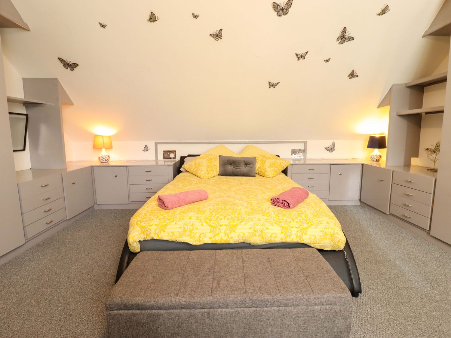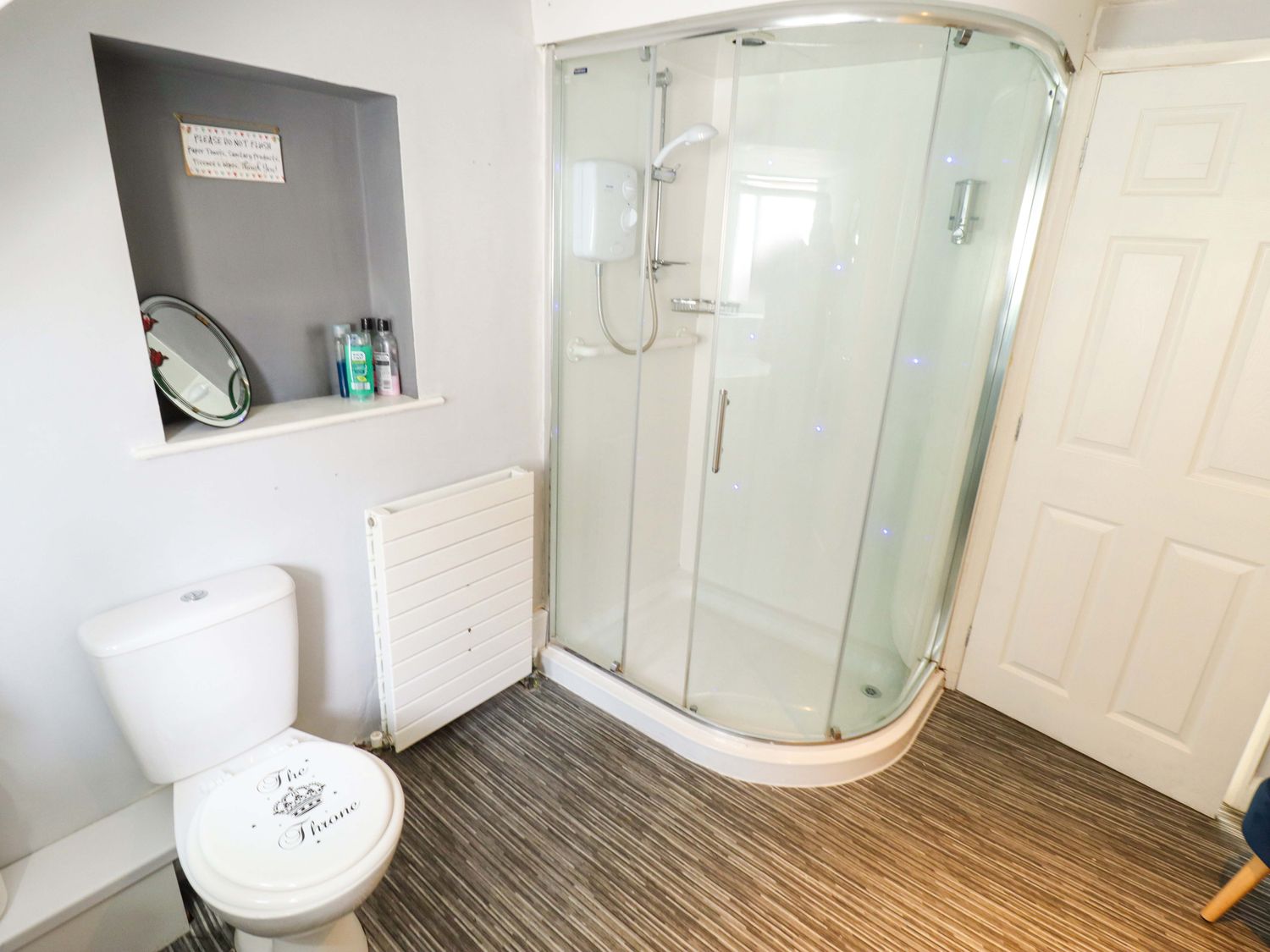 "Three bedrooms: 1 x double with Smart TV and en-suite bath, hand-held shower, basin, heated towel rail, and WC, 1 x family room with double, bunk and z-bed (for flexible sleeping arrangements). Shower room with walk-in shower, basin and WC. Kitchen/diner. Sitting room"