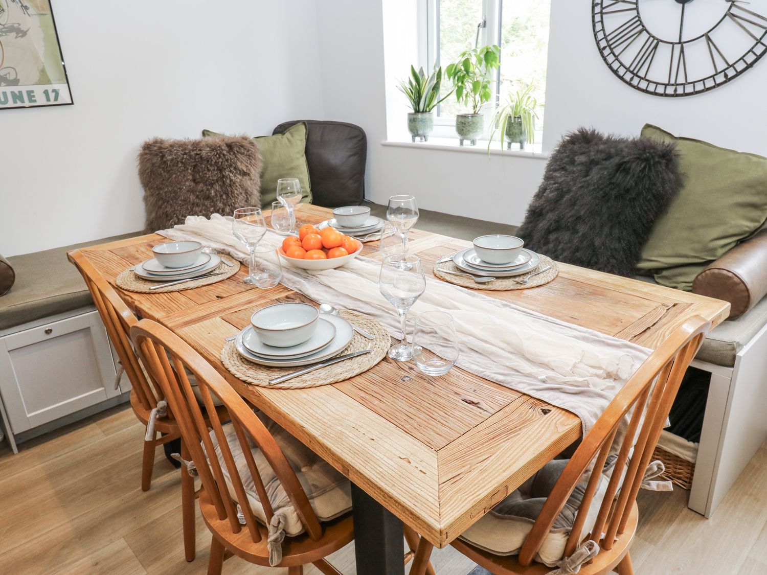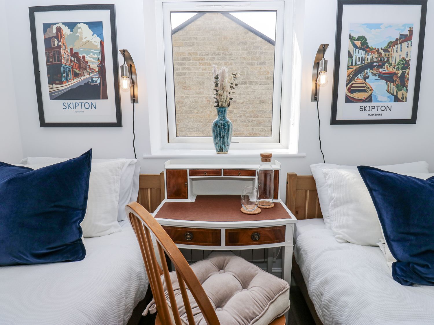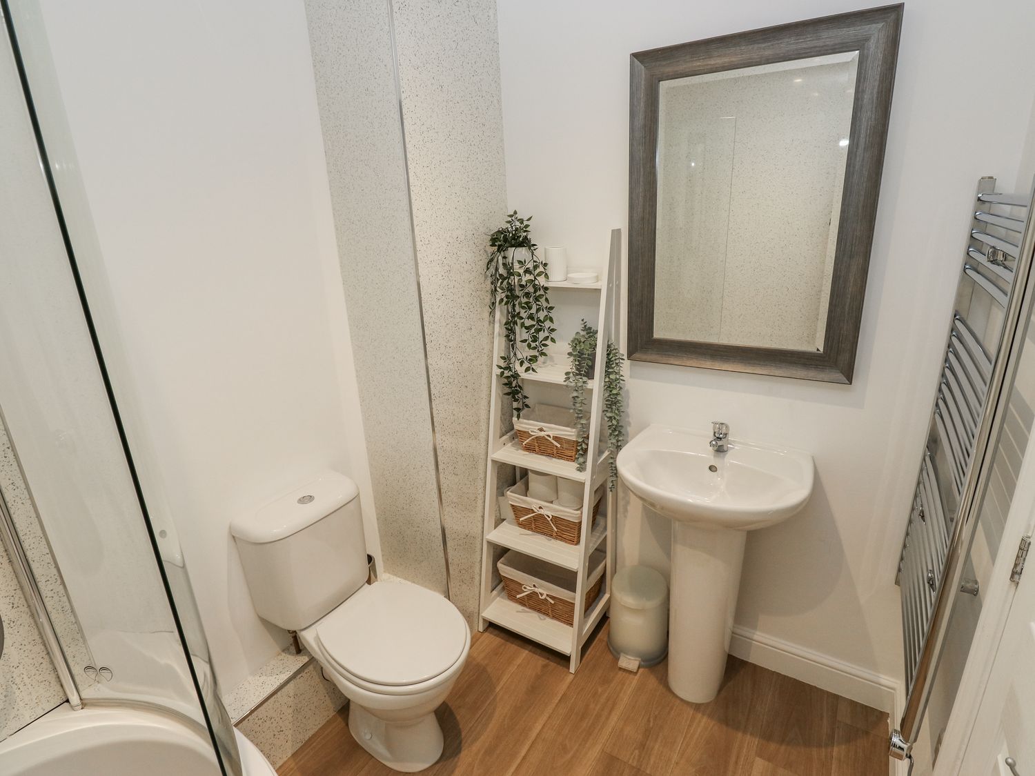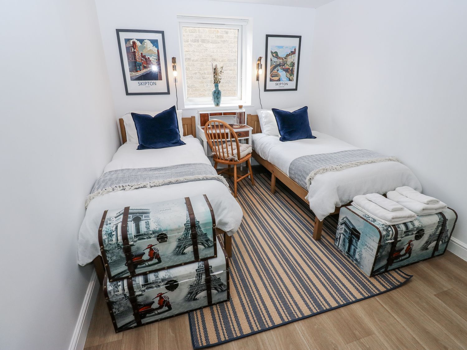 "Apartment 5, a ground-floor apartment, consists of a kitchen/diner with electric oven, electric hob, microwave, fridge/freezer, washer/dryer, dishwasher, kettle, toaster, dining table seating for four, and breakfast bar seating for two, and a sitting room with Smart TV and corner sofa. The bedrooms consist of a king-size and twin. There is a bathroom with bath, shower over, basin, and WC. WiFi, fuel, power, bed linen, and towels are included in the rent. Outside, there is an enclosed rear garden with patio and seating, and underground allocated parking for one car, plus visitor parking. Sorry, no pets and no smoking. Uncover the best of North Yorkshire and its surrounding areas with a holiday at Apartment 5.