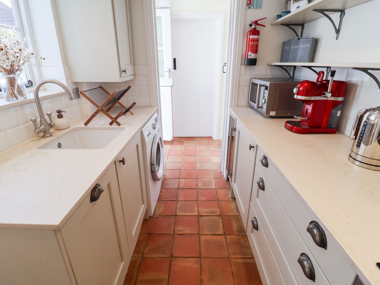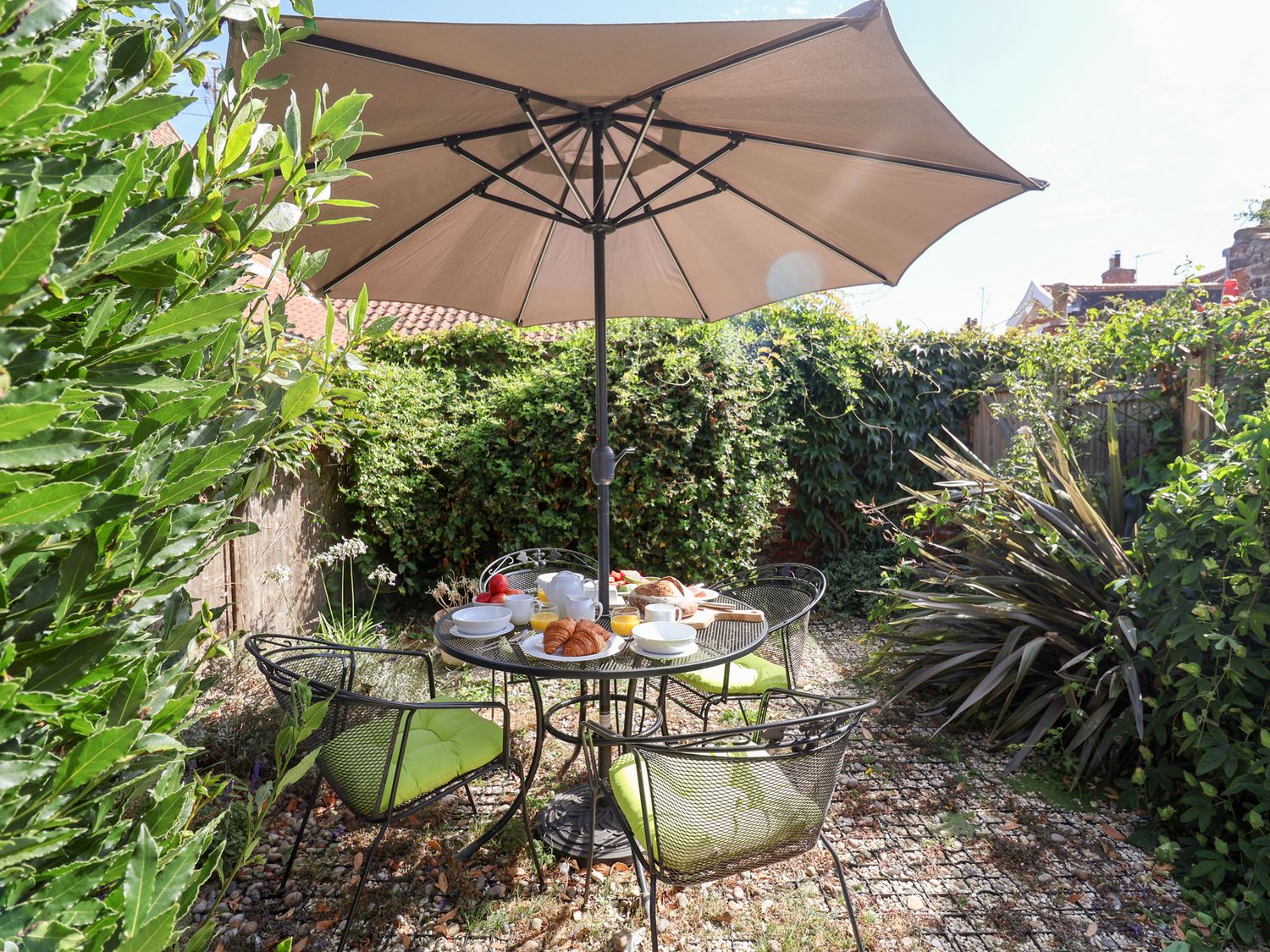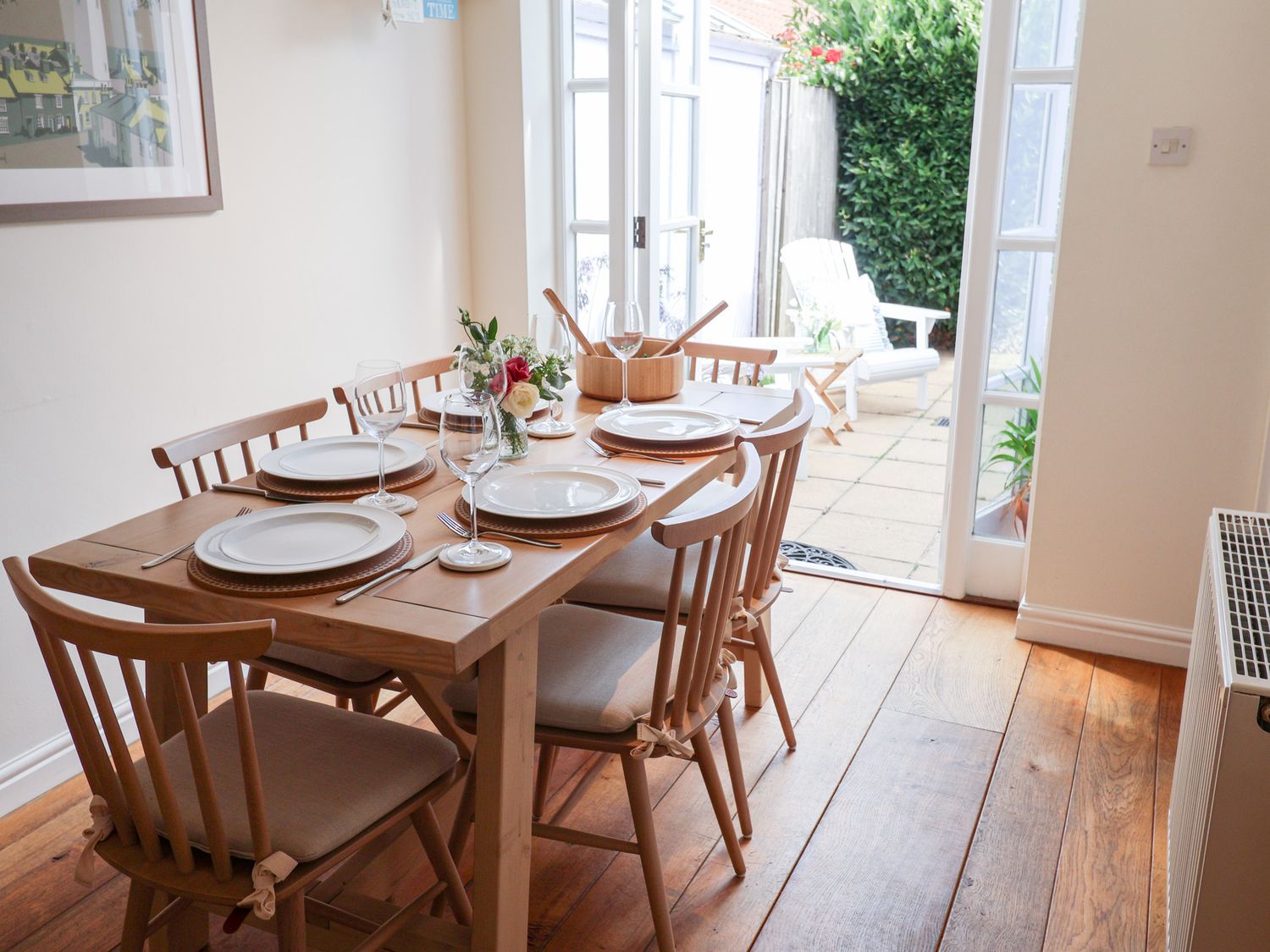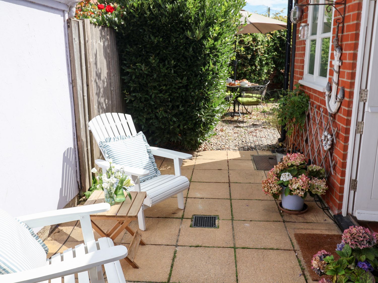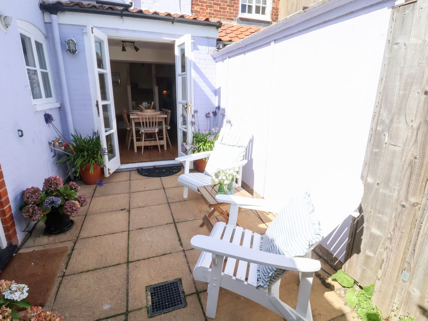 "Victoria Cottage (4 East Green) consists of a kitchen with electric oven and grill, induction hob, microwave, fridge with icebox, dishwasher, washing machine, wine fridge, coffee machine, a dining room with seating for five guests and a sitting room with woodburning stove and a Smart TV. The bedrooms consists of a king-size with en-suite WC, a single, and a double pull-out bed, serviced by a ground-floor bathroom. Outside there is patio with furniture and unallocated roadside parking. Within 0.3 miles, you will find a shop, and within 0.1, a pub. Please note that this is a non-smoking property. Two well-behaved dogs welcome downstairs. WiFi, fuel, power, bed linen and towels are all included in the price. Victoria Cottage (4 East Green) a lovely base for families in Suffolk. Note: If you wish a travel cot and highchair to be available please request at time of booking. Note: Sorry, no unaccompanied teenagers. Note: 4 East Green is a central property in close proximity to the Adnams Brewery. Note: The single is only suitable for children under 10. "