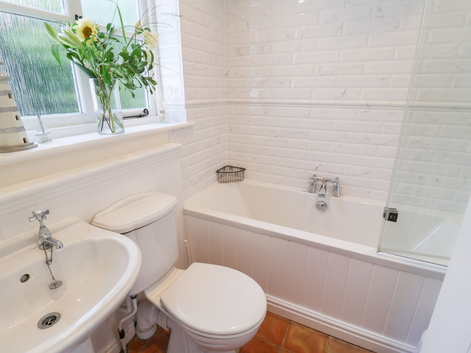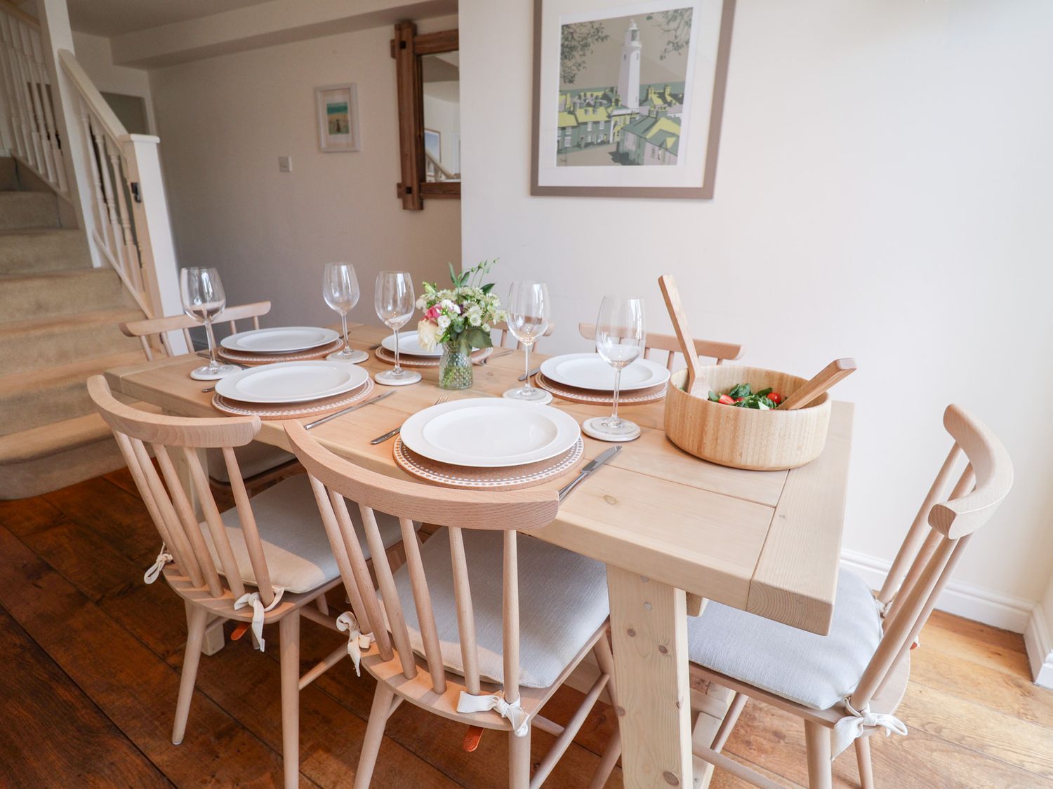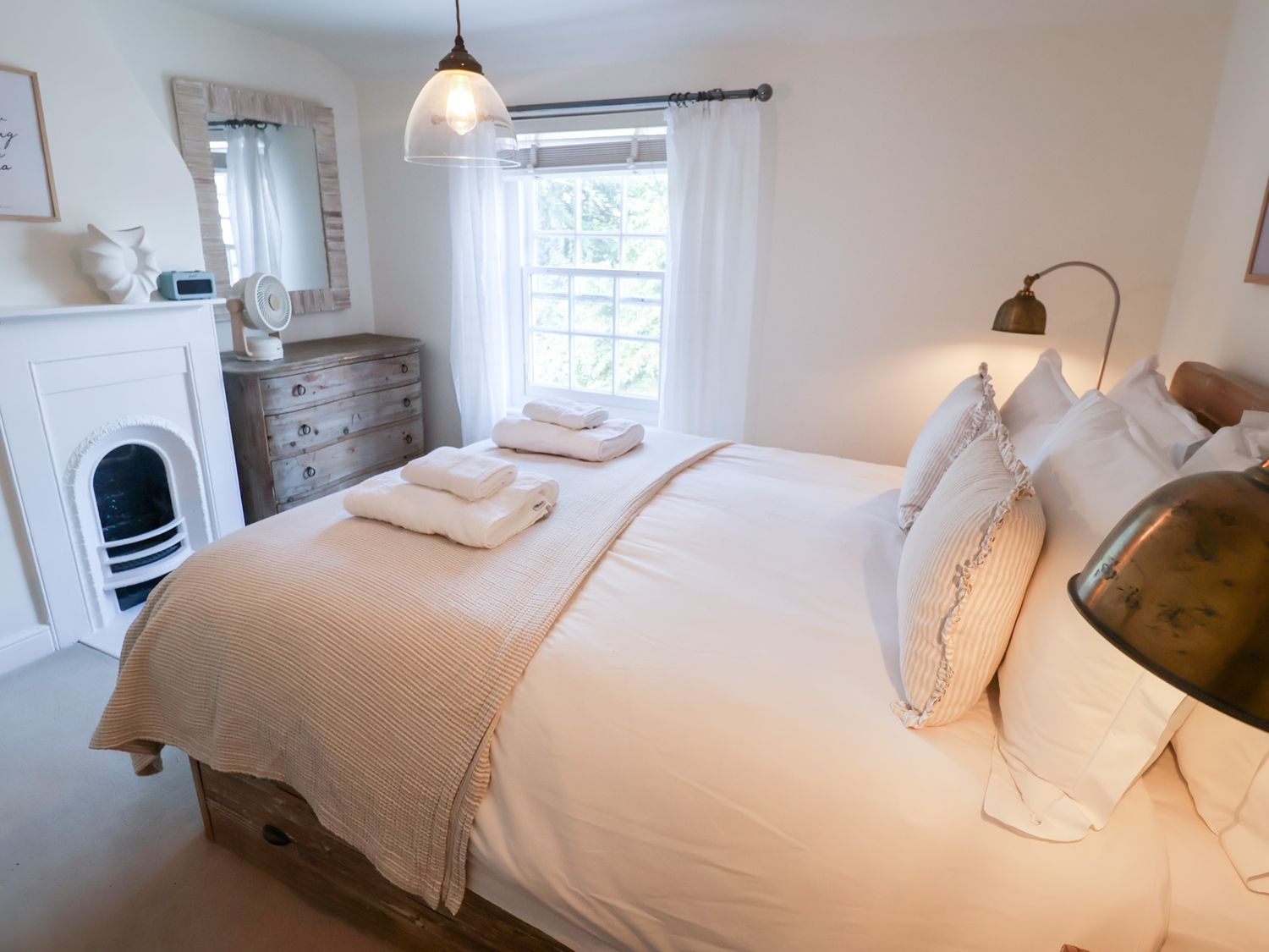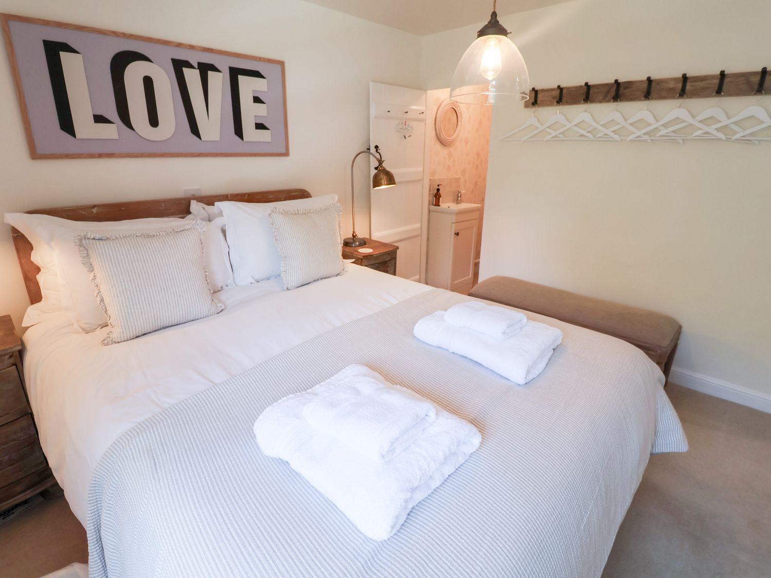 "Three bedrooms: 1 x king-size with en-suite with basin and WC, 1 x King (can be set as a twin on request), 1 x single, please note the single is only suitable for children under 10. Ground-floor bathroom with bath, shower over, basin and WC. Kitchen. Dining room. Sitting room with woodburning stove"