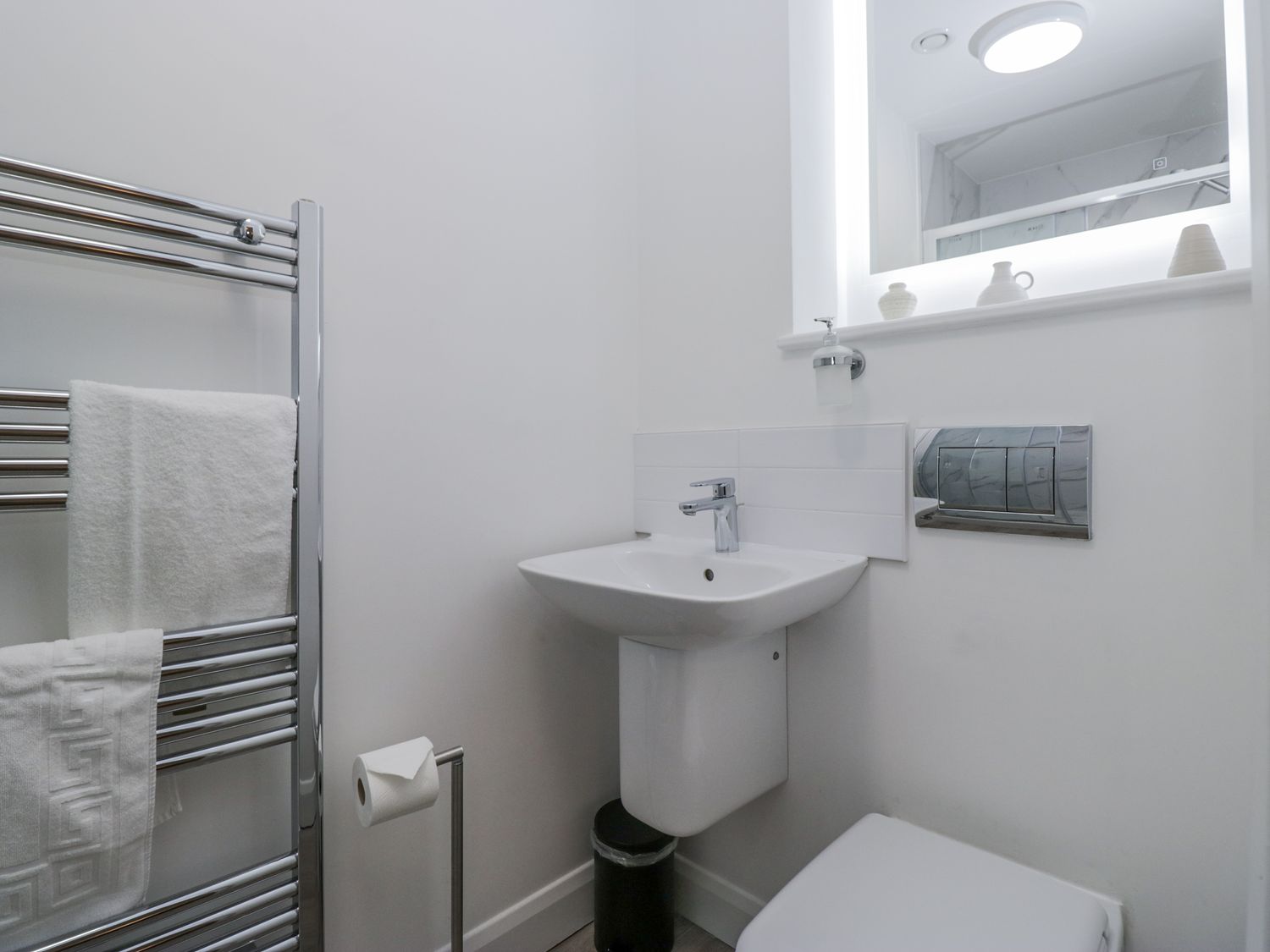 "First floor apartment, studio-style layout with double bed and sofa bed (sleeping up to 3 adults max), kitchenette, dining area and sitting area. Shower room with walk-in shower, basin and WC"