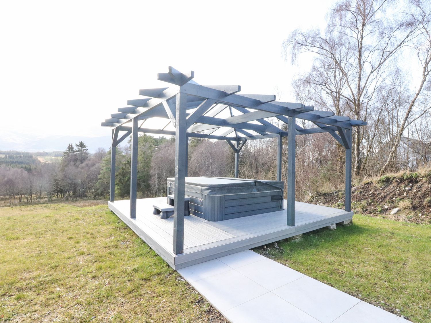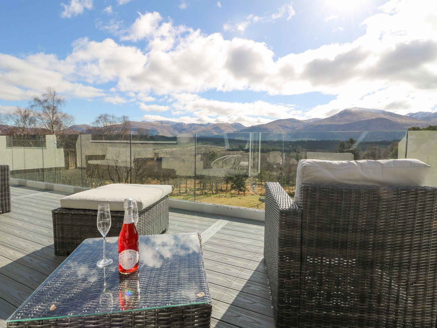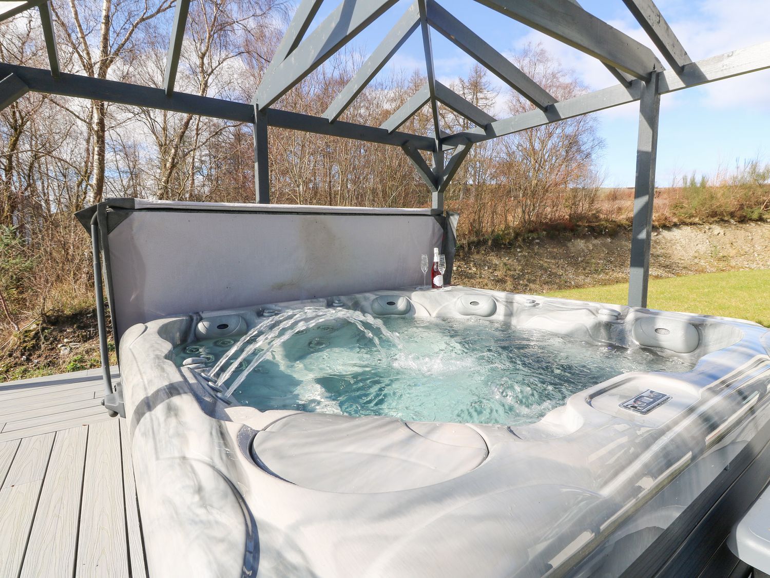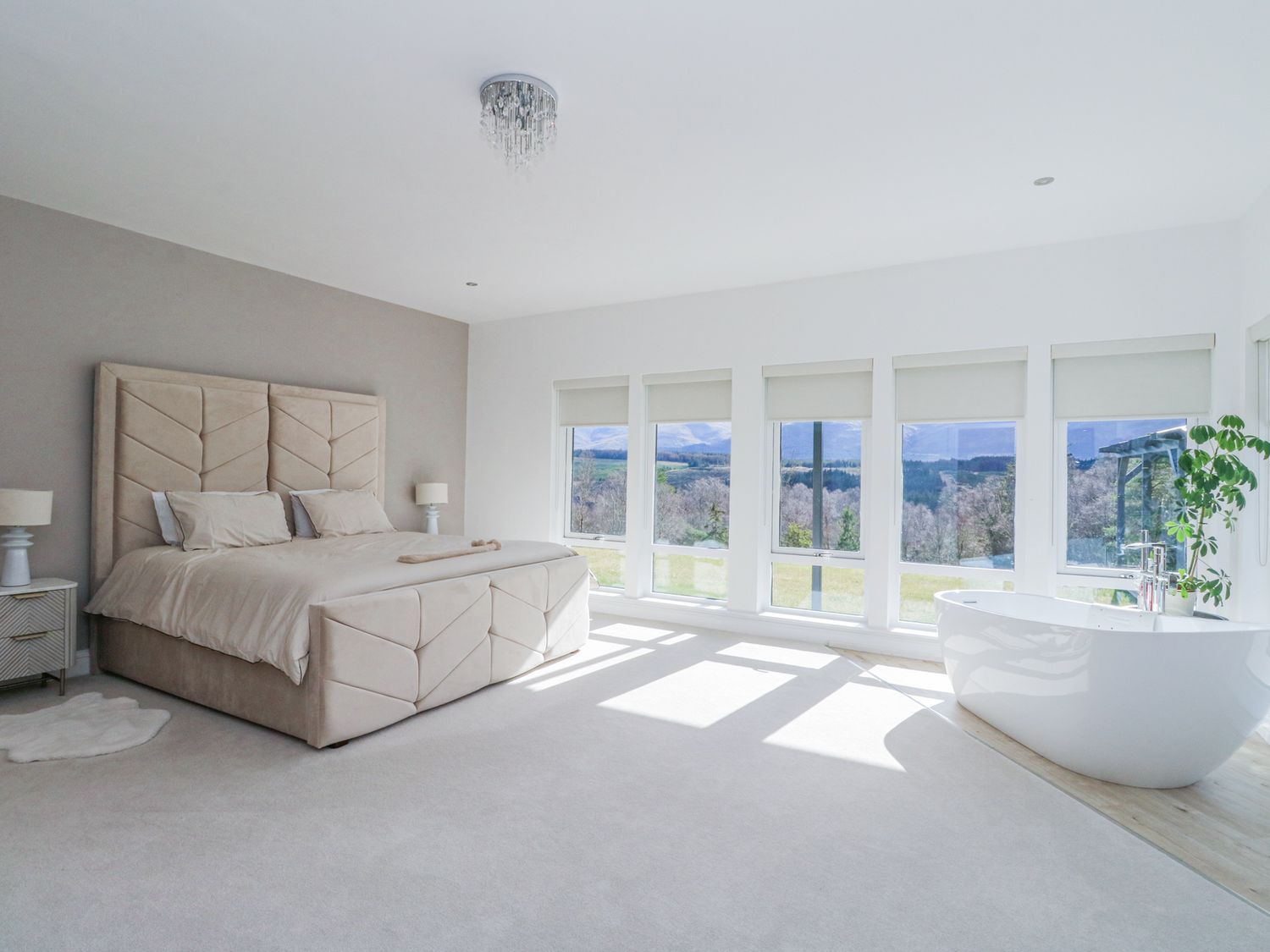 "Macgregor Ranch features a spacious open-plan living area with kitchen (electric oven/hob, microwave, fridge/freezer, dishwasher, wine chiller), dining for 10, sitting area with Smart TV, woodburning stove, and balcony. There's also a separate kitchen/diner, utility (washer/dryer), and sitting room with Smart TV. Bedrooms include: ground floor ÔÇô 2 super-king with en-suites, 1 king with en-suite; first floor ÔÇô 1 super-king with en-suite, 1 king with TV and en-suite. WiFi, fuel, power, bed linen, and towels included. Outside: lawn, patio with furniture, hot tub, and parking for 8 cars. No pets/smoking. Shop 2.2 miles, pub 2.3 miles. Note: No access to games room. Max stay 4 nights. Holiday use only ÔÇô no worker/contractor, stag, hen, or similar bookings. Note: This property has a Good Housekeeping bond of -ú600."