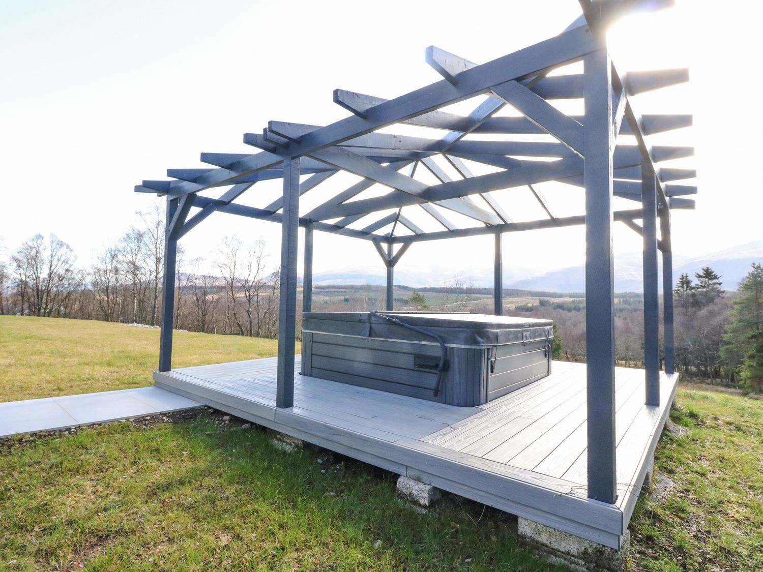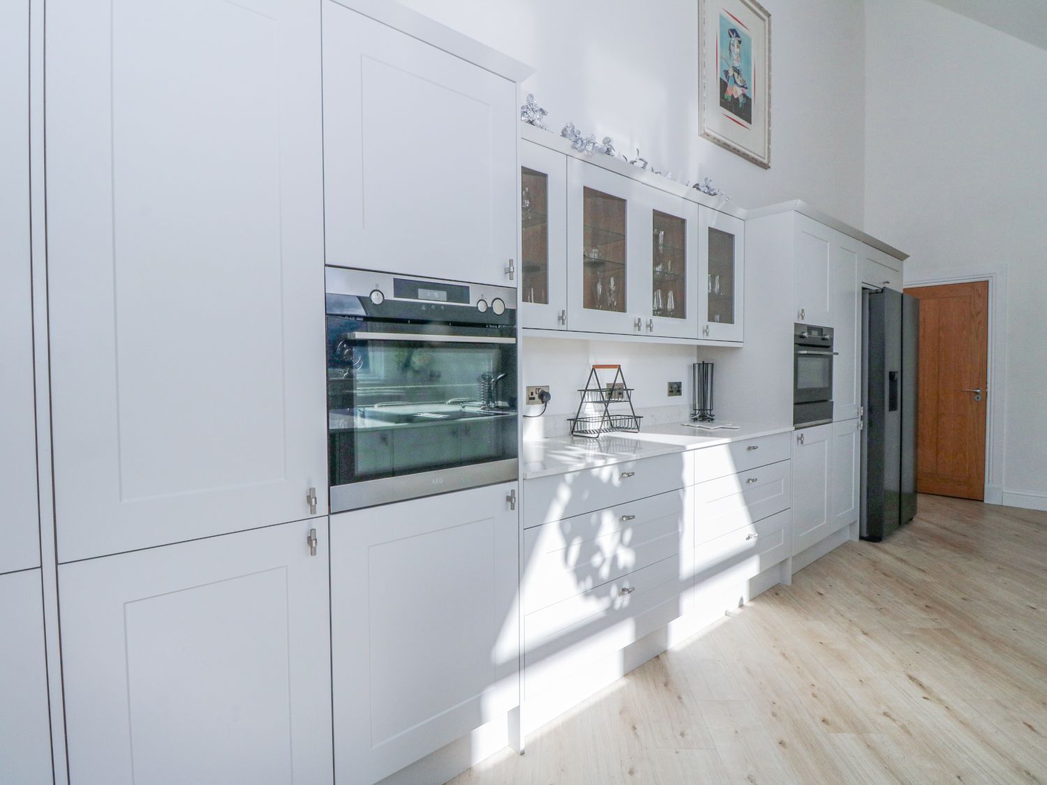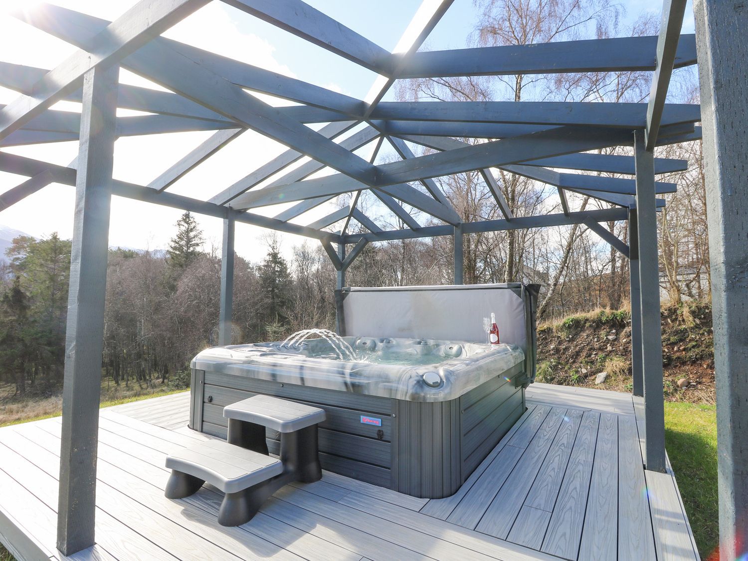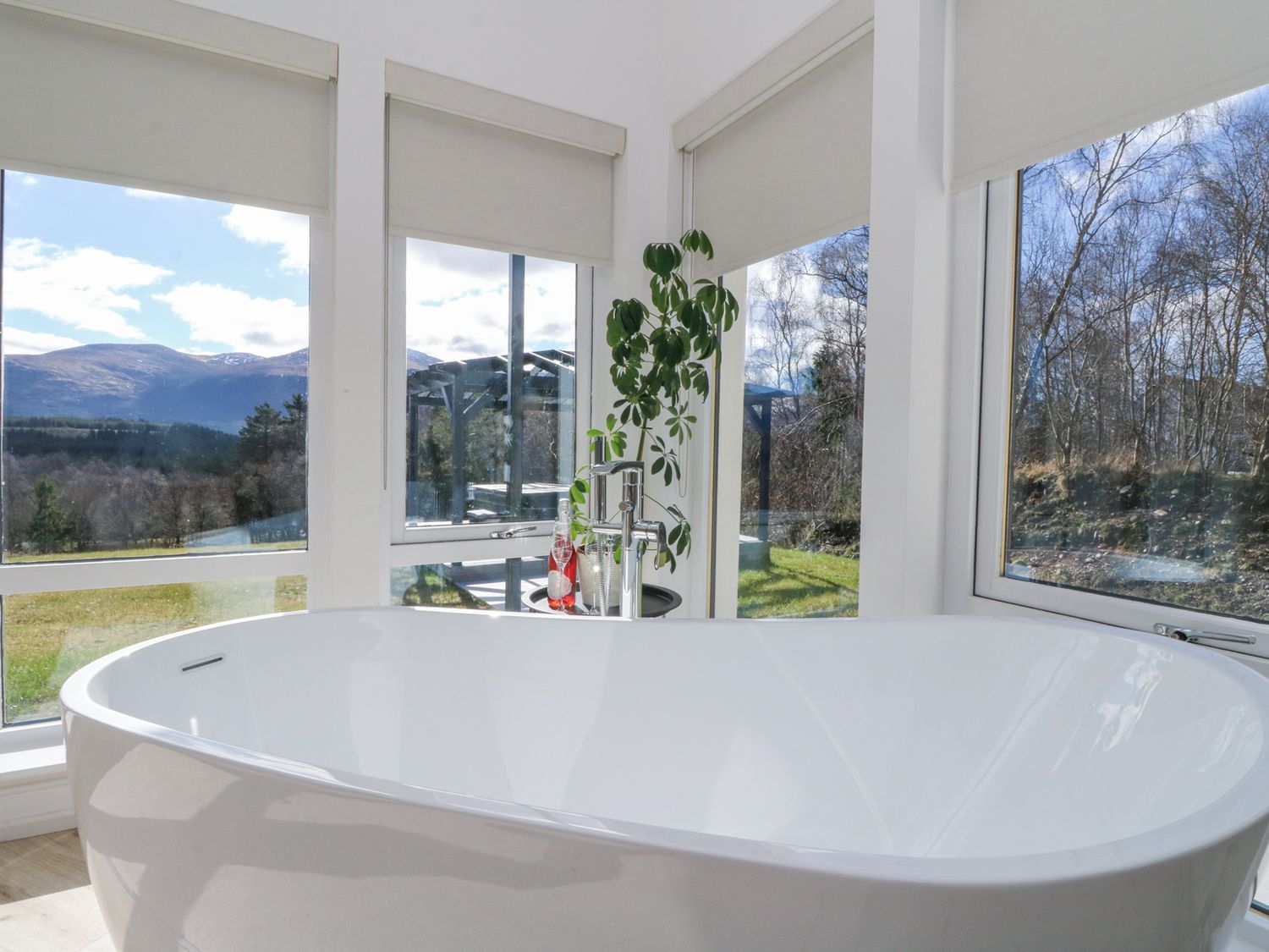 "Macgregor Ranch features a spacious open-plan living area with kitchen (electric oven/hob, microwave, fridge/freezer, dishwasher, wine chiller), dining for 10, sitting area with Smart TV, woodburning stove, and balcony. There's also a separate kitchen/diner, utility (washer/dryer), and sitting room with Smart TV. Bedrooms include: ground floor ÔÇô 2 super-king with en-suites, 1 king with en-suite; first floor ÔÇô 1 super-king with en-suite, 1 king with TV and en-suite. WiFi, fuel, power, bed linen, and towels included. Outside: lawn, patio with furniture, hot tub, and parking for 8 cars. No pets/smoking. Shop 2.2 miles, pub 2.3 miles. Note: No access to games room. Max stay 4 nights. Holiday use only ÔÇô no worker/contractor, stag, hen, or similar bookings. Note: This property has a Good Housekeeping bond of -ú600."