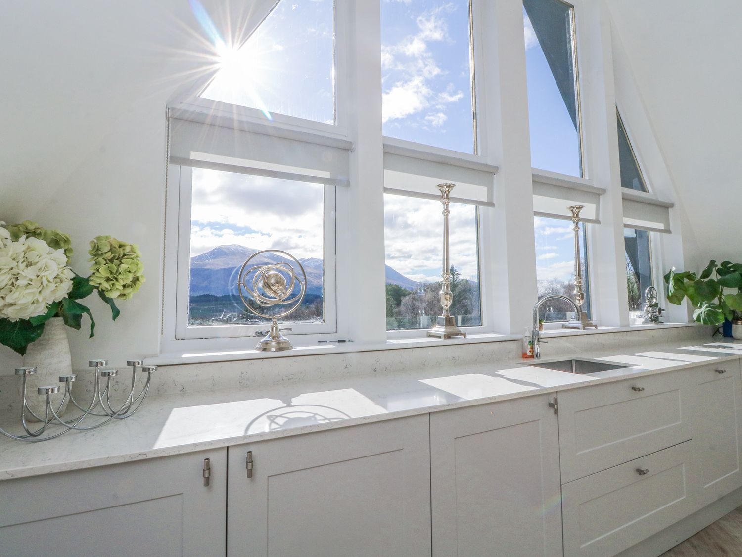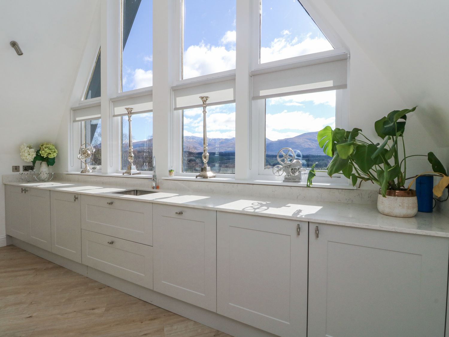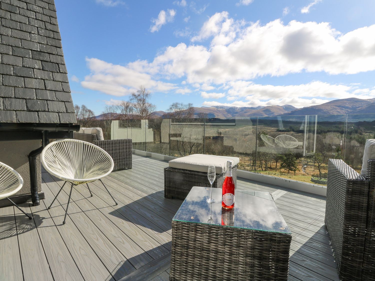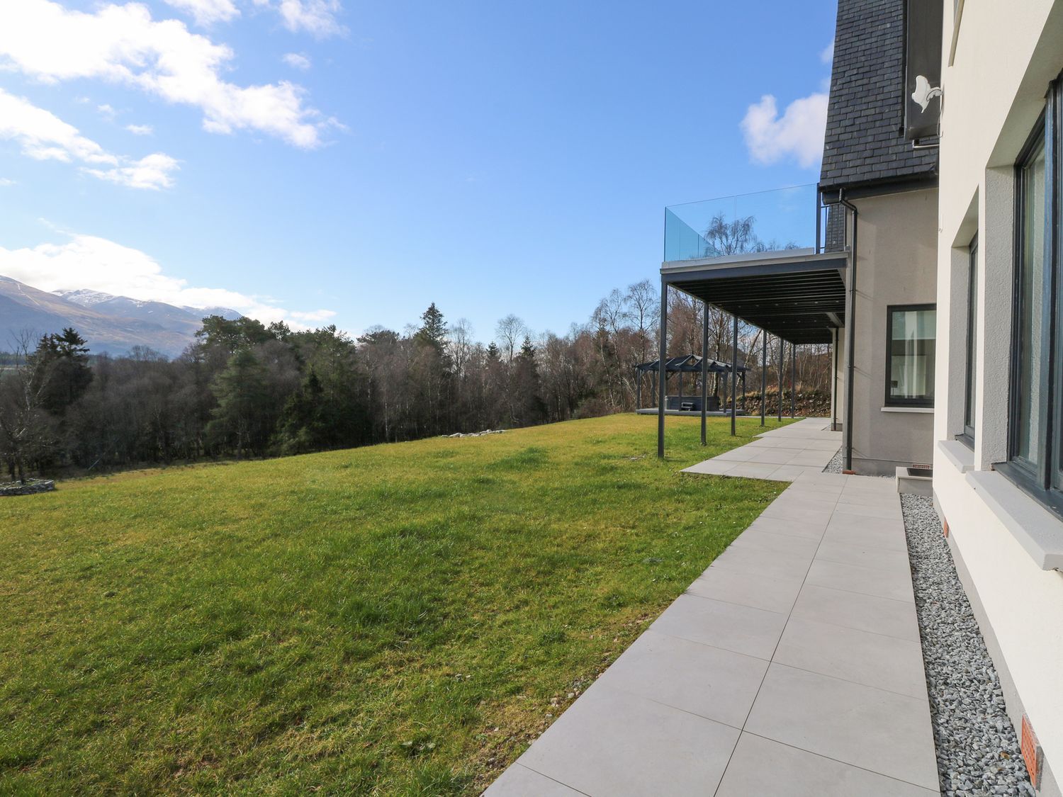 "Macgregor Ranch features a spacious open-plan living area with kitchen (electric oven/hob, microwave, fridge/freezer, dishwasher, wine chiller), dining for 10, sitting area with Smart TV, woodburning stove, and balcony. There's also a separate kitchen/diner, utility (washer/dryer), and sitting room with Smart TV. Bedrooms include: ground floor ÔÇô 2 super-king with en-suites, 1 king with en-suite; first floor ÔÇô 1 super-king with en-suite, 1 king with TV and en-suite. WiFi, fuel, power, bed linen, and towels included. Outside: lawn, patio with furniture, hot tub, and parking for 8 cars. No pets/smoking. Shop 2.2 miles, pub 2.3 miles. Note: No access to games room. Max stay 4 nights. Holiday use only ÔÇô no worker/contractor, stag, hen, or similar bookings. Note: This property has a Good Housekeeping bond of -ú600."