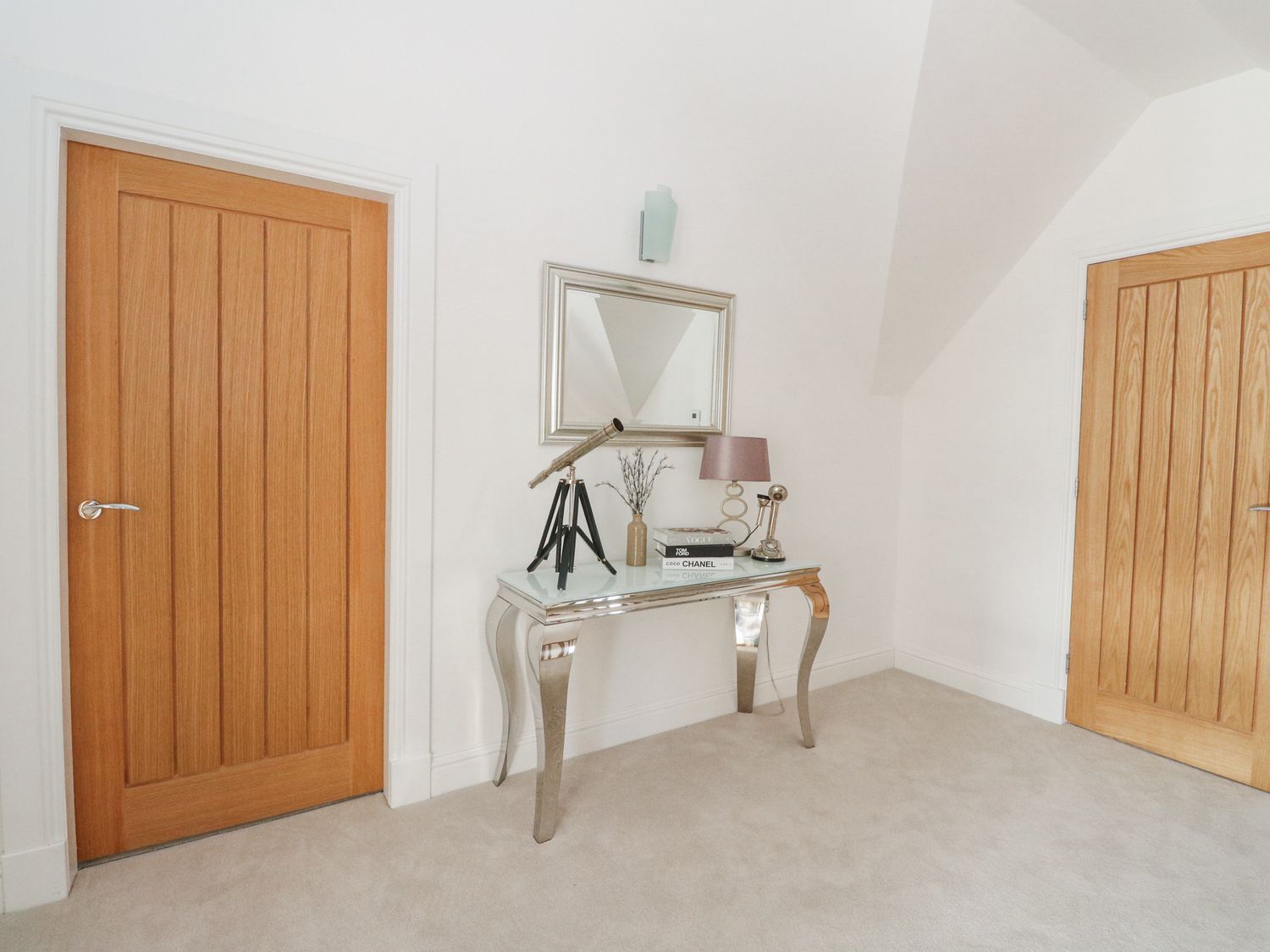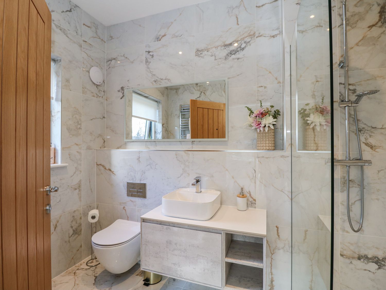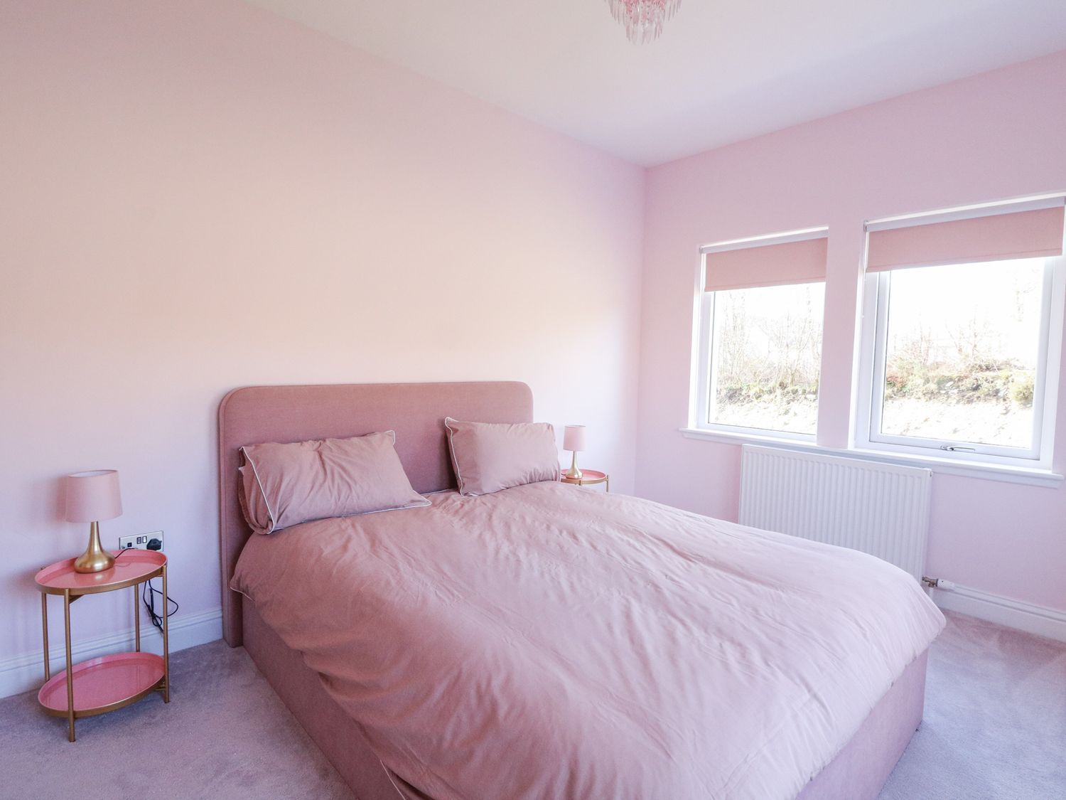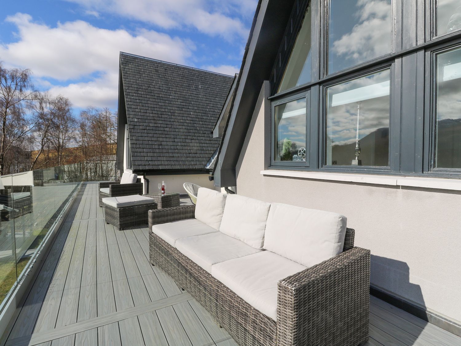 "Reverse-level. Five bedrooms. 1 x ground-floor super-king-size with Smart TV, woodburning stove, free-standing bath, and en-suite walk-in shower, basin, heated towel rail, and WC, 1 x ground-floor super-king-size with en-suite walk-in shower, basin, heated towel rail, and WC., 1 x ground-floor king-size with en-suite walk-in shower, heated towel rail, basin, and WC, 1 x super-king-size with en-suite walk-in shower, heated towel rail, basin, and WC, 1 x king-size with TV and en-suite with bath, shower over, basin, and WC. Cloakroom with basin and WC. 2 x first-floor cloakroom with basin and WC. Kitchen/diner. Utility. Sitting room. First-floor open-plan living space with kitchen, dining area, and sitting area with woodburning stove and access to balcony with furniture. Please note this property only accepts booking checking in on a Saturday for bookings of a week long. "