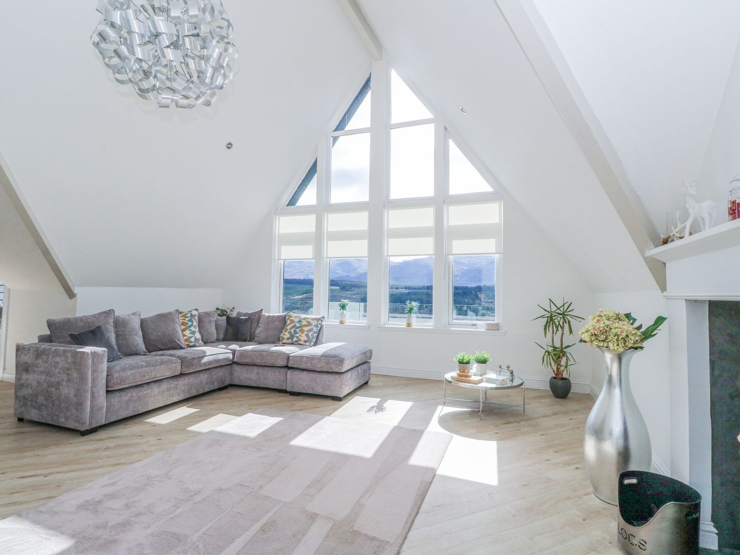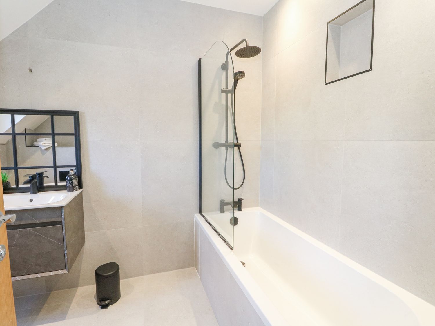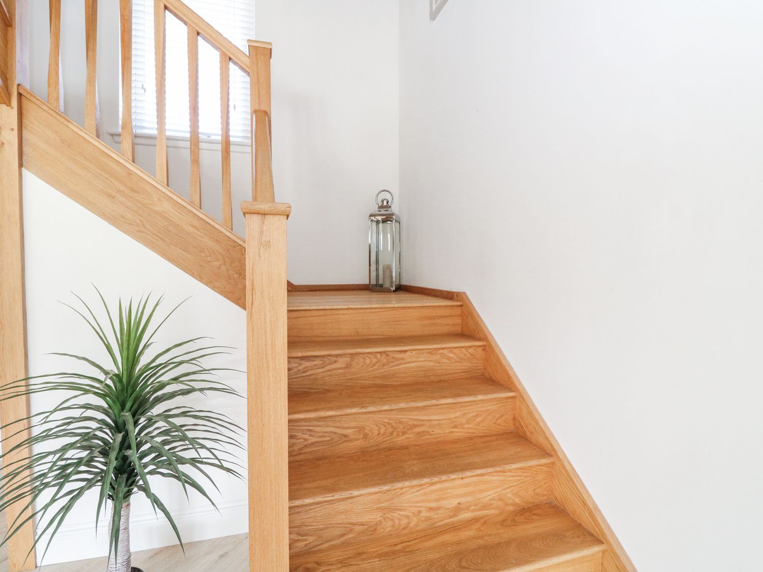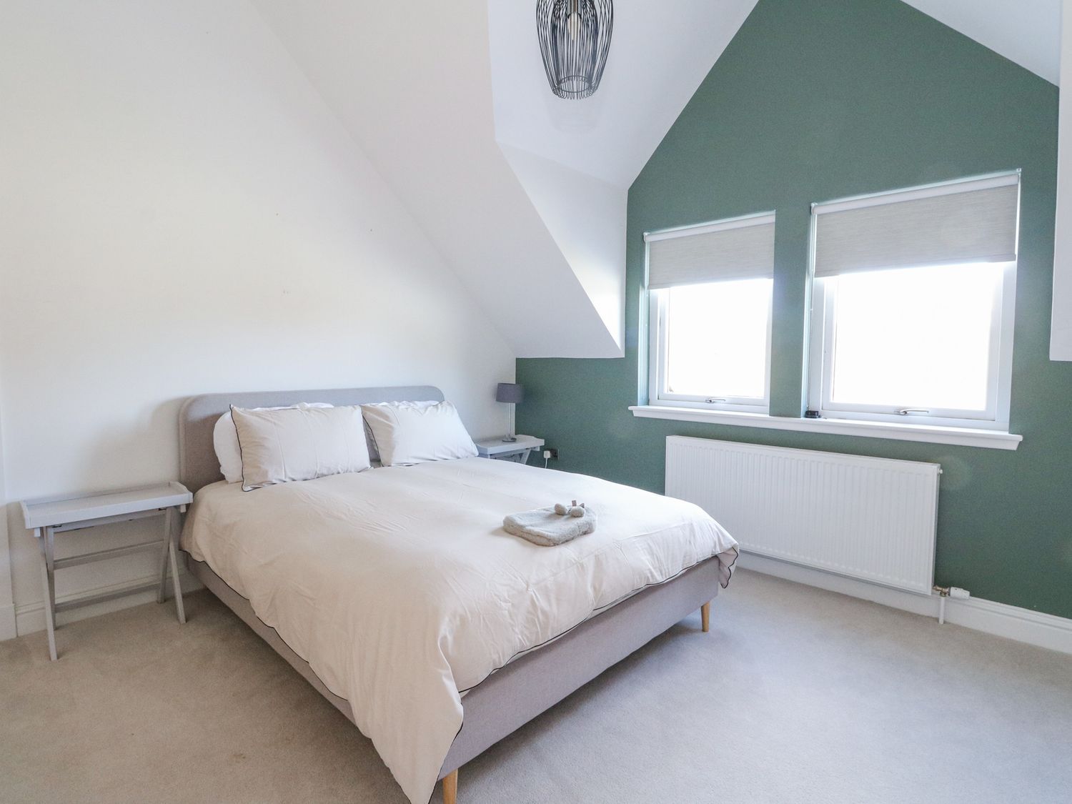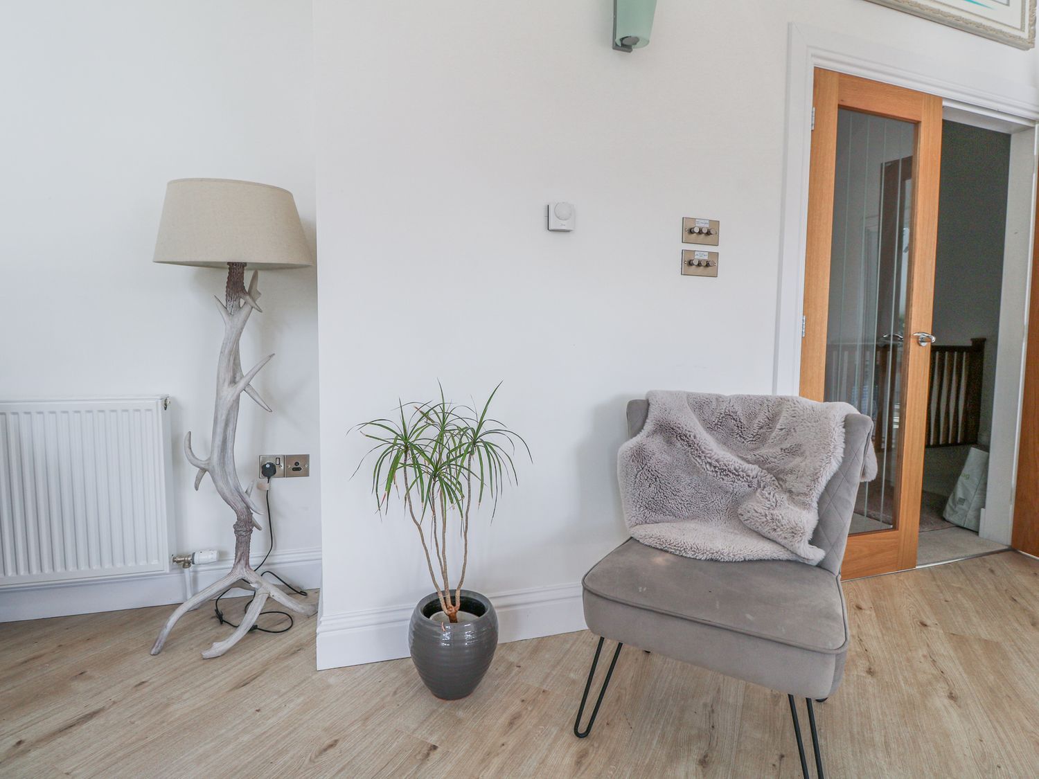 "Reverse-level. Five bedrooms. 1 x ground-floor super-king-size with Smart TV, woodburning stove, free-standing bath, and en-suite walk-in shower, basin, heated towel rail, and WC, 1 x ground-floor super-king-size with en-suite walk-in shower, basin, heated towel rail, and WC., 1 x ground-floor king-size with en-suite walk-in shower, heated towel rail, basin, and WC, 1 x super-king-size with en-suite walk-in shower, heated towel rail, basin, and WC, 1 x king-size with TV and en-suite with bath, shower over, basin, and WC. Cloakroom with basin and WC. 2 x first-floor cloakroom with basin and WC. Kitchen/diner. Utility. Sitting room. First-floor open-plan living space with kitchen, dining area, and sitting area with woodburning stove and access to balcony with furniture. Please note this property only accepts booking checking in on a Saturday for bookings of a week long. "