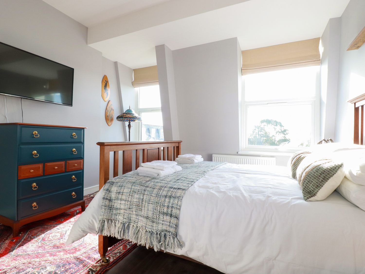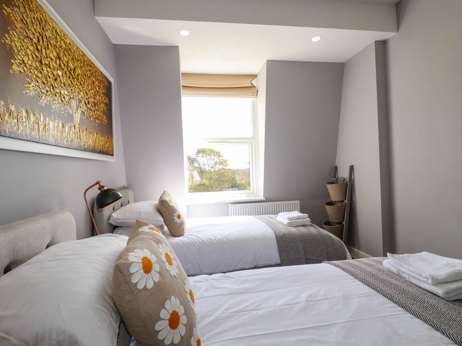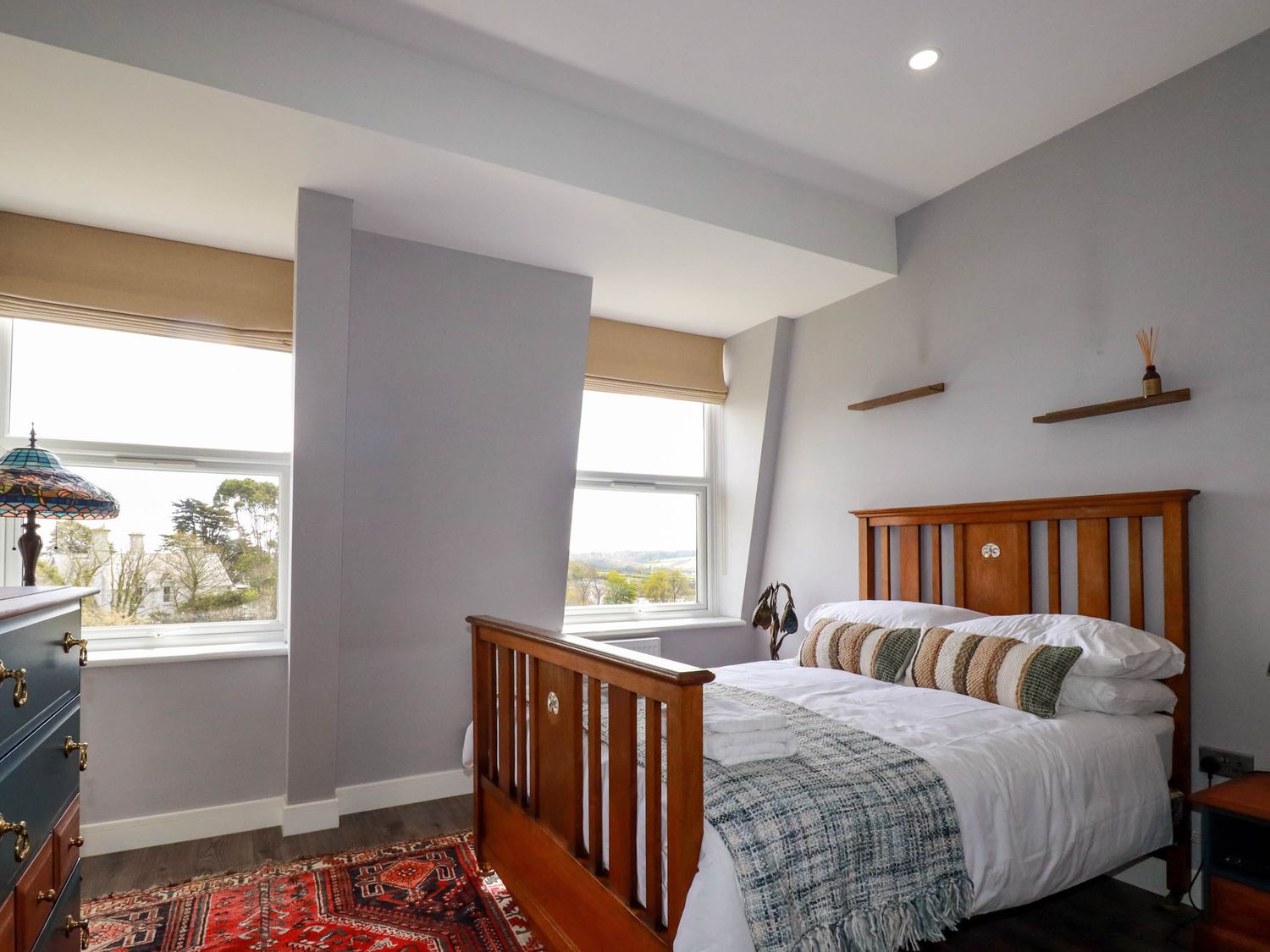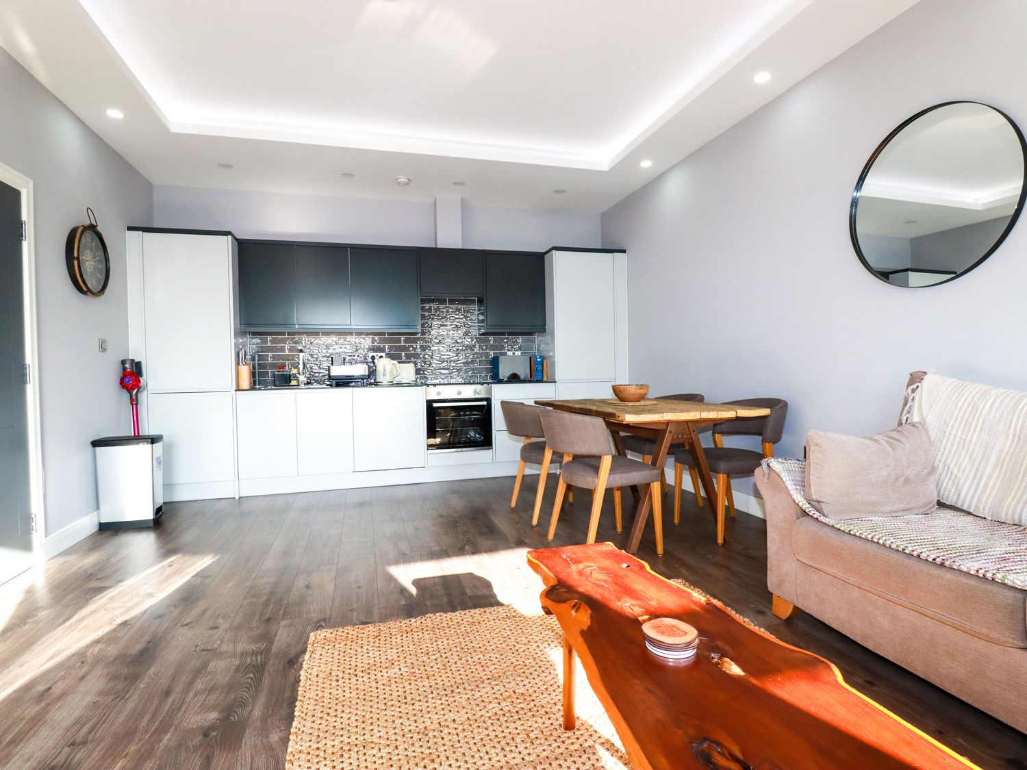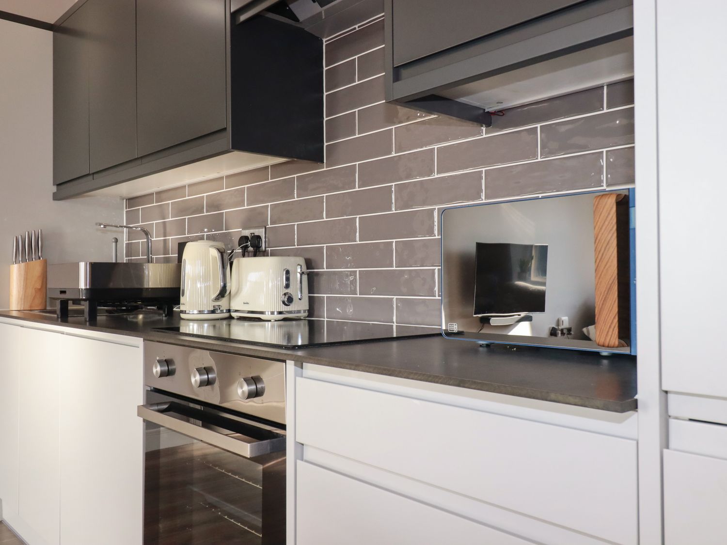 "Priory, a second-floor apartment, consists of an open-plan living space with oven, electric hob, microwave, fridge/freezer, dishwasher, kettle, toaster, dining seating for four people, and sitting area with TV. The bedrooms consist of a double with TV and a twin, serviced by a bathroom. You'll find a shop and pub in 0.3 miles, and a river in 0.9 miles. WiFi, fuel, power, bed linen, and towels are included in the rent. Outside, there is designated off-road parking. he apartment can be accessed either by a lift or the staircase. Sorry, no pets and no smoking. Your stay at Priory is sure to be a memorable one. Please note: There is step-free access from the car park to the property."