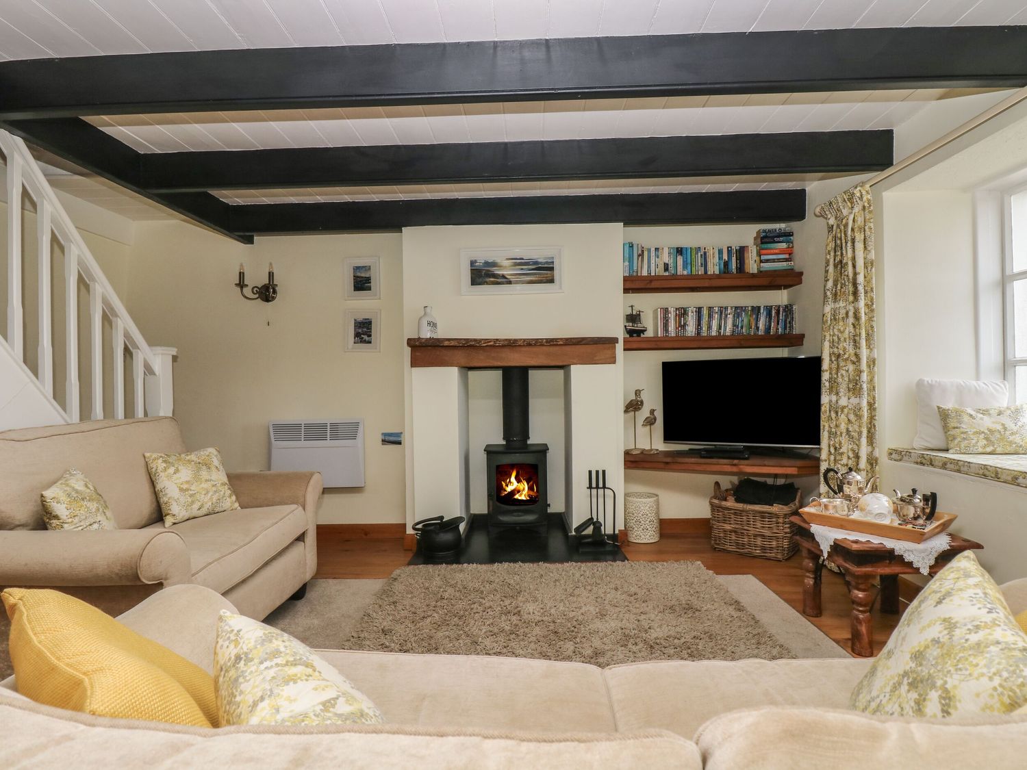 "Two bedrooms: 1 x king size, 1 x single which has a pull out bed beneath. Bathroom with short bath, walk in shower, basin and WC. Kitchen. Sitting room with wood burning stove and dining area"