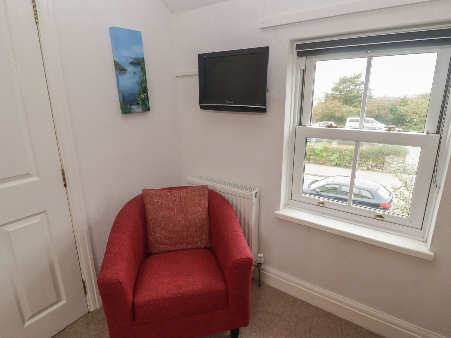"Two bedrooms: 1 x king-size with TV, 1 x single. Bathroom with bath, shower over, basin, and WC. Kitchen/diner. Sitting room with open fire"