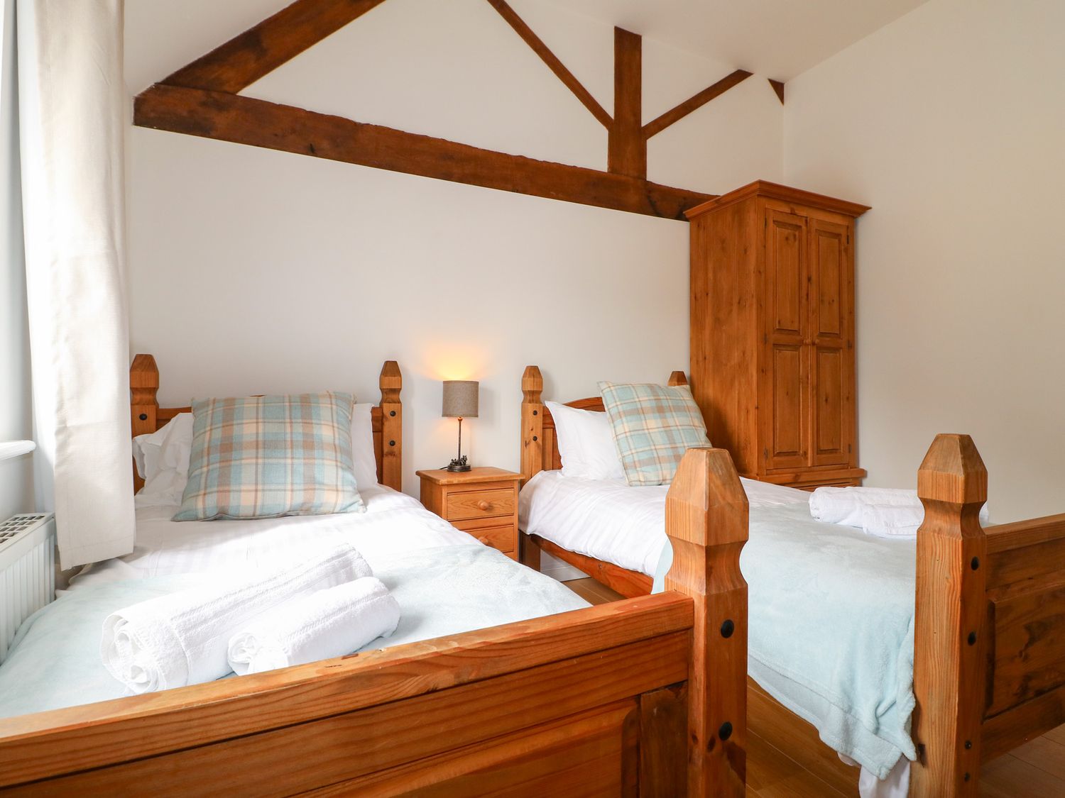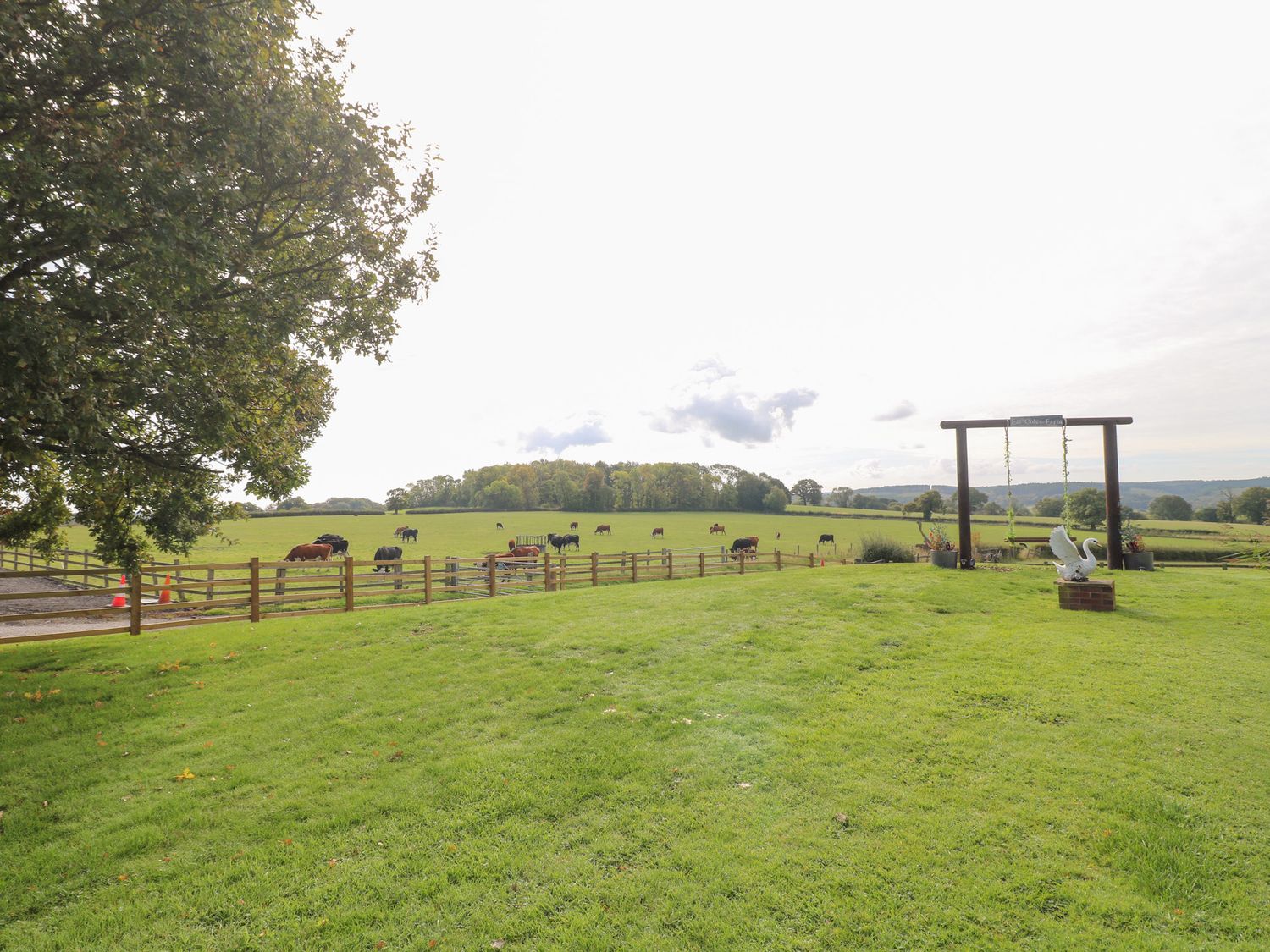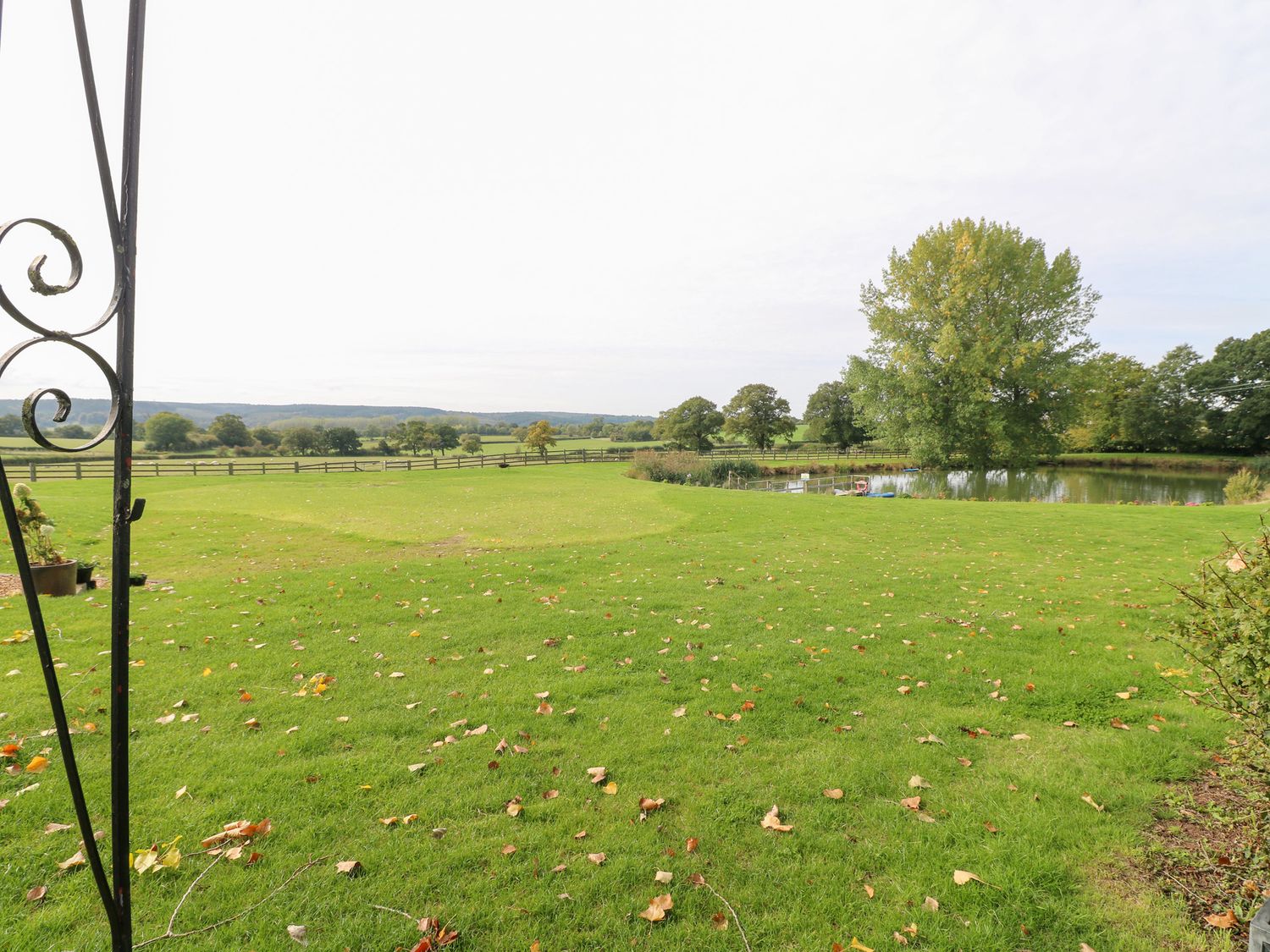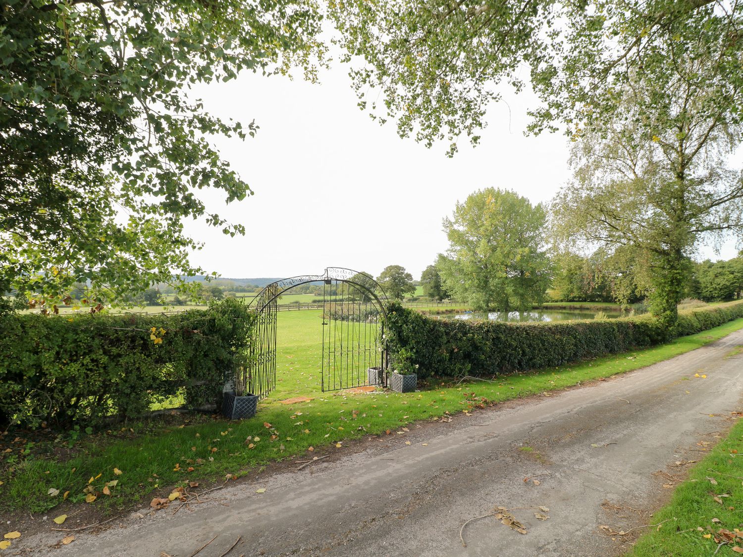 "Hereford Lodge, a single-storey barn conversion has an open-plan kitchen, dining area and sitting area, a double bed, a twin, and a shower room. Appliances consist of an electric oven and hob, microwave, fridge and washing machine, and a Smart TV. Outside there is a private, front patio with furniture, access to the owner's grounds, and off-road parking for two cars. Two well-behaved dogs welcomed, but sorry, no smoking. WiFi, fuel, power, bed linen and towels are all included in the price, along with a travel cot and highchair. You'll find a shop in 1.9 miles and a pub in 1.5 miles. Enjoy rural Staffordshire at Hereford Lodge. Note: Due to the small lakes, children must be closely supervised at all times. Note: Single-side access to the double bed; please be aware."