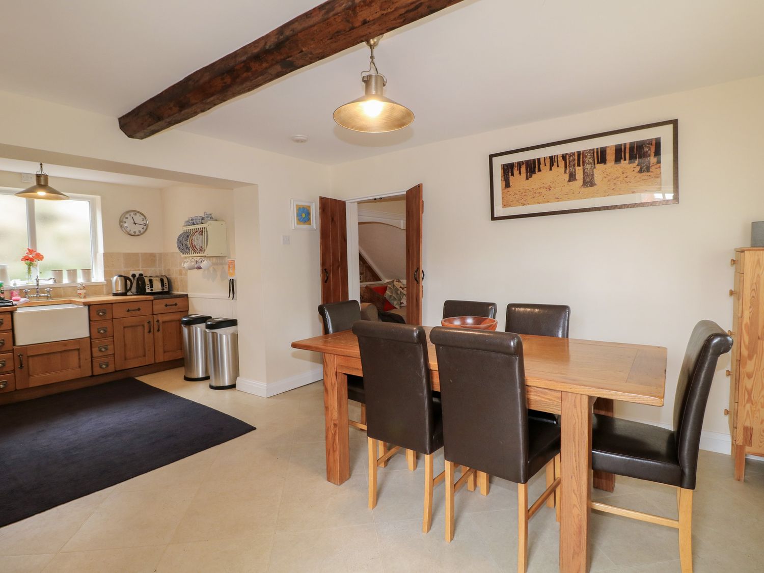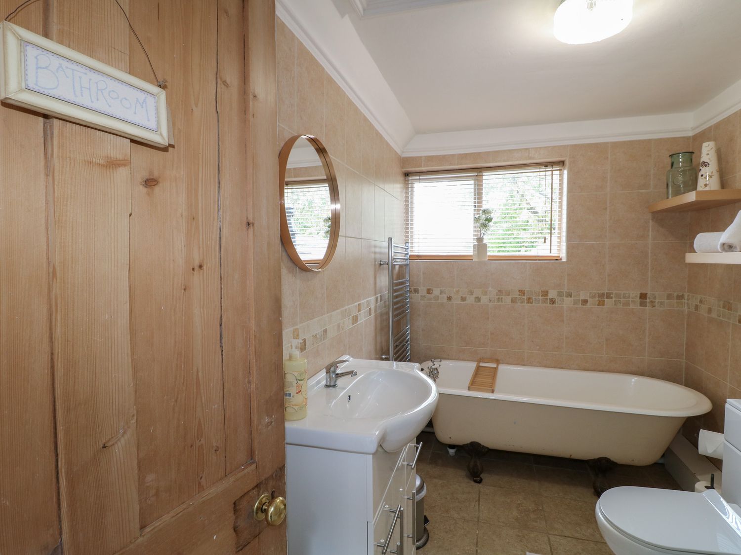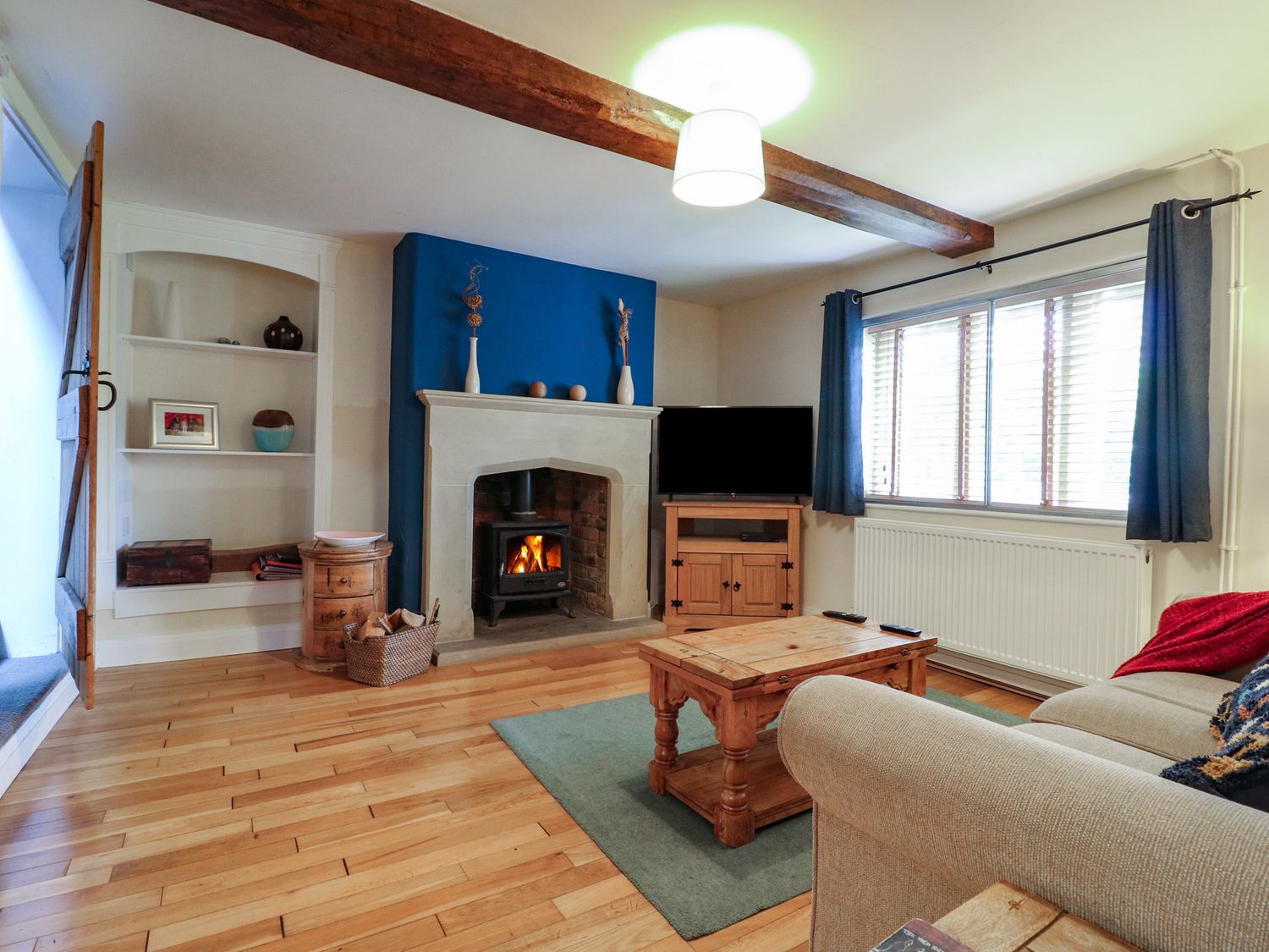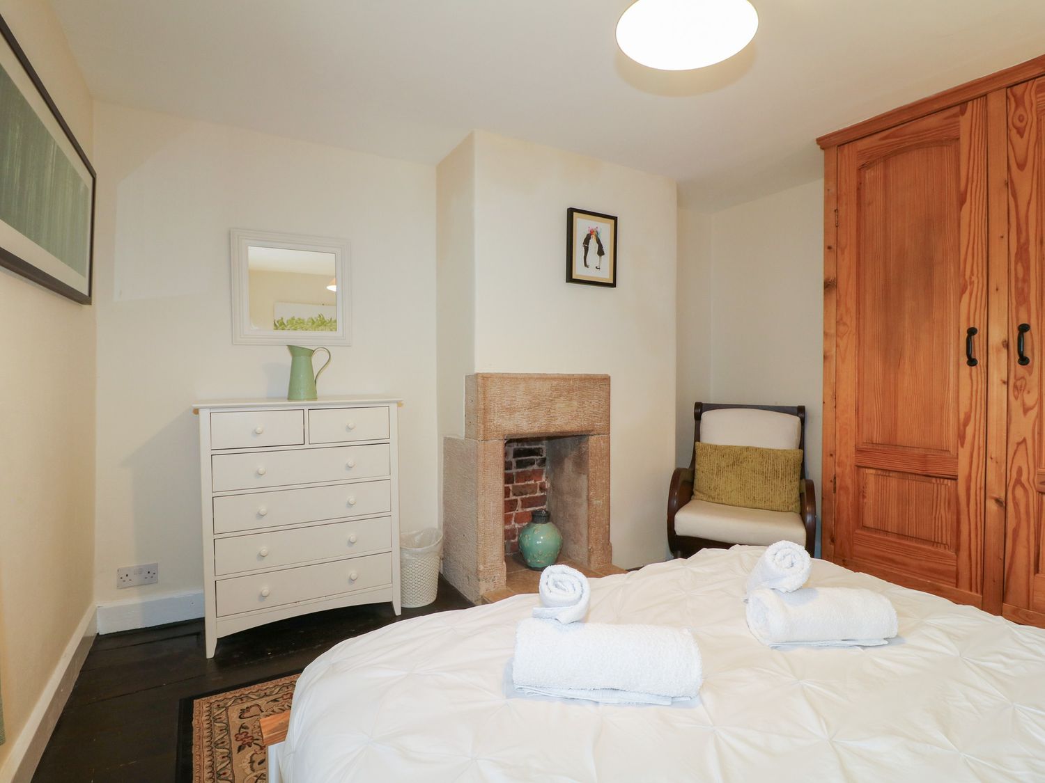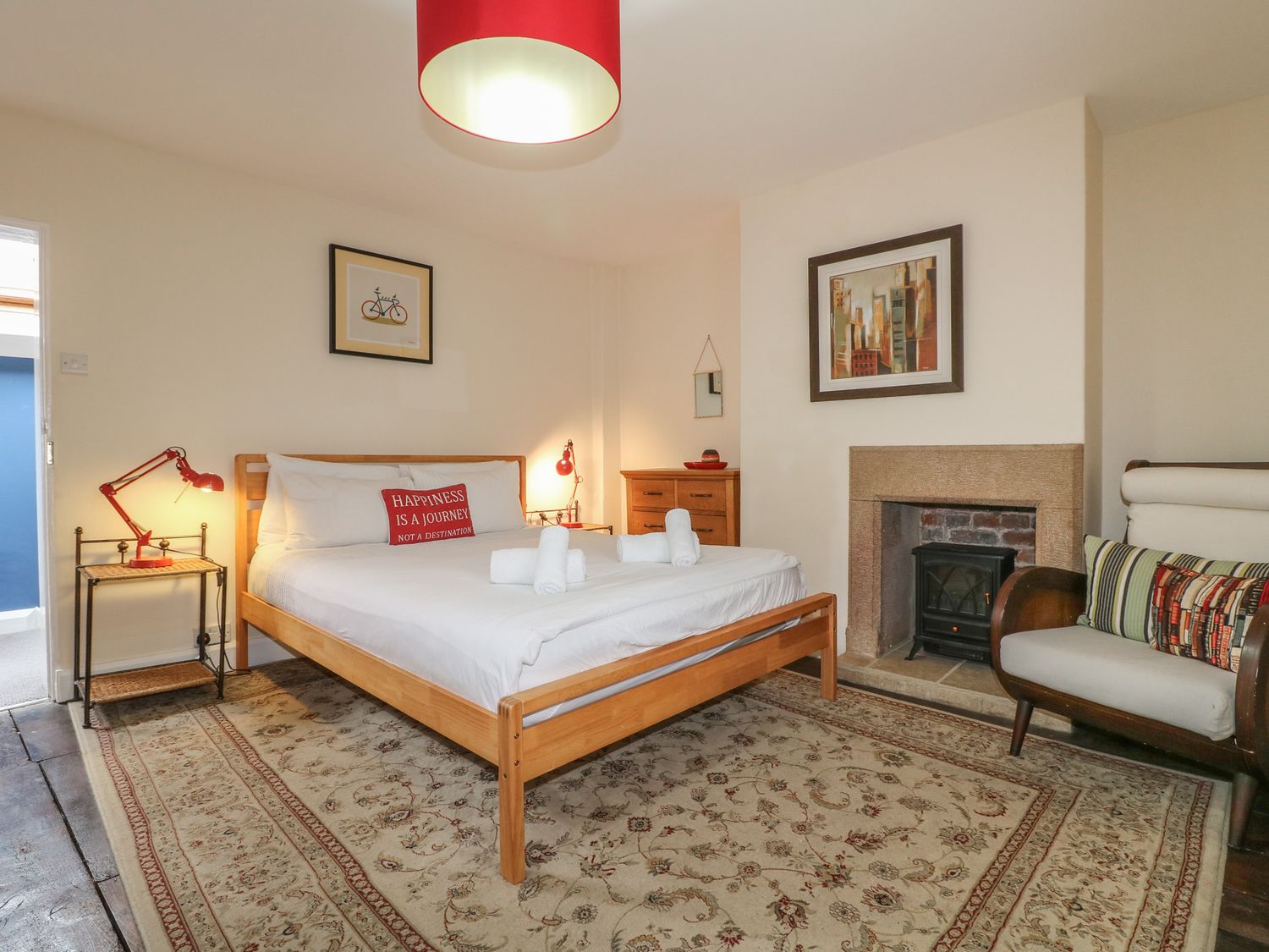 "Over three floors. Three bedrooms: 1 x king-size double with woodburner, 1 x king-size double with stairs leading to 1 x second floor attic twin with 1 single and 1 cabin-style bed. Bathroom with freestanding bath, separate shower, basin and WC. Kitchen with dining area. Sitting room with woodburner."