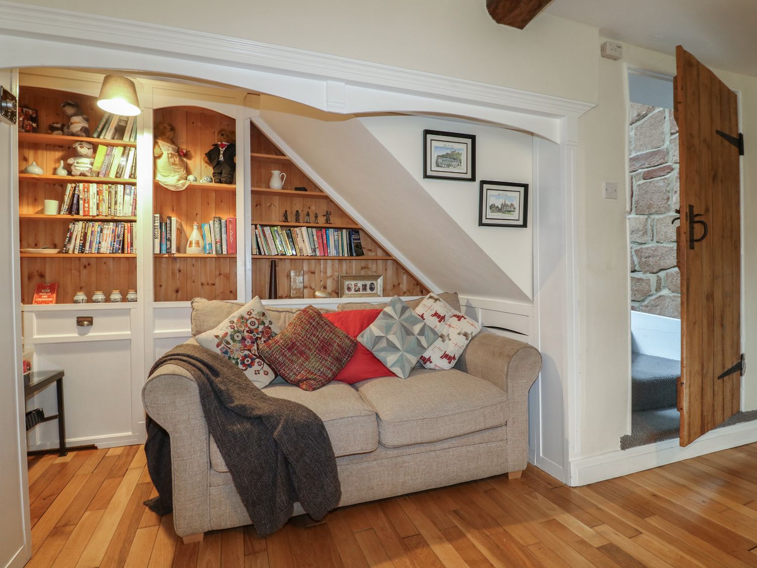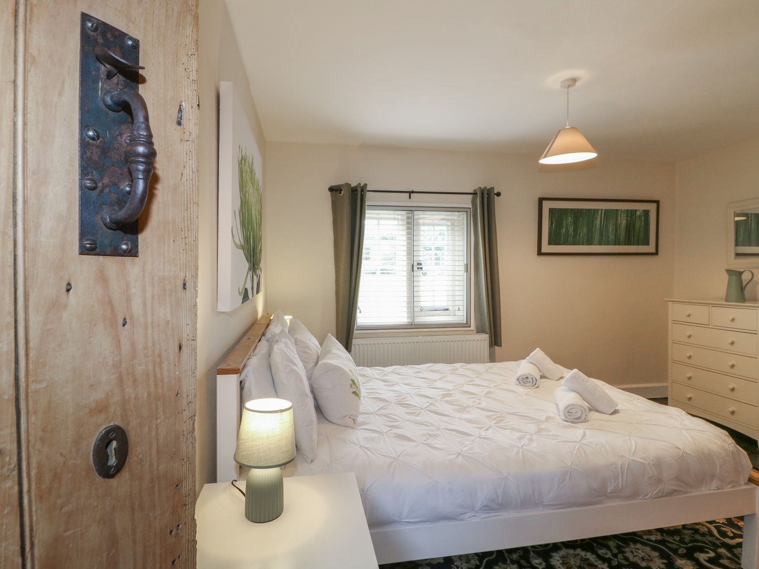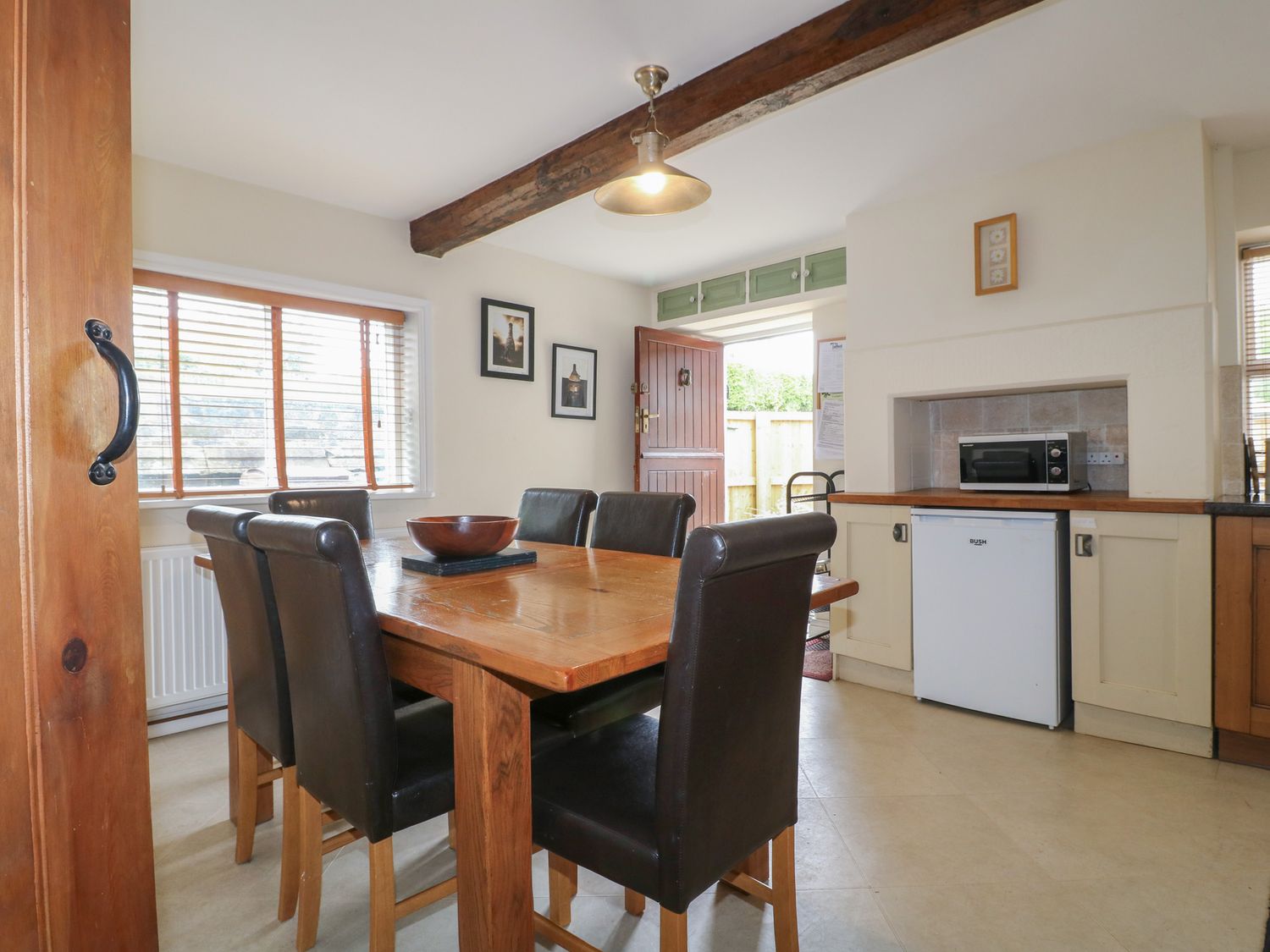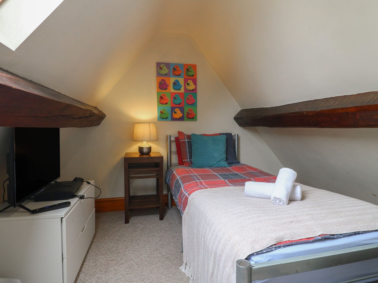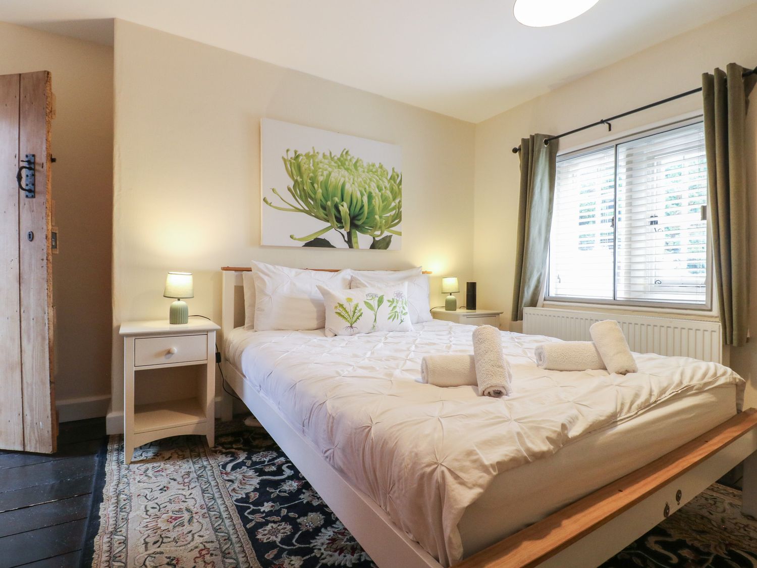 "Over three floors. Three bedrooms: 1 x king-size double with woodburner, 1 x king-size double with stairs leading to 1 x second floor attic twin with 1 single and 1 cabin-style bed. Bathroom with freestanding bath, separate shower, basin and WC. Kitchen with dining area. Sitting room with woodburner."
