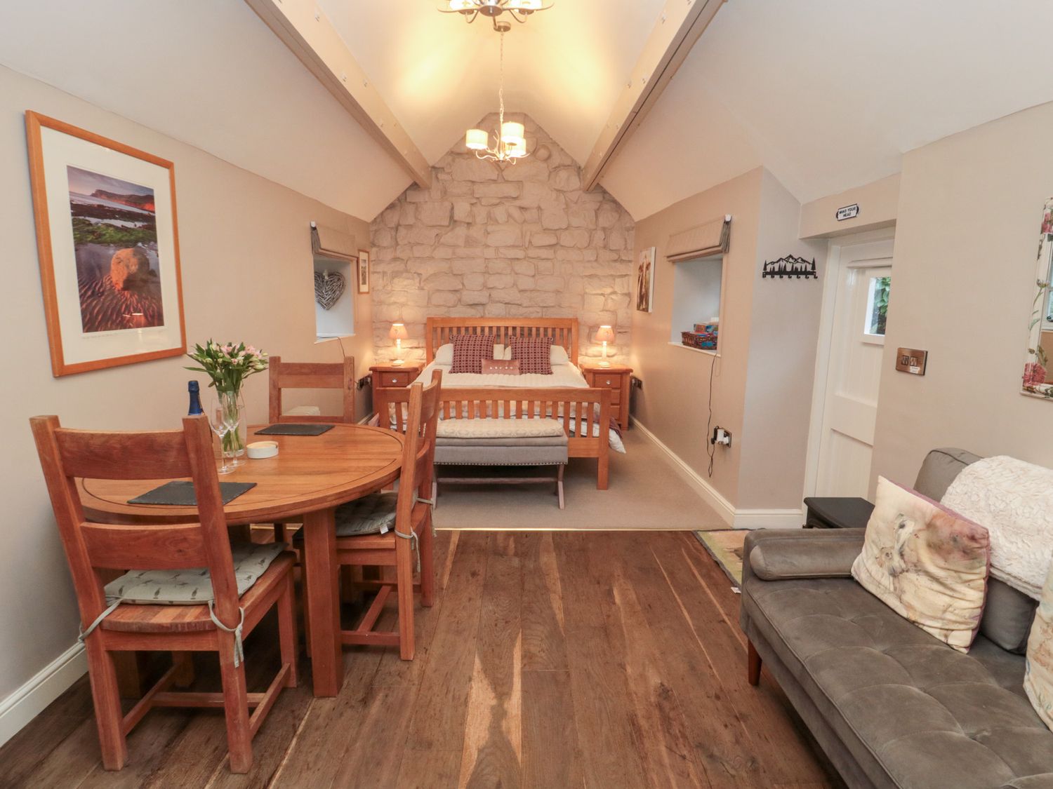 "Maltkiln House Annexe, a single-storey abode, consists of studio-style layout including a king-size bed, kitchen with an oven, hob, microwave, tv with Netflix, fridge, kettle, dining area, and sitting area. There is also a bathroom with p-shaped bath, shower over, basin, heated towel rail, and WC. Outside, there is a shared, front courtyard with gravel and furniture, plus off-road parking for one car. One well-behaved pet welcome, but sorry, no smoking. Shop 6.4 miles, pub 1.7 miles. Explore the beauty of North York Moors National Park with a stay at Maltkiln House Annexe. Note: Courtyard is not secure for pets. Note: Owner of property lives next door."