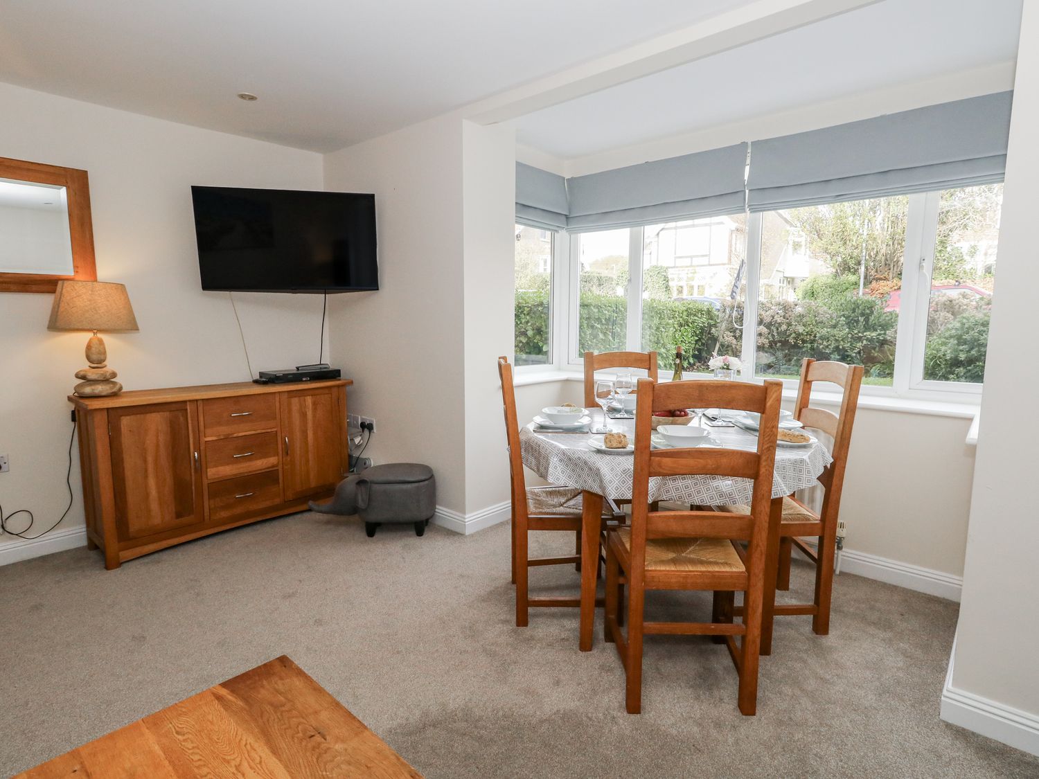 "Mayflower is a lovely ground-floor apartment nestled in Swanage, Dorset. Hosting two bedrooms: one king-size with en-suite shower room and one twin, together sleeping four guests with a family bathroom. It has a fitted kitchen and an open-plan living room and dining area. Outside has allocated parking for one car and further roadside parking on a first-come, first-serve basis. Mayflower is a wonderful choice for a seaside break to Dorset.Please note: The property is all-ground-floor (with 5 small steps to the main building)."
