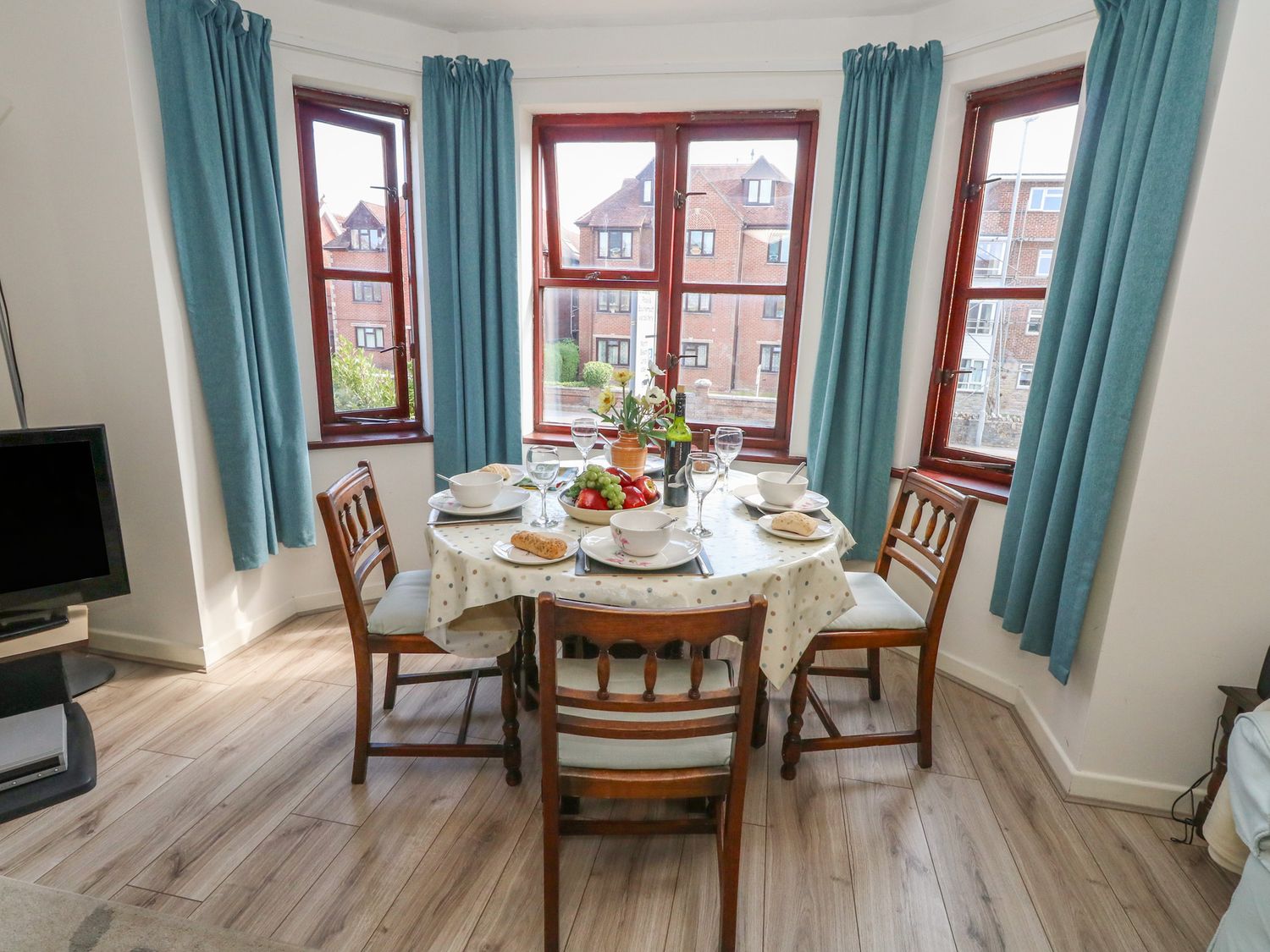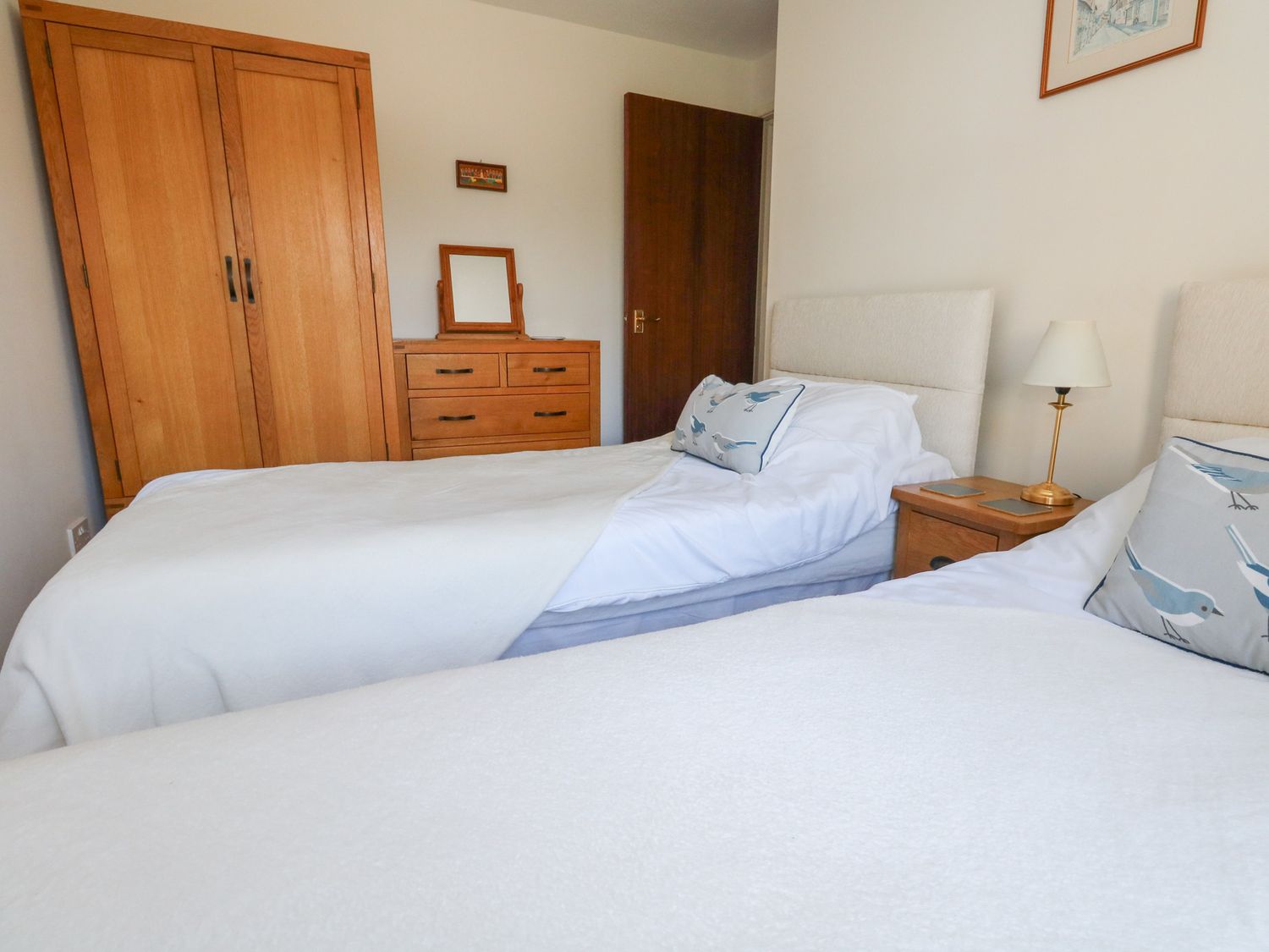 "Flat 9, a first-floor apartment, consists of a kitchen with electric oven, gas hob, microwave, fridge/freezer, washing machine, kettle, and toaster, and a living/dining room with two sofas, TV, DVD players and seating for four guests. The bedrooms consist of a double and twin. There is a shower room with walk-in shower, basin, and WC. WiFi, fuel, power, bed linen, and towels are included in the rent. Outside, there is a designated parking place for one car. Sorry, no pets and no smoking. Within 0.2 miles you will find a shop, within 0.3 miles a pub and within 0.1 miles a beach. All of this awaits at Flat 9. Note: Please bring your own beach towels. Note: There are steps up to the property. Note: This property has a Good Housekeeping bond of 250 GBP."