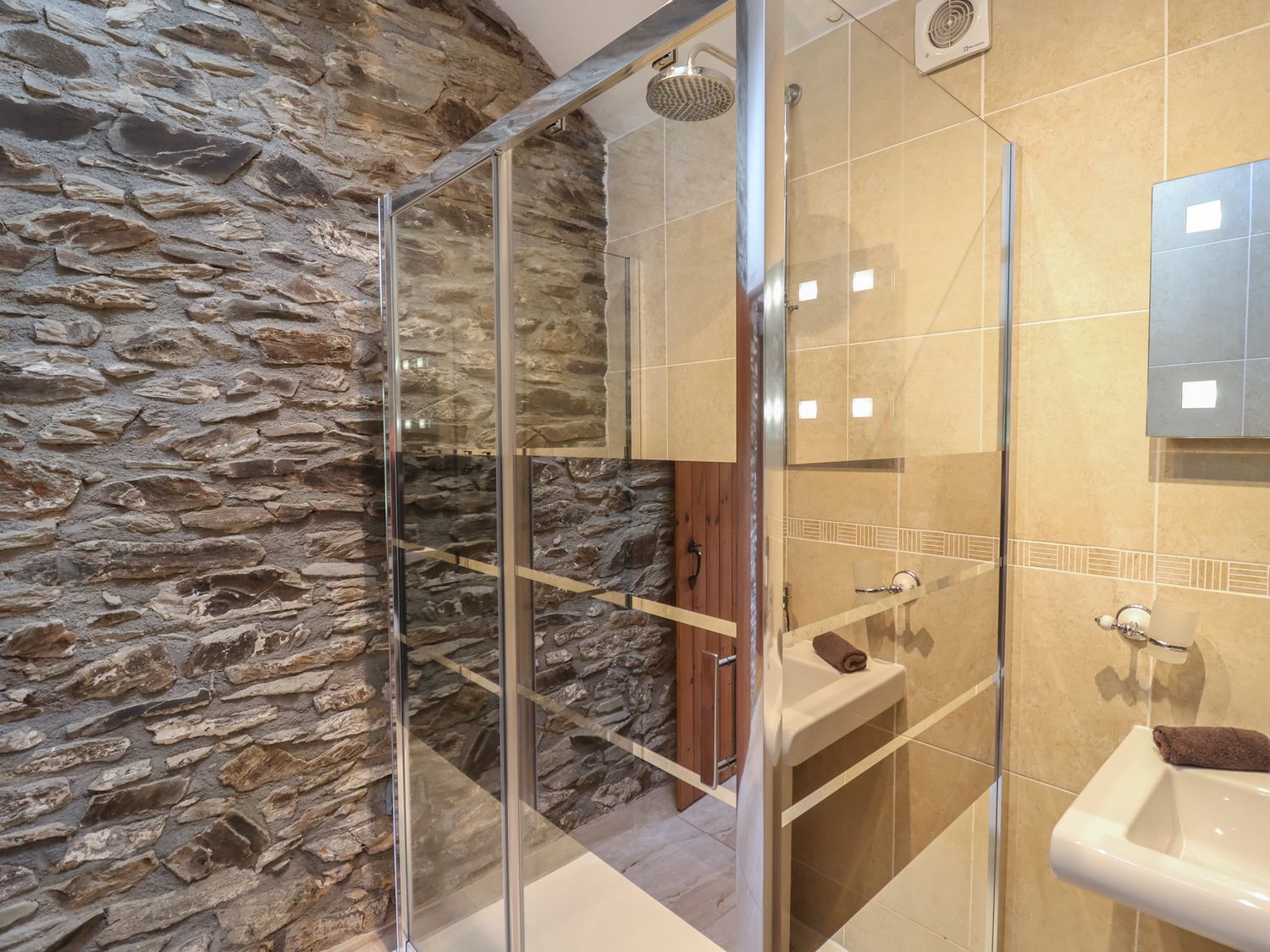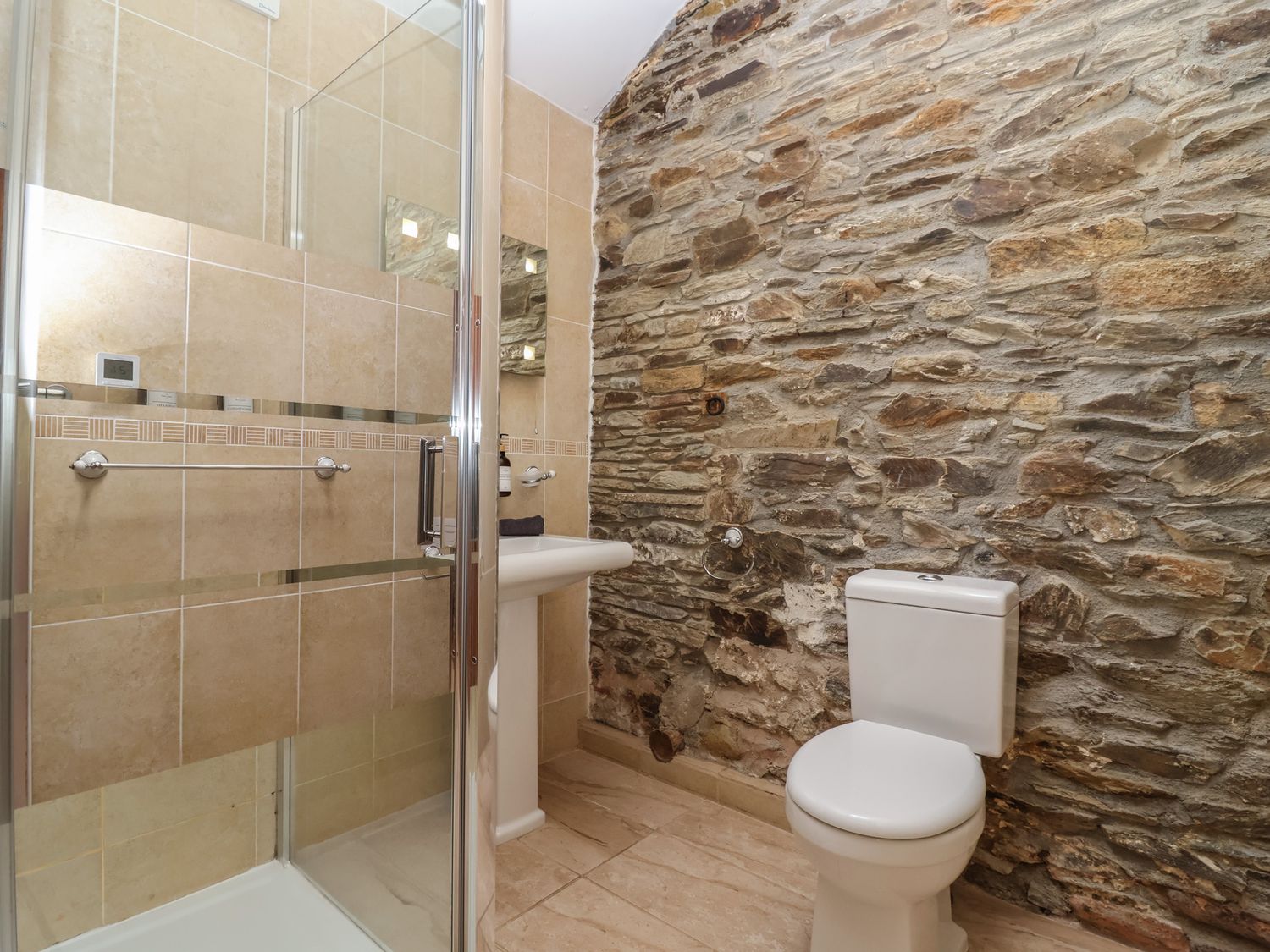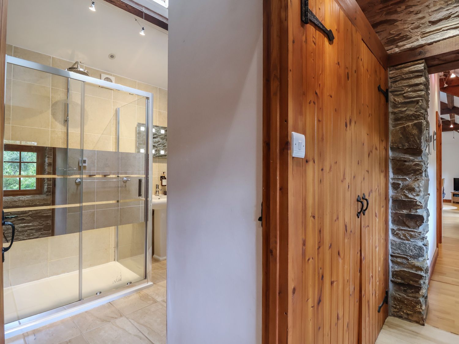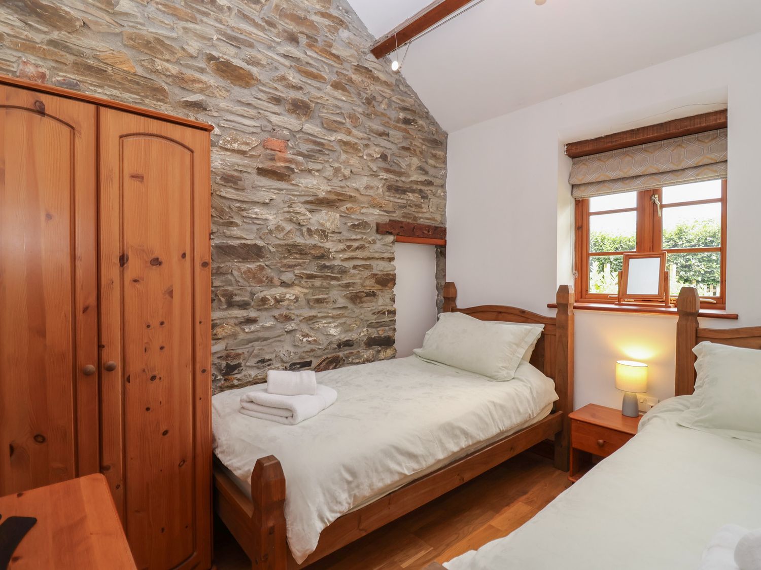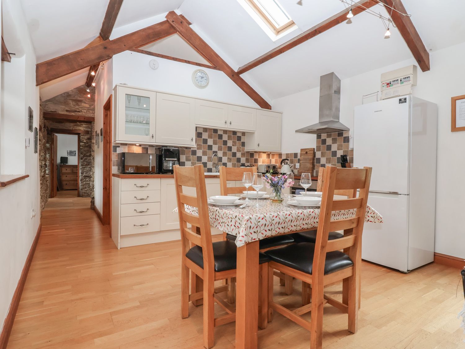 "NEW PROPERTY!. Single-storey. Two bedrooms: 1 x double with Smart TV, 1 x twin with TV. Shower room with walk-in shower, basin, WC. Open-plan living space with kitchen, dining area, and sitting area with woodburning stove"