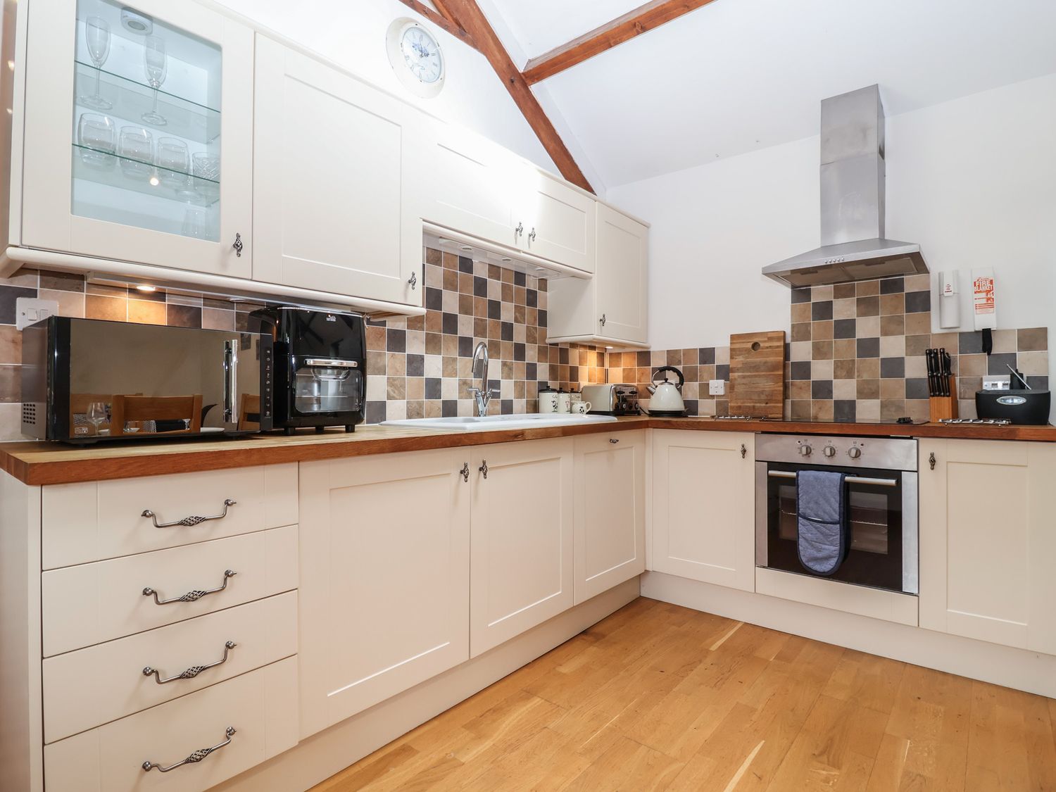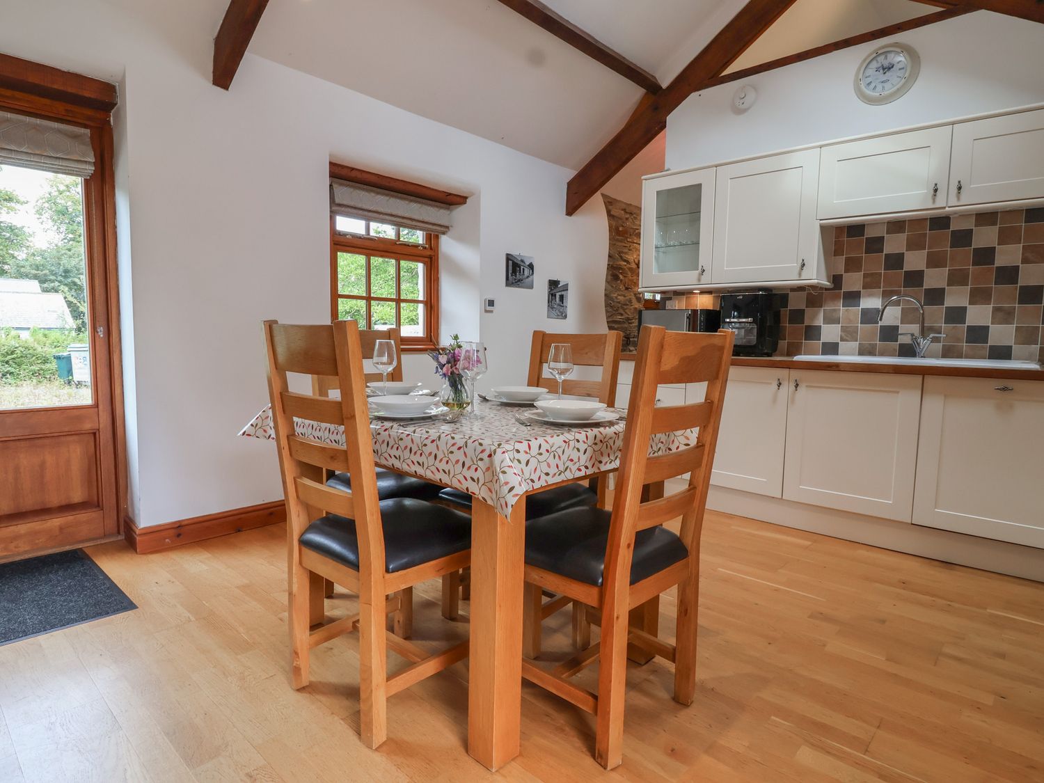 "The Coach House, a single-storey cottage, consists of an open-plan living space with electric oven, ceramic hob, microwave, fridge/freezer, air fryer, dishwasher, washing machine, kettle, toaster, dining seating for four people, Smart TV, and woodburning stove. The bedrooms consist of a double and twin. There is a shower room with walk-in shower, basin, and WC. You'll find a shop and pub in 1.6 miles, lake in 1.5 miles, and river in 0.8 miles. WiFi, fuel, power, starter pack for woodburning stove, bed linen, and towels are included in the rent. Outside, there is an enclosed garden with patio, lawn, and furniture and off-road parking. Highchair available. One well-behaved pet is welcome. Sorry, no smoking. A stay at The Coach House promises to be one to remember. Note: Pets are not allowed on furniture. Note: Please state in advance if bringing pets. Note: Guests have use of the facilities including childrenÔÇÖs play field, dog walking meadows, small shop selling essentials. Note: Viewing point of the owner's free-range hens and ducks. Note: Pigs can be seen upon request. Note: Extra wood is available at a charge upon request.
