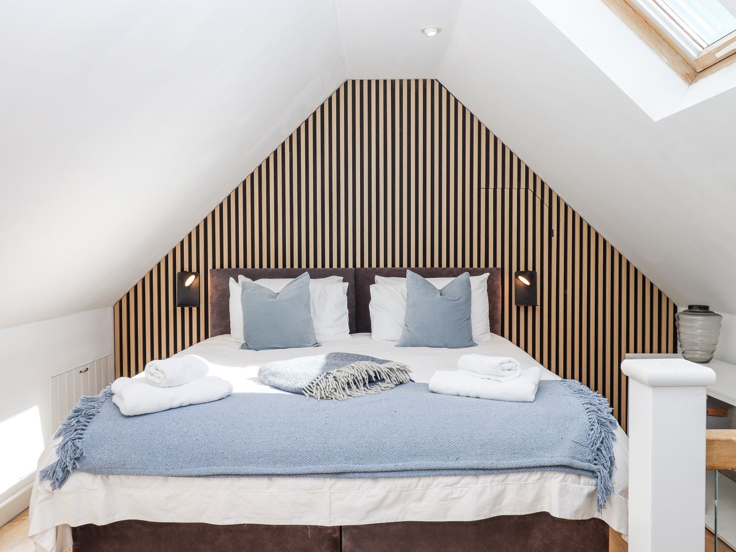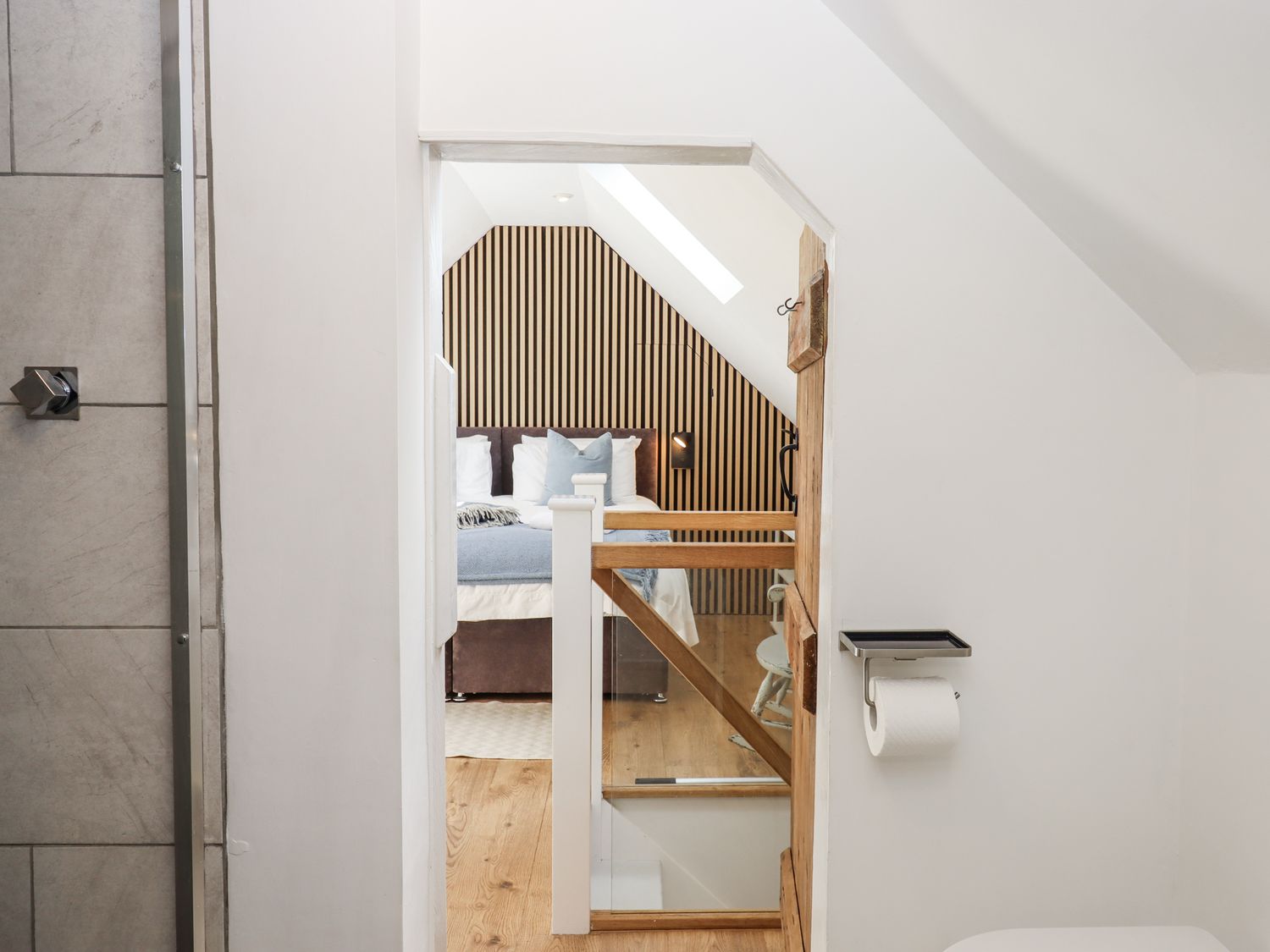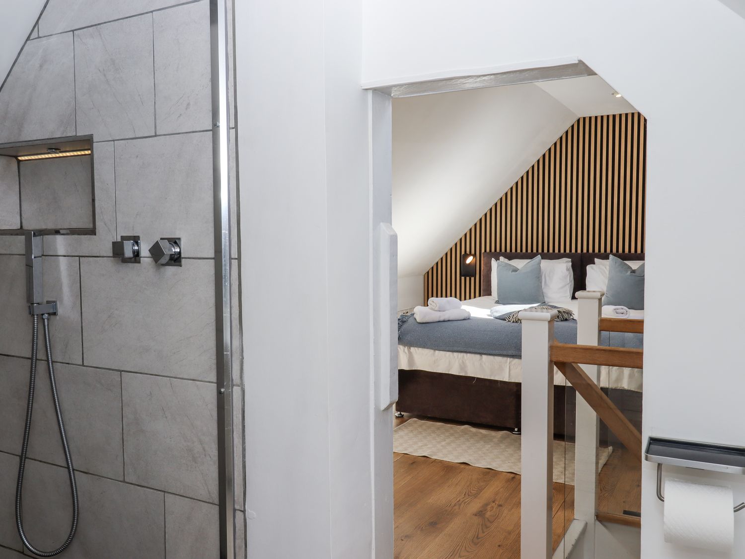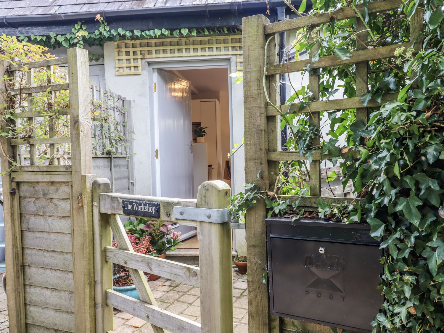 "The Workshop, a single-storey annex, consists of a kitchen with electric oven, ceramic hob, microwave, fridge, kettle, and toaster, and a living/dining room with smart TV, electric effect fireplace, sofa, and dining seating for two people. The bedroom is a super-king-size with en-suite. WiFi, fuel, power, bed linen, and towels are included in the rent. Outside, there is an enclosed rear garden with patio, lawn, sun loungers, furniture, and hot tub, and roadside parking. Two well-behaved dogs are welcome fee charged for second dog. Sorry, no smoking. Wherever your exploration takes you, enjoy all this with a stay at The Workshop. Note: Restricted head height in the en-suite, please mind your head also he opening leading to the fire escape from the bedroom area has a width restriction of 40 cm."