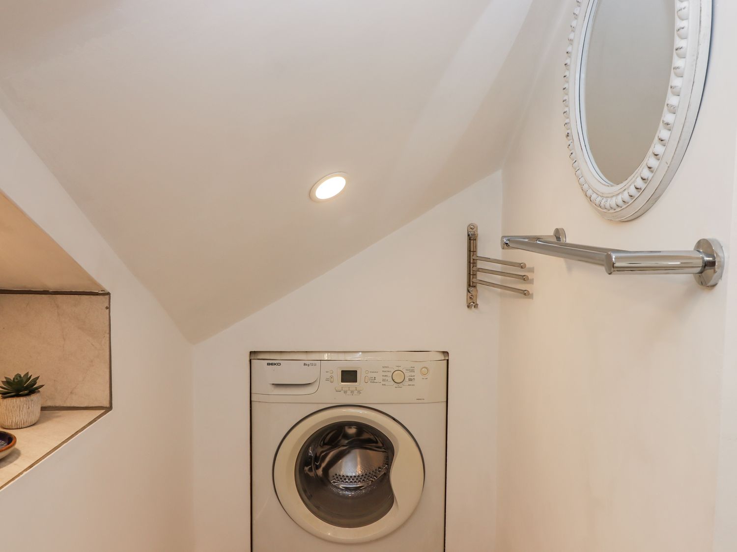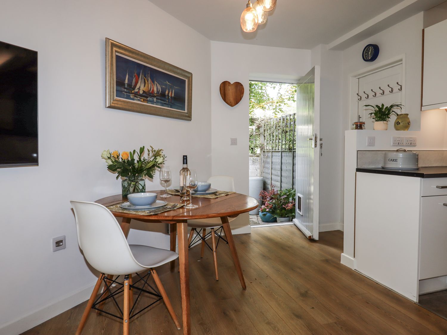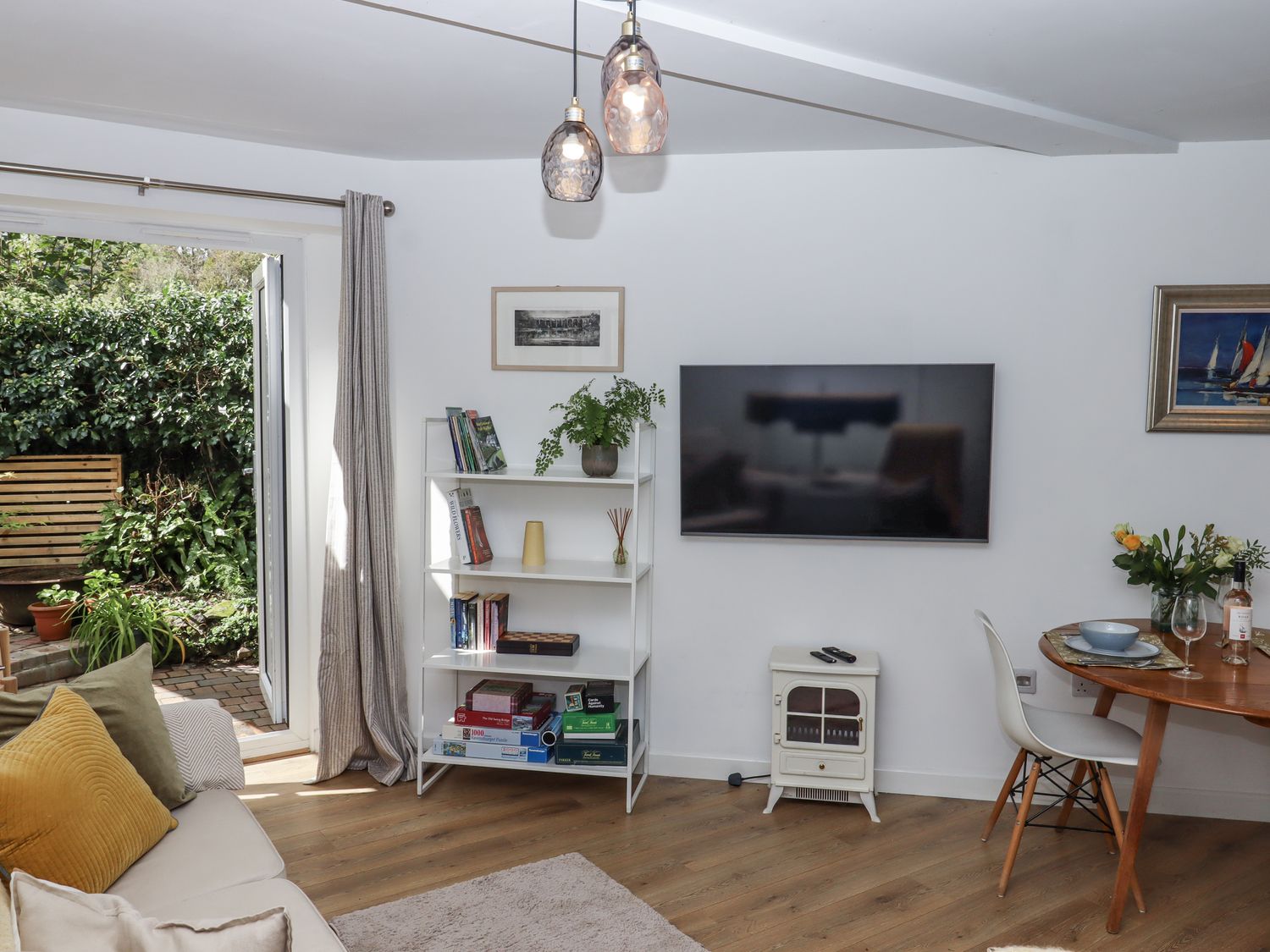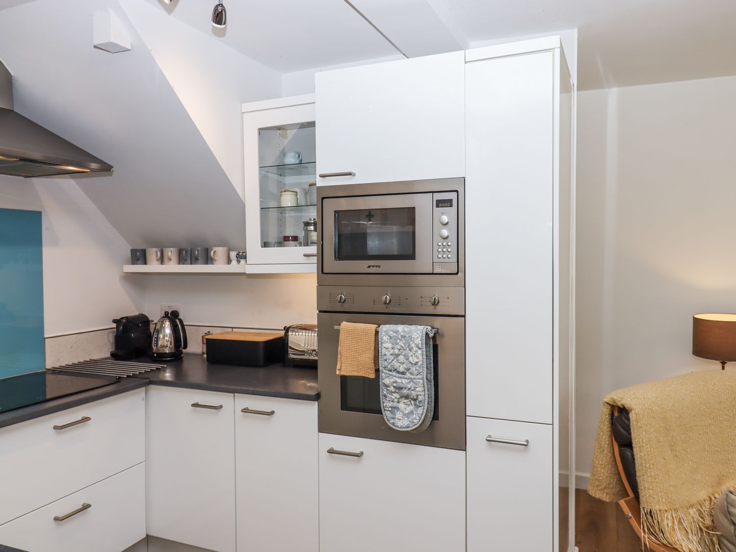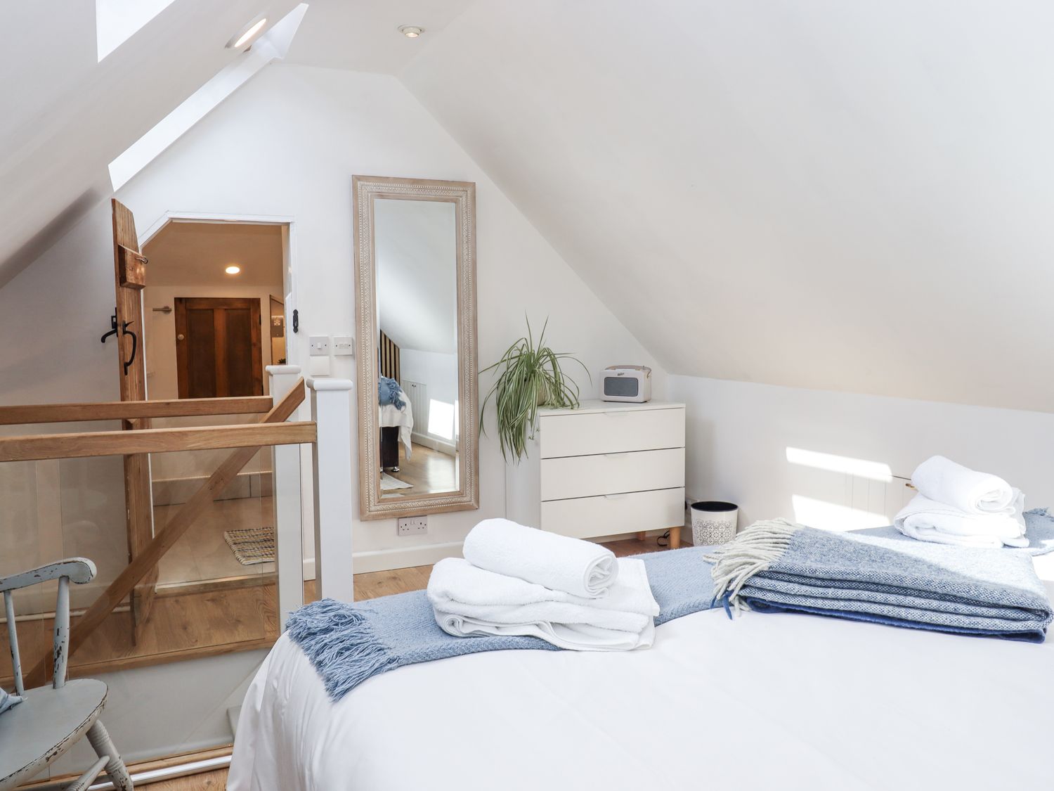 "The Workshop, a single-storey annex, consists of a kitchen with electric oven, ceramic hob, microwave, fridge, kettle, and toaster, and a living/dining room with smart TV, electric effect fireplace, sofa, and dining seating for two people. The bedroom is a super-king-size with en-suite. WiFi, fuel, power, bed linen, and towels are included in the rent. Outside, there is an enclosed rear garden with patio, lawn, sun loungers, furniture, and hot tub, and roadside parking. Two well-behaved dogs are welcome fee charged for second dog. Sorry, no smoking. Wherever your exploration takes you, enjoy all this with a stay at The Workshop. Note: Restricted head height in the en-suite, please mind your head also he opening leading to the fire escape from the bedroom area has a width restriction of 40 cm."