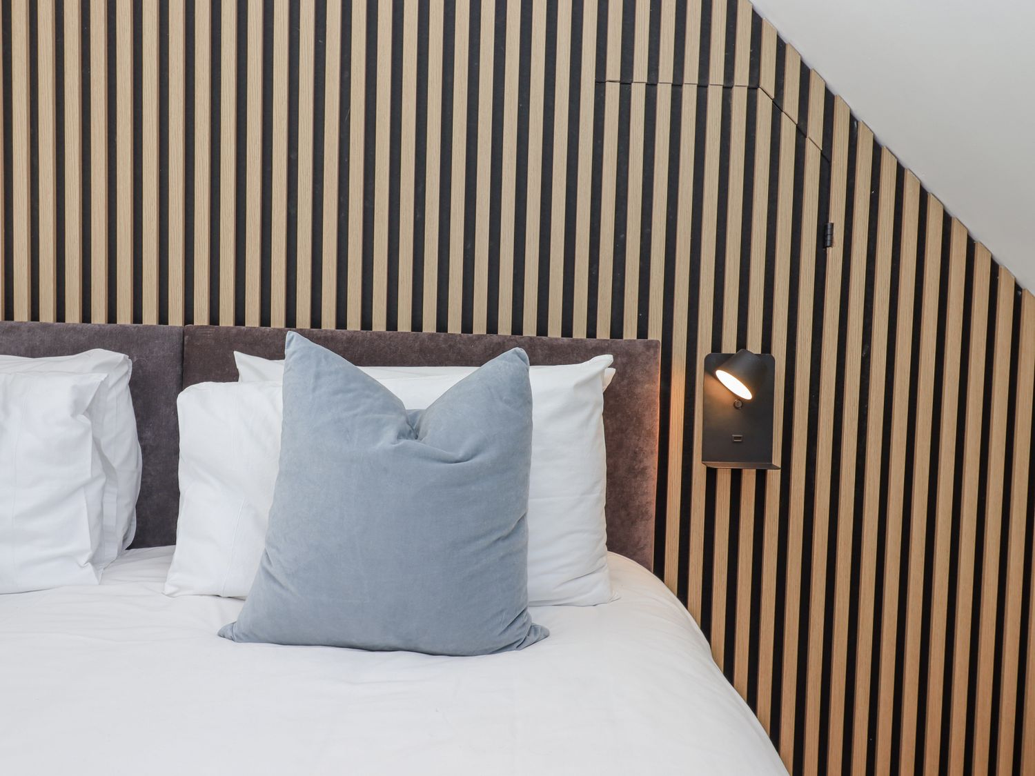 "Super-king-size (zip/link, can be twin on request) with en-suite with walk-in shower, basin, and washing machine and WC. Open-plan living space with kitchen and living/dining area with electric fire"
