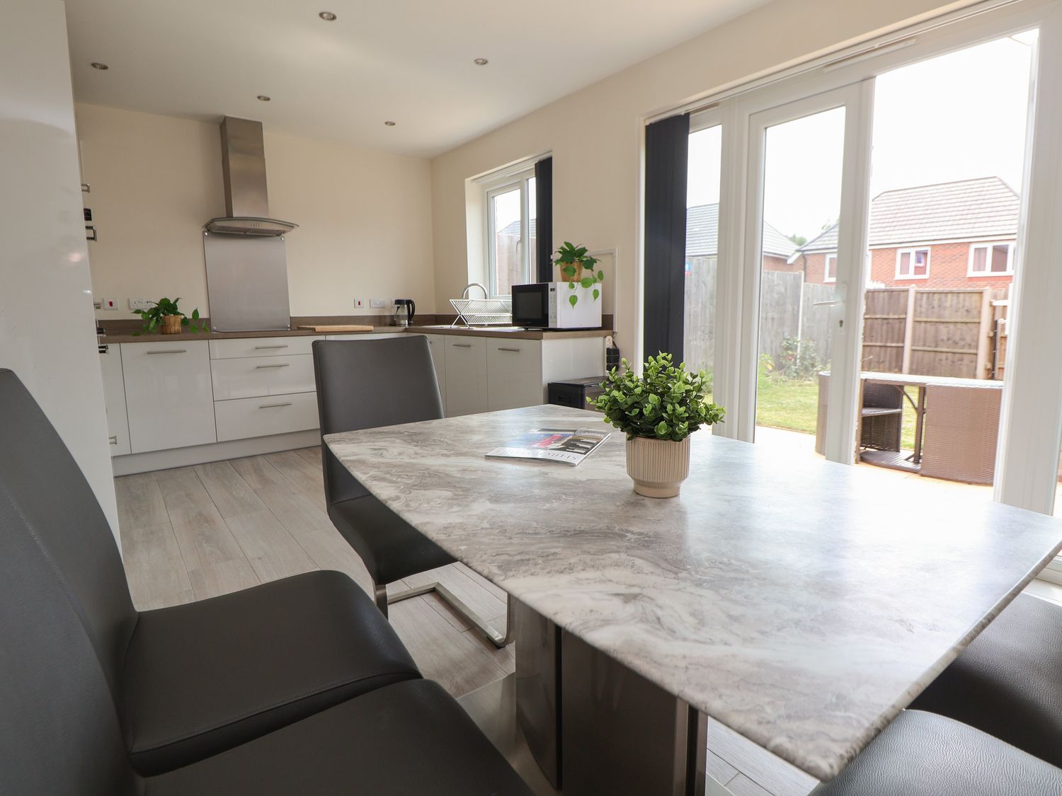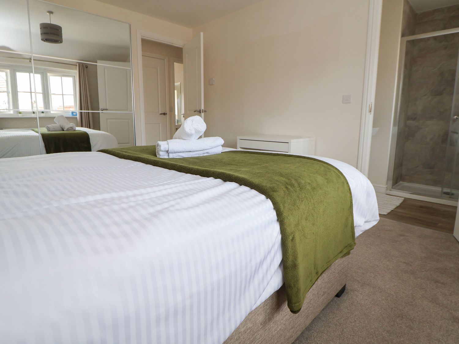 "29 Ernest Dawes Avenue is a house consisting of a kitchen/diner with electric double oven and hob, microwave, fridge/freezer, kettle, toaster, and dining seating for six people, a utility with washer/dryer, a sitting room with recliners and Smart TV, and a cloakroom with basin and WC. The bedrooms consist of three king-size and one king-size with en-suite shower room. There is a bathroom with bath, handheld shower, shower over, heated towel rail, basin, and WC. You'll find a shop in 1.3 miles, pub in 1.7 miles, lake in 0.2 miles, and river in 1.3 miles. WiFi, fuel, power, bed linen, and towels are included in the rent. Outside, there is a non-enclosed front garden with lawn. Enclosed rear garden with lawn, patio, and furniture and private driveway parking for two cars with additional roadside parking on a first-come, first-served basis. One well-behaved pet is welcome. Sorry, no smoking. 29 Ernest Dawes Avenue is a wonderful escape to Shropshire, whatever time of year. Note: Garage will be locked off to guests. Note: External security cameras facing away from the property. Note: All toilets in the property have a bidet shower. Note: Pets downstairs only. This property has a Good House Keeping Bond of 450 GBP"