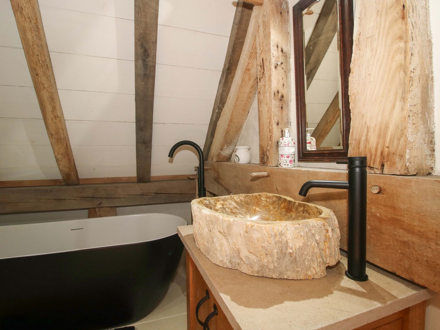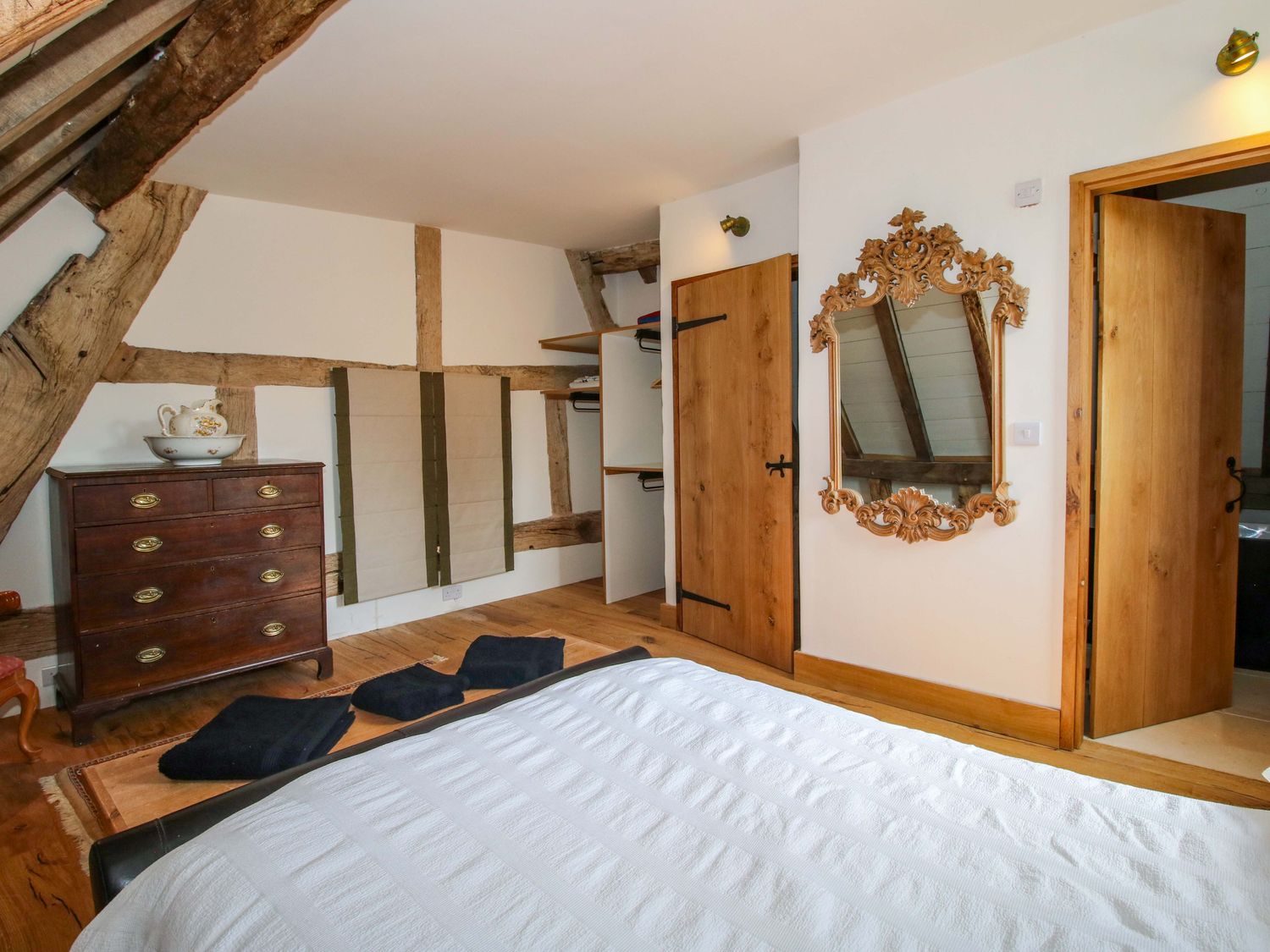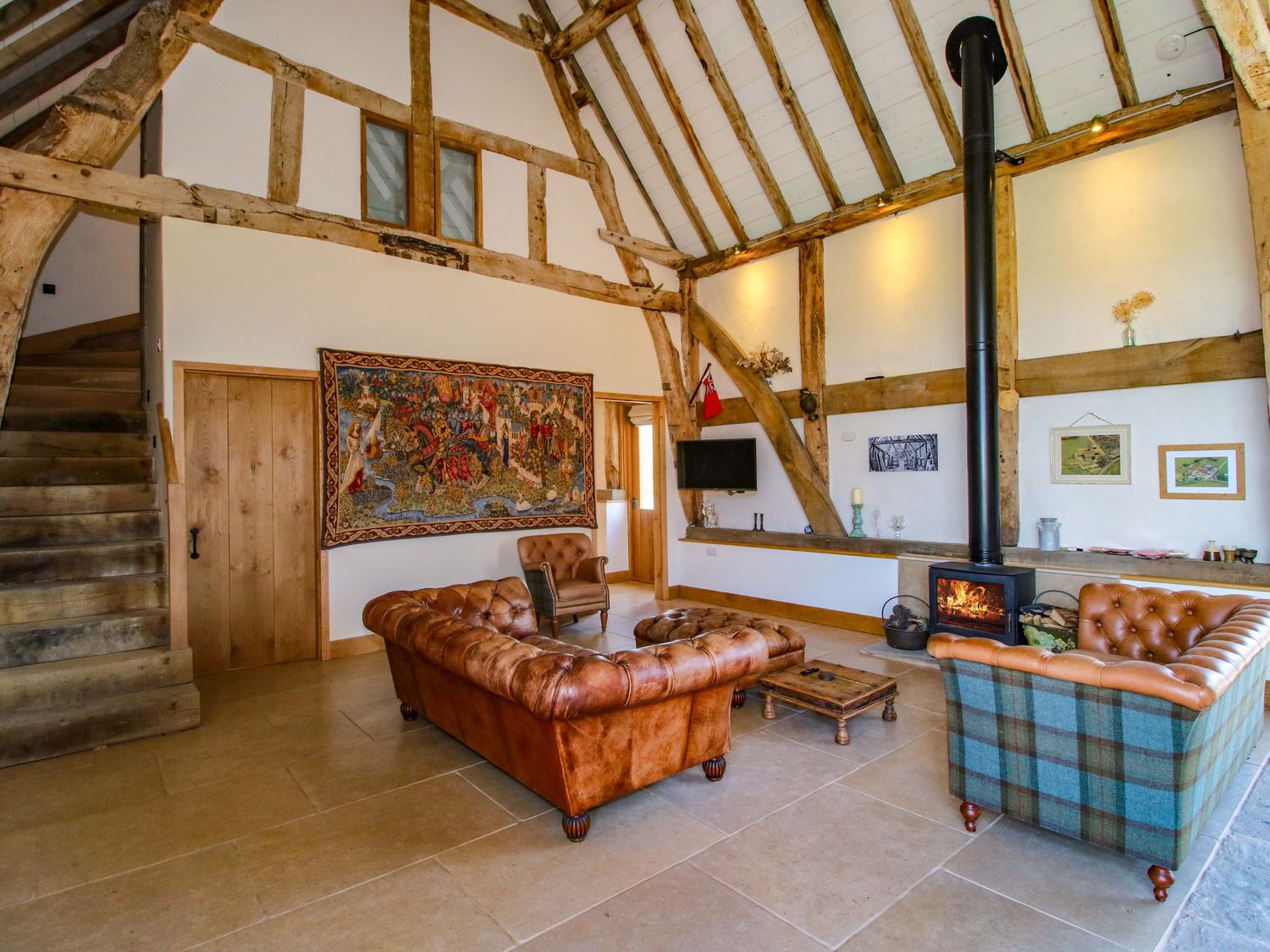 "Crook Barn consists of an open-plan living space with electric range oven, ceramic hob, microwave, fridge/freezer, dishwasher, dining seating, and sitting area with Smart TV and woodburning stove. The bedrooms consist of a king-size mezzanine, double with en-suite bathroom, and ground-floor family room with double and single, serviced by a ground-floor shower room. Outside, there is a garden with lawn, patio, gravelled area, furniture, fire-pit, and table tennis, along with off-road parking for six cars with EV charging available. Tavel cot and highchair available. Two well-behaved dogs welcome. Sorry, no smoking. YouÔÇÖll find a shop in 2.2 miles and pub in 1.2 miles. WiFi, fuel, power, starter pack for woodburning stove, bed linen, and towels inc. In rent. Electric Vehicle Charging attached to Crook Barn. Crook Barn is a stunning base for history lovers on a rural retreat in Worcestershire. Note: Good housekeeping bond 350 GBP. "